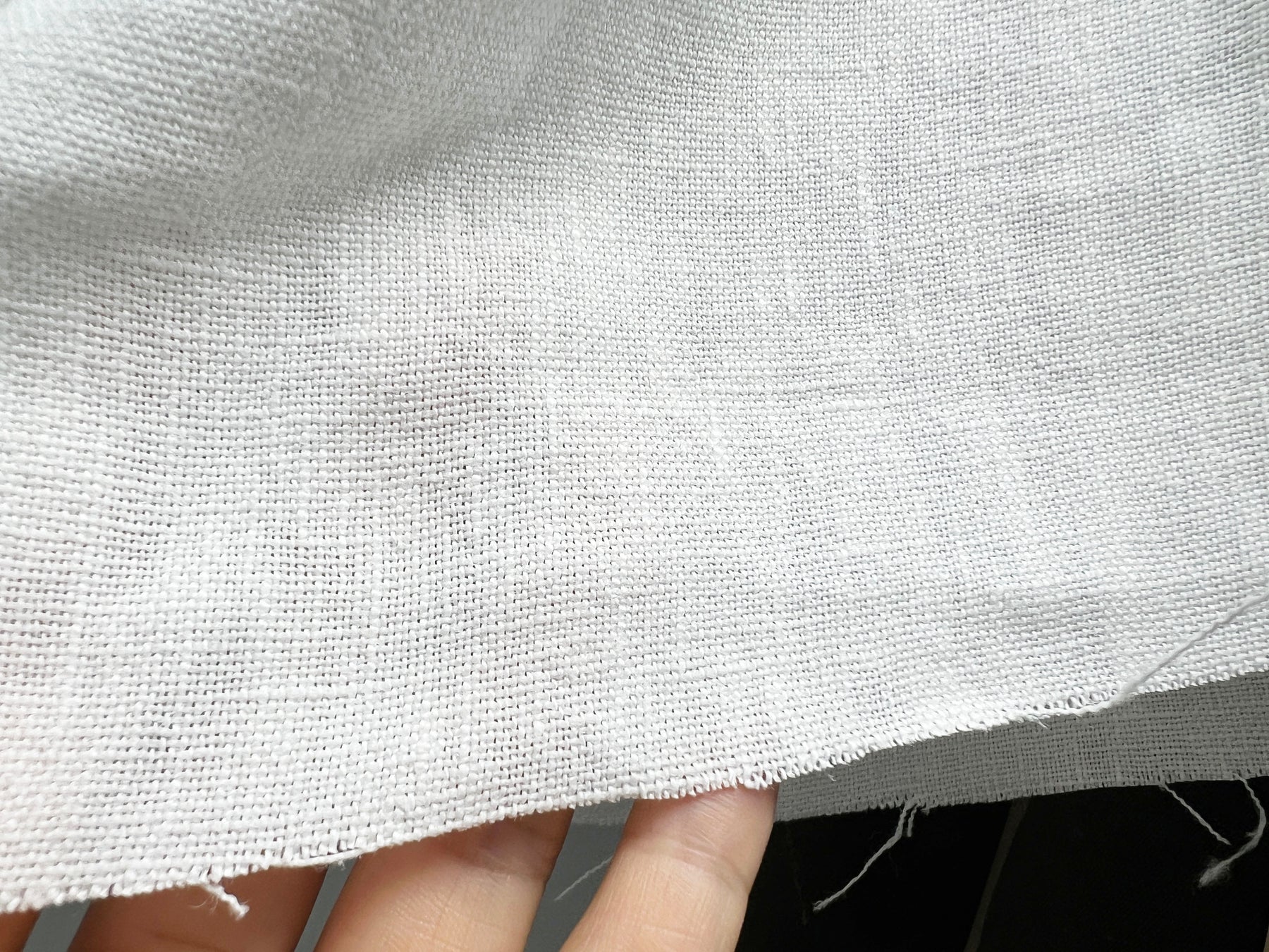Crafted from thick 5.6s linen yarns with additional twisting, this fabric offers a crisp, cool handfeel while still maintaining a comfortable, softened touch from pre-washing. With its medium to heavy weight (302 g/sqm / 8.90 oz per square yard), it provides excellent structure, making it suitable for outerwear, trousers, pinafores, jackets, bags, upholstery accents, and other durable projects.