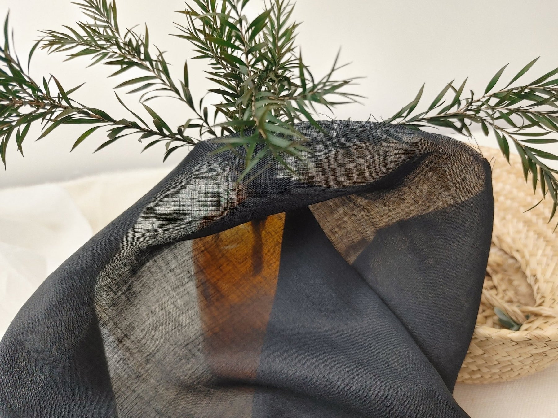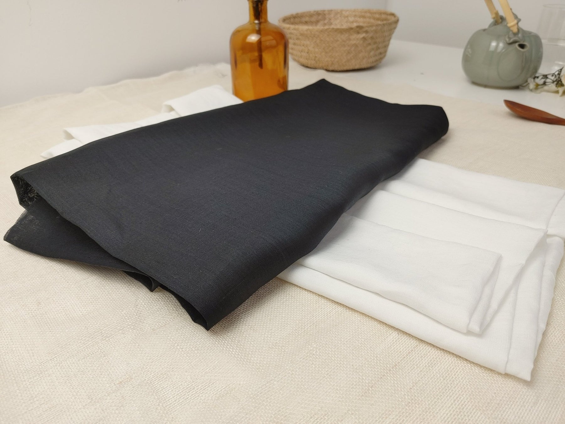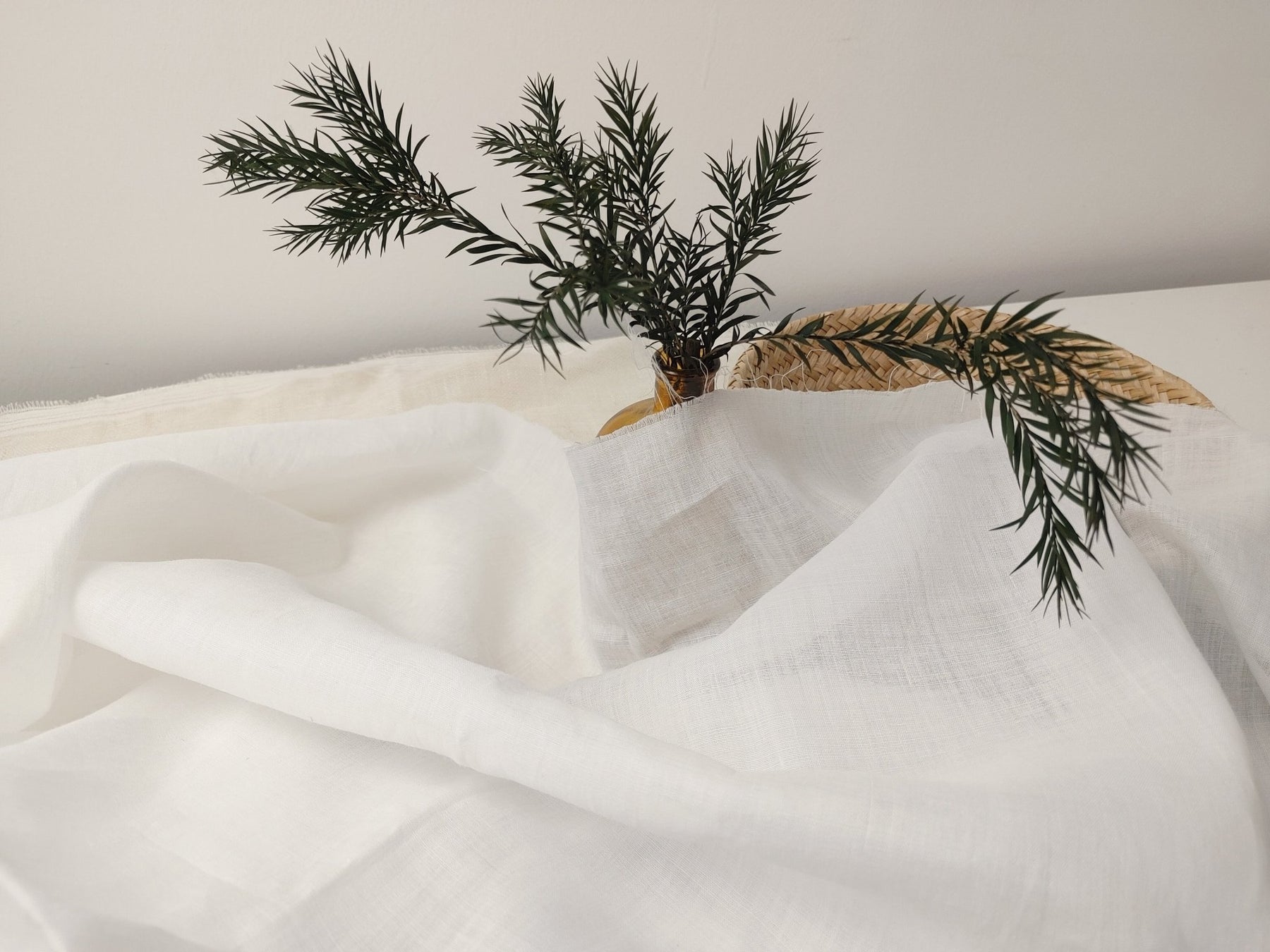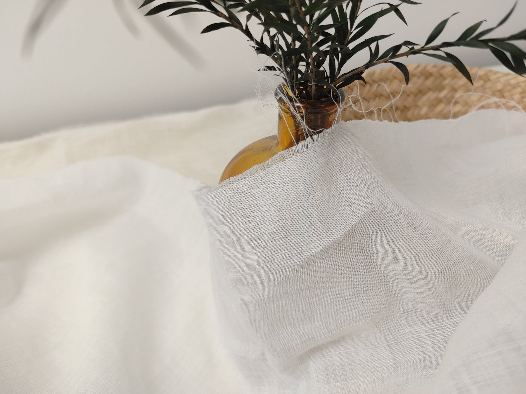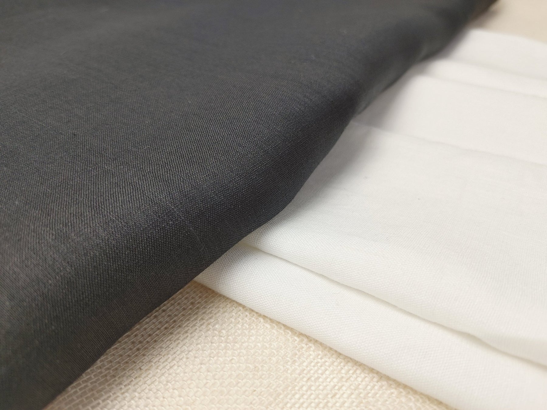 Introducing our 100% Ramie fabric, a lightweight textile with a see-through effect, perfect for adding a touch of elegance to your creations. With a yarn count of 100nm, it offers a smooth texture and comes in two classic colors: white and black. This fabric weighs 79 g/sqm (2.33 oz per square yard) and has a width of 54 inches (137cm). It features a soft, pre-washed handfeel and offers no elasticity, ensuring your designs maintain their shape. Ideal for summer clothing, delicate accessories, and drapery, our Ramie fabric combines simplicity and sophistication for timeless style.