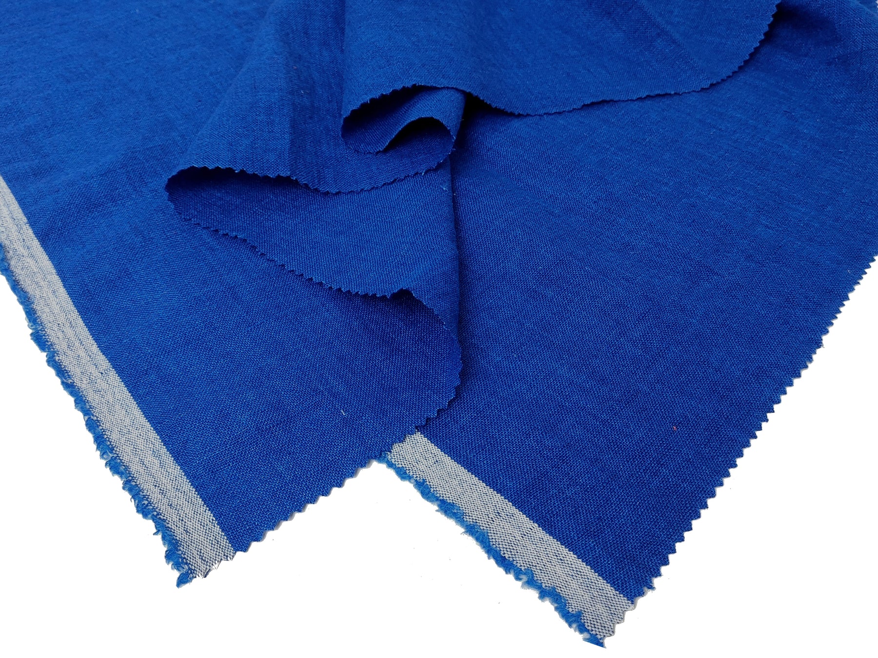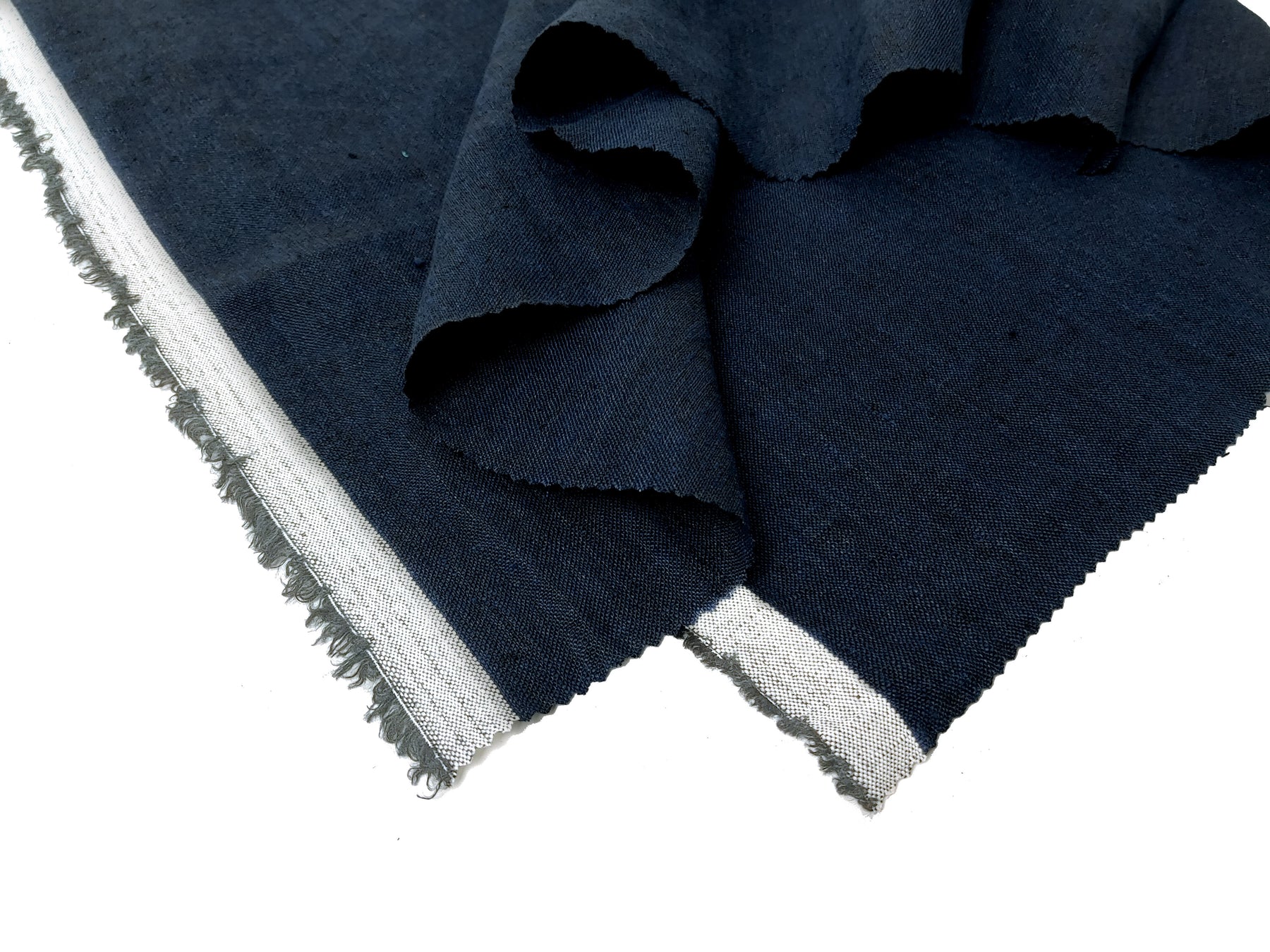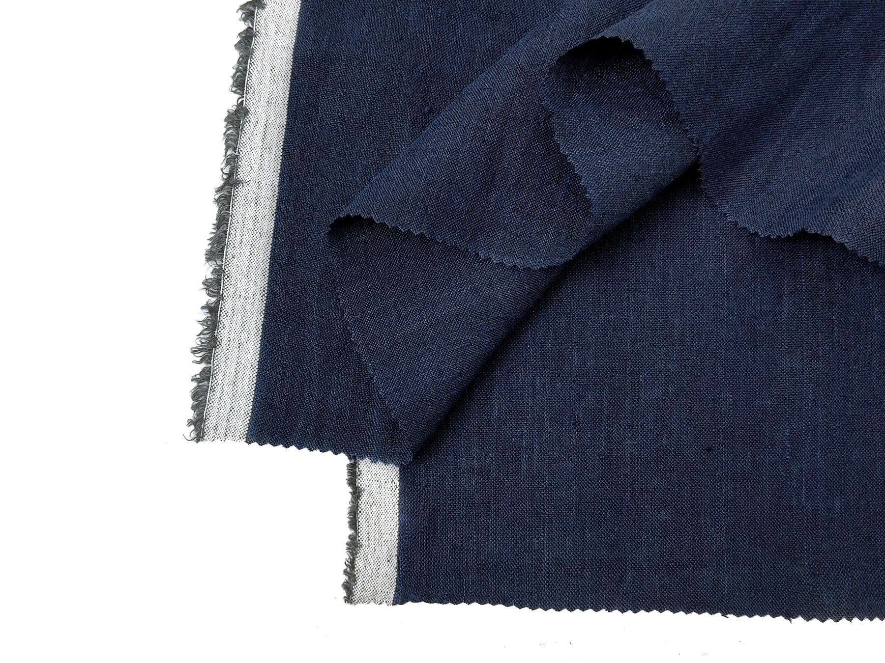 This 100% linen fabric is made with medium-thick 9s yarn and features a stunning delave vintage dye, which gives the fabric a naturally faded, lived-in look. The delave dyeing process enhances the fabric’s character, offering a subtle, rustic charm. With a weight of 197 g/sqm (5.8 oz per square yard), it has a medium to slightly heavy feel, making it versatile for various projects.