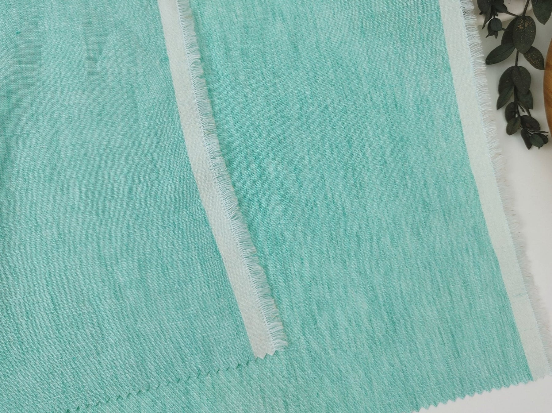 Lightweight 100% Linen Fabric: Two-Tone Chambray Elegance 7632 7746 - The Linen Lab - Mint