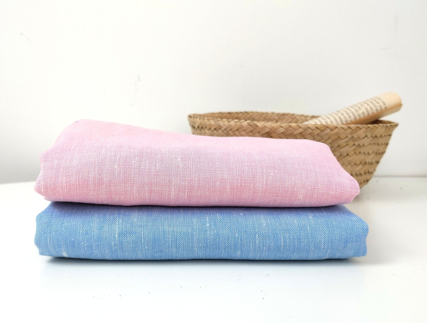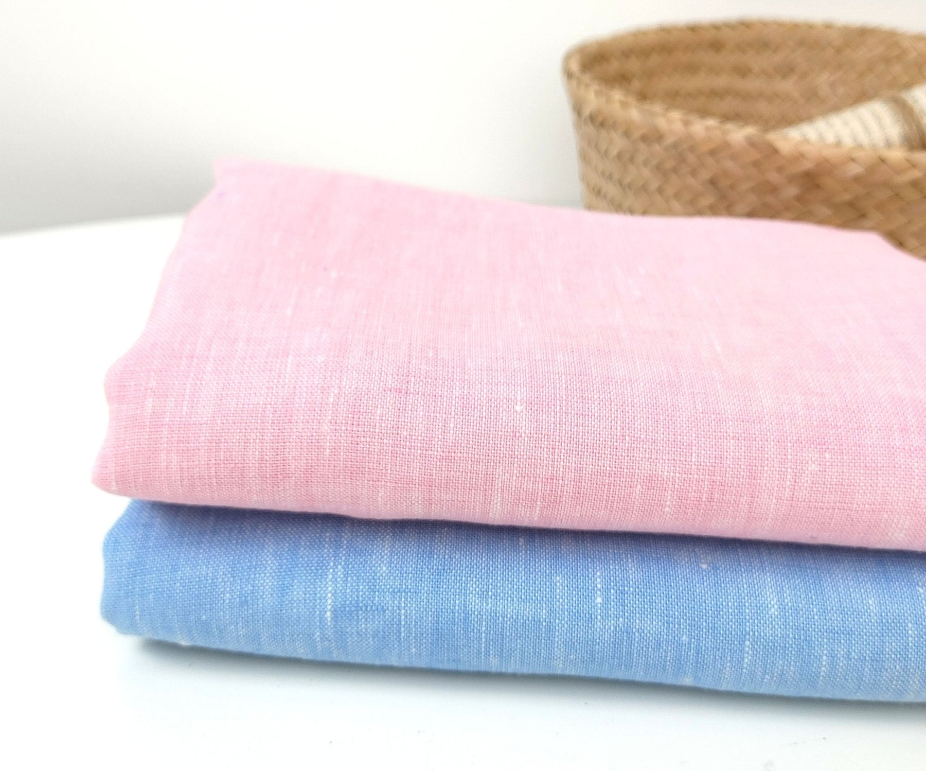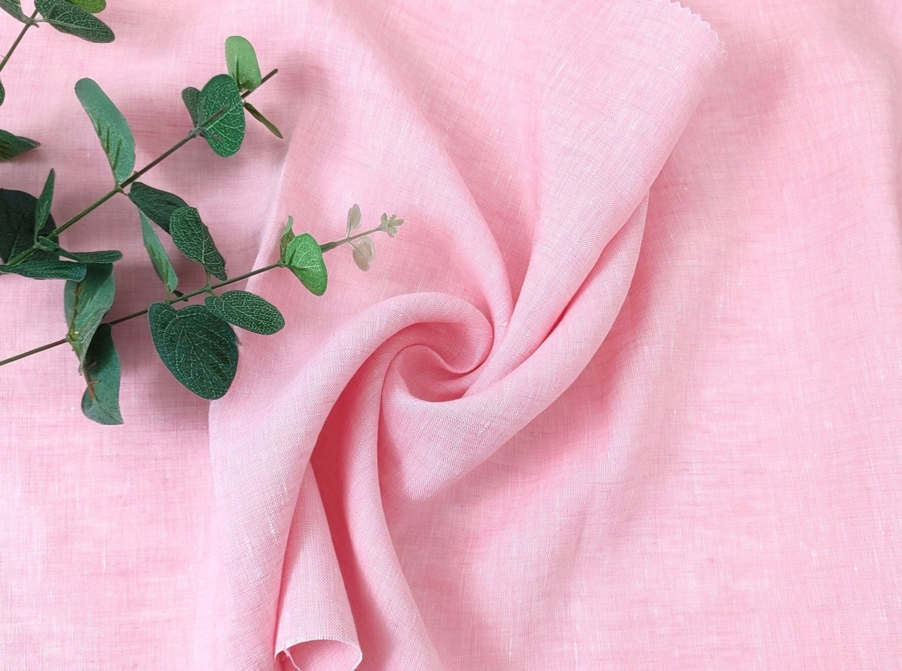 Premium 100% Linen Chambray Fabric - Medium-Light Weight, Plain Weave 7800 7801 - The Linen Lab - Pink