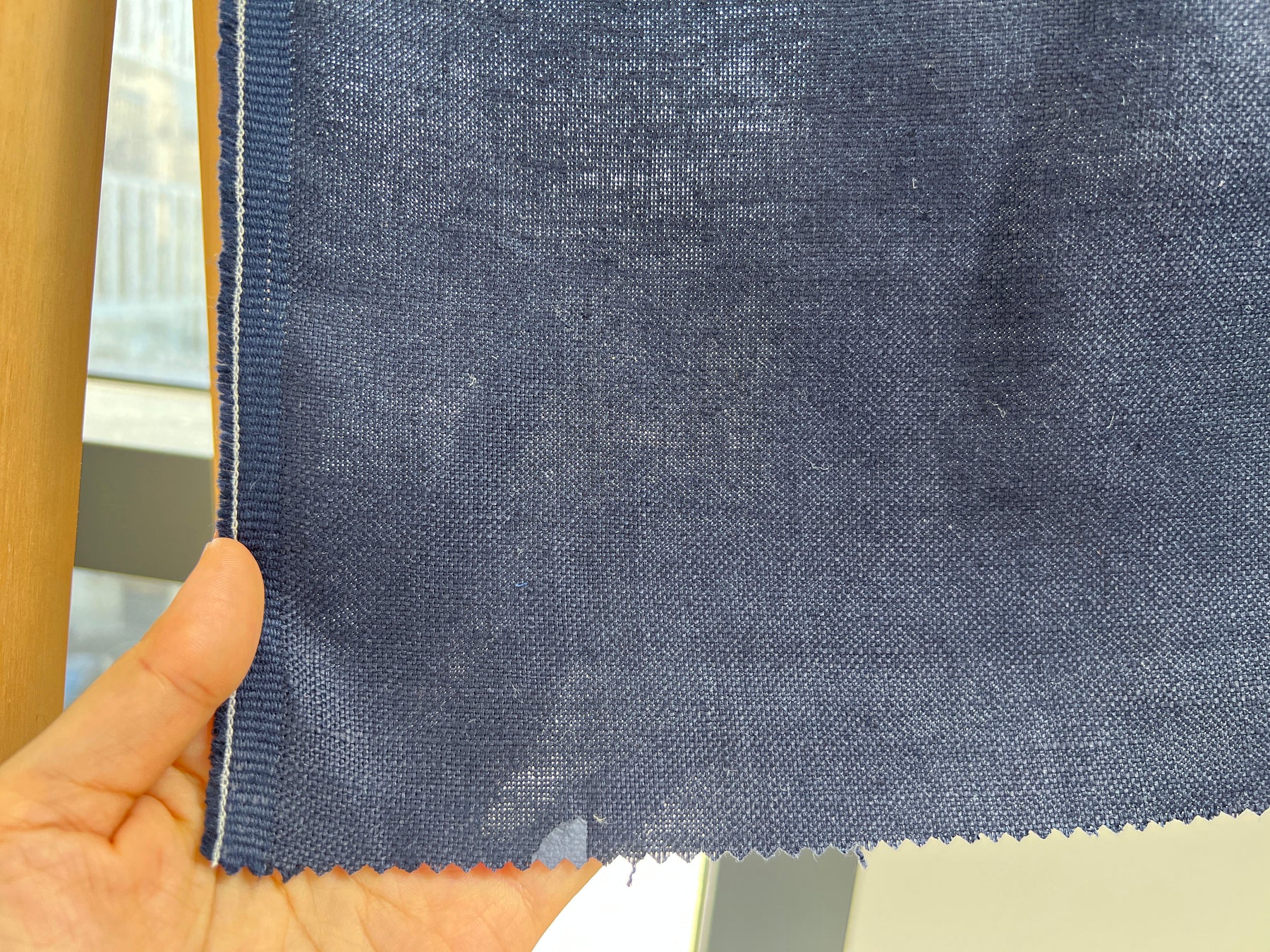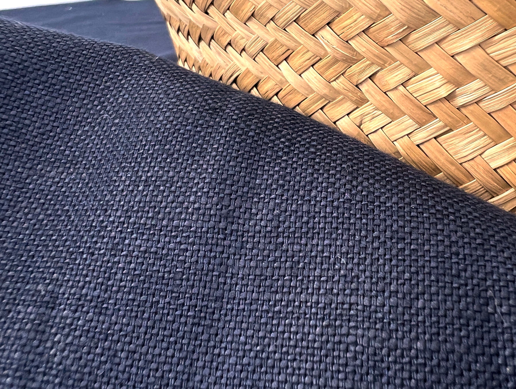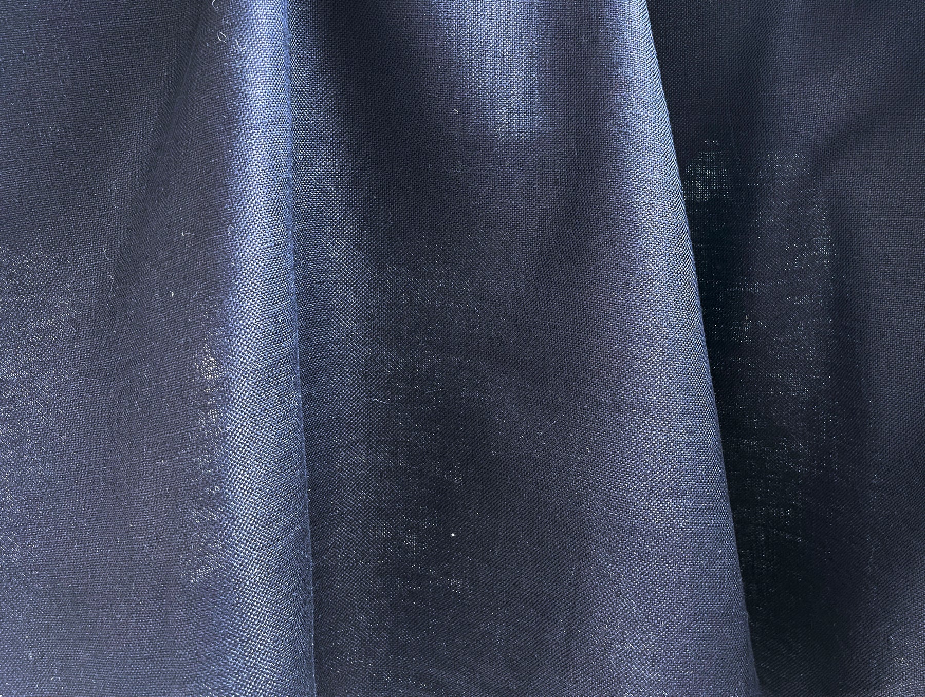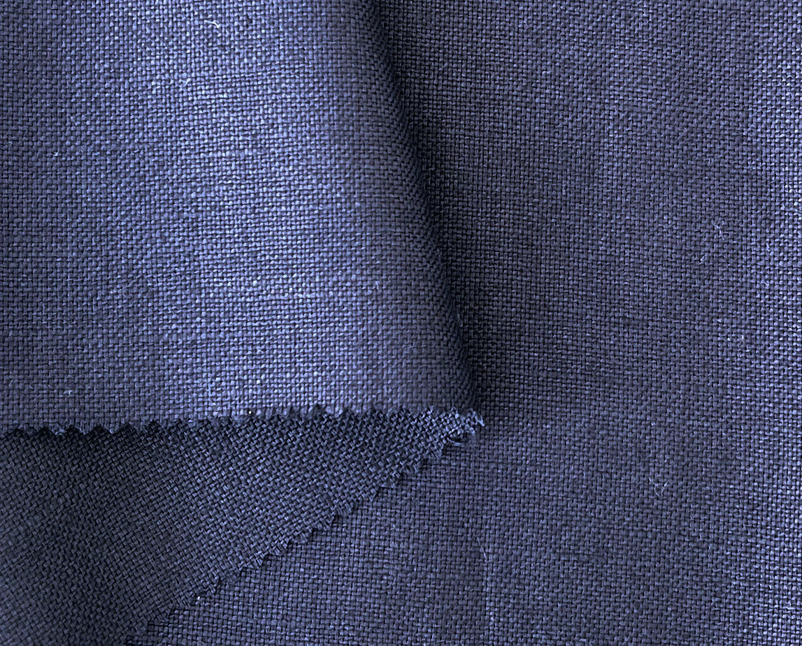 This 100% linen fabric is woven in a 2:1 mat canvas structure, giving it a durable yet refined texture. With its deep navy color and substantial weight, it offers both strength and elegance.