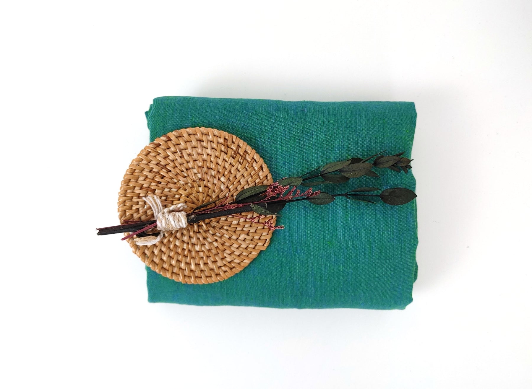 Lightweight 100% Linen Fabric - Green, 21s High-Twist Yarn, Two-Tone Effect 7929