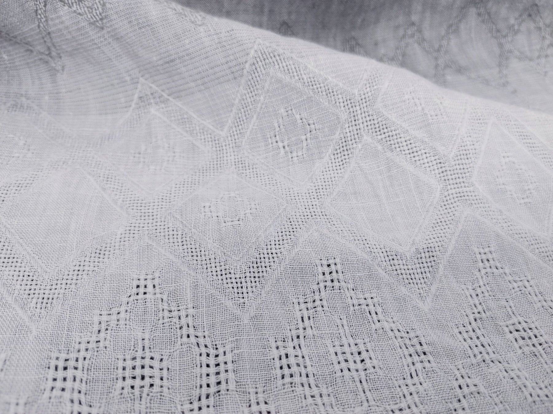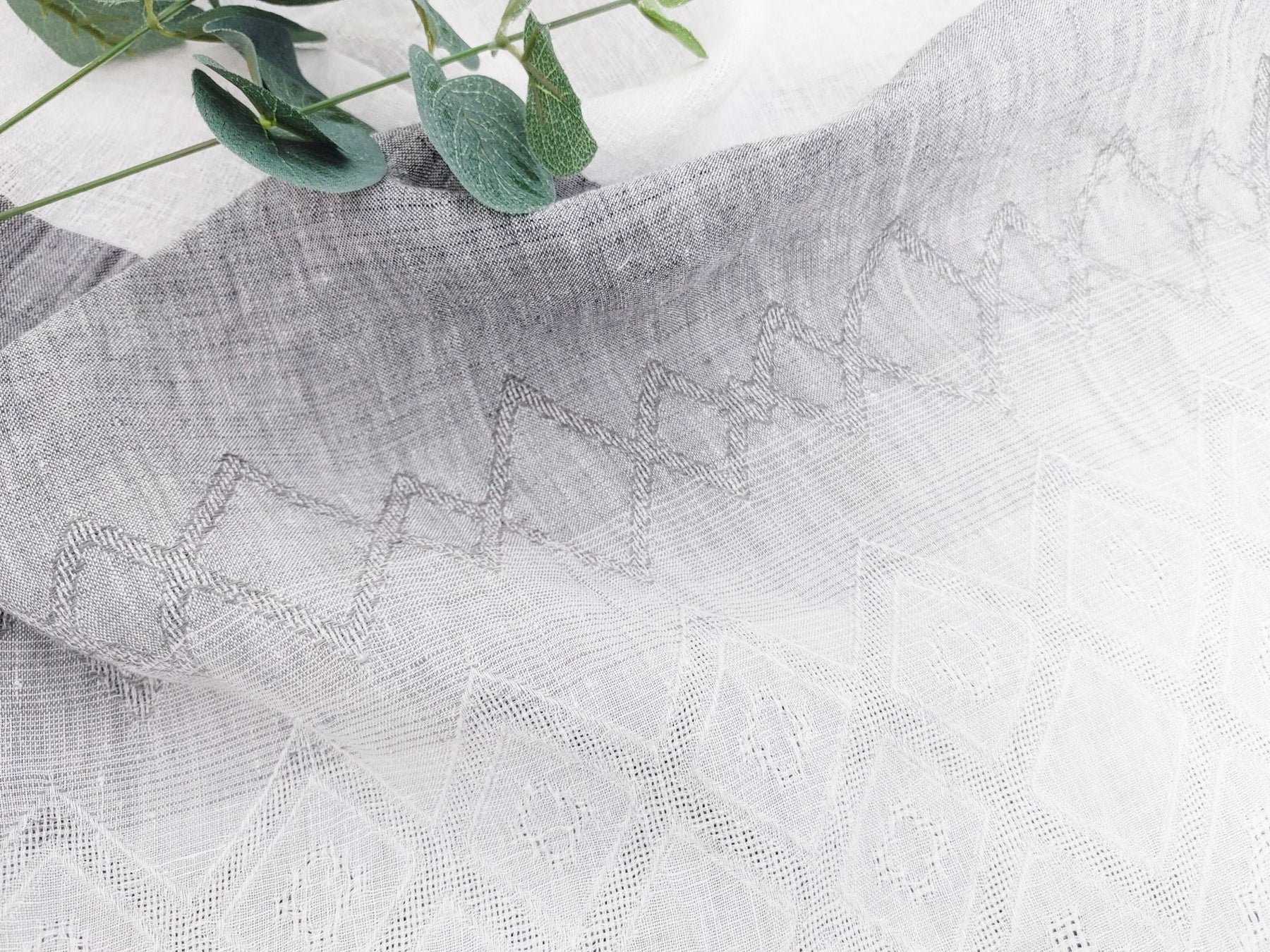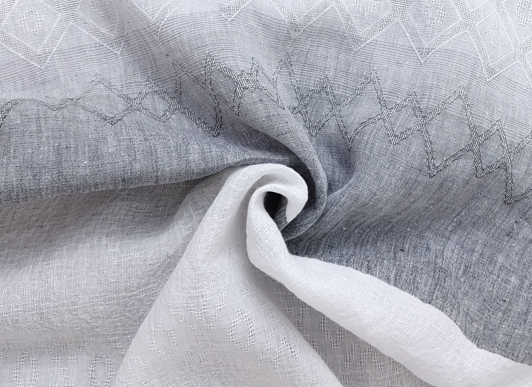 Experience the allure of our 'Dark Sunrise Symphony' jacquard fabric, a unique composition of 100% linen that seamlessly blends rhombus patterns with other intricate designs. The captivating gradation adds depth and dimension to this fabric, making it a truly distinctive choice for your projects.