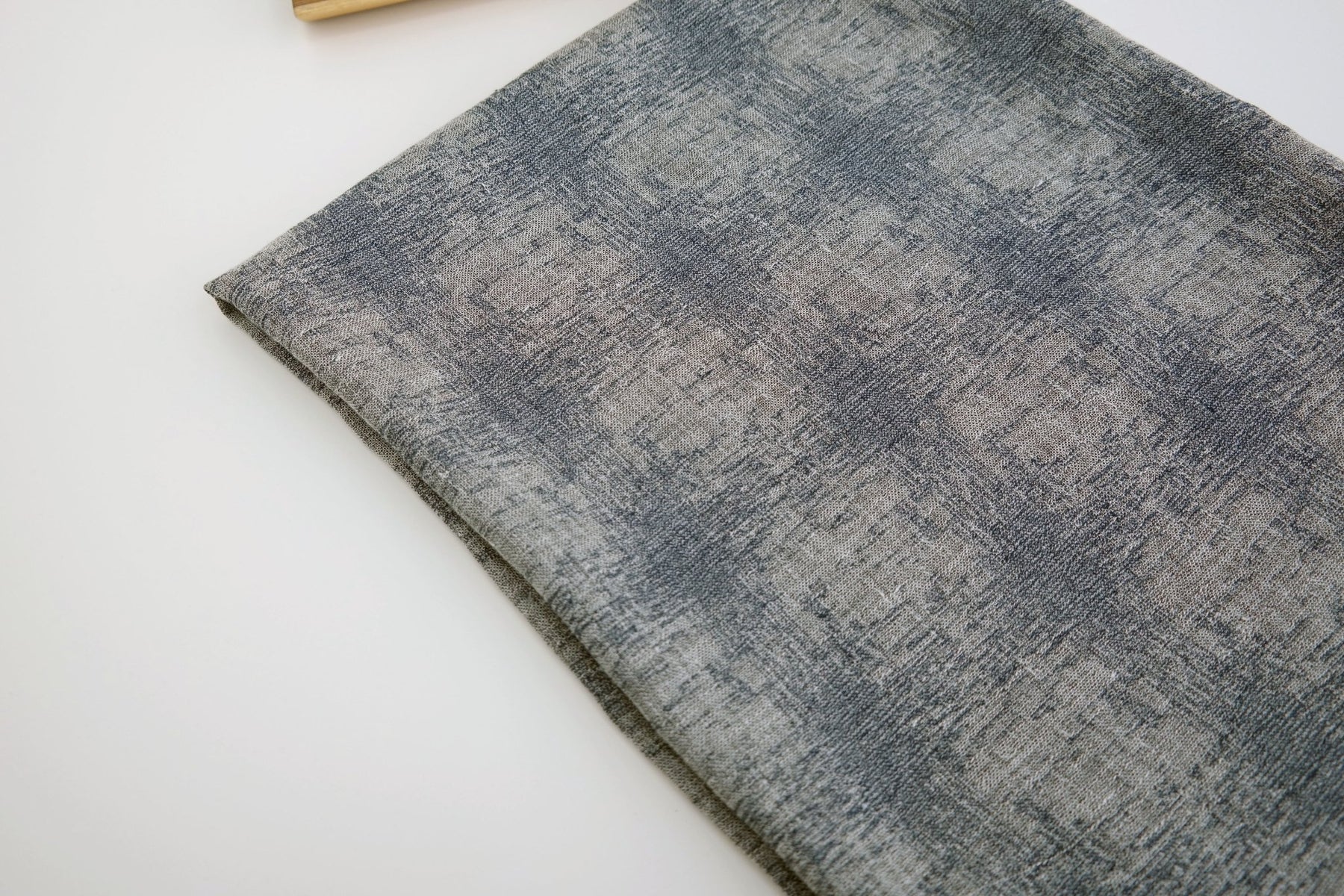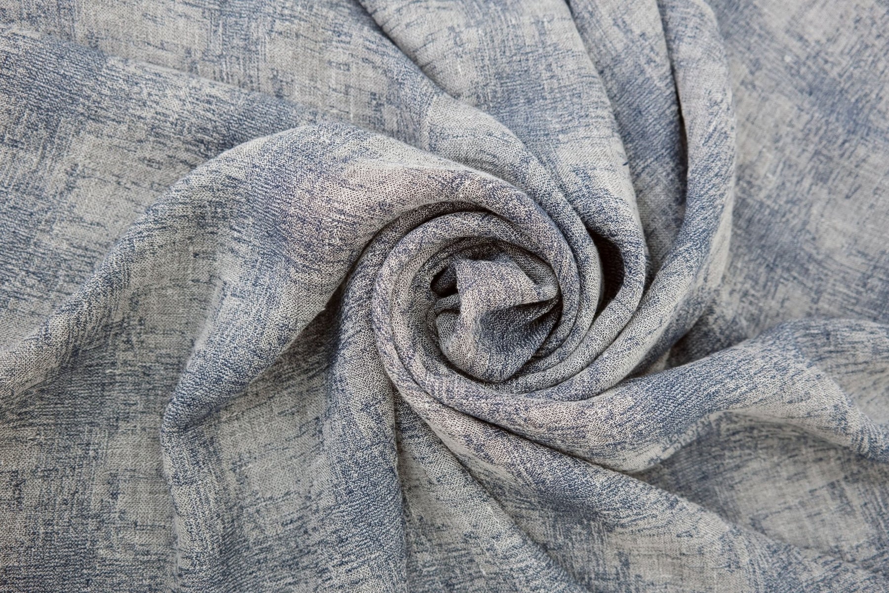 Linen and polyester yarns are twisted together to make harsh and crisp handfeel.
