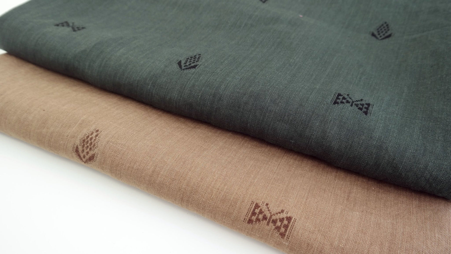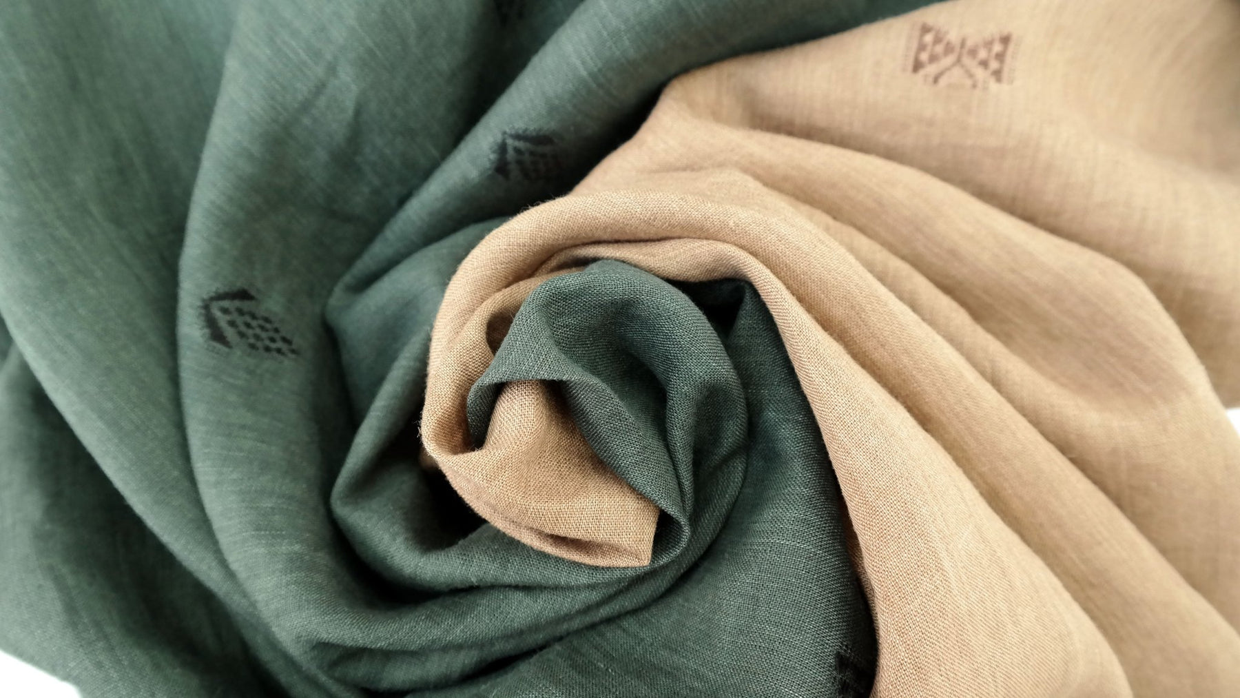This Linen/Ramie blend fabric features an intricate flower and butterfly jacquard pattern, crafted using advanced weaving techniques on a jacquard loom. The detailed design, reminiscent of fine embroidery, is enhanced by the meticulous manual cutting of loose threads to ensure a clean, precise finish. The result is a fabric with a refined texture and elegant visual appeal, reflecting the care and expertise invested in its creation.