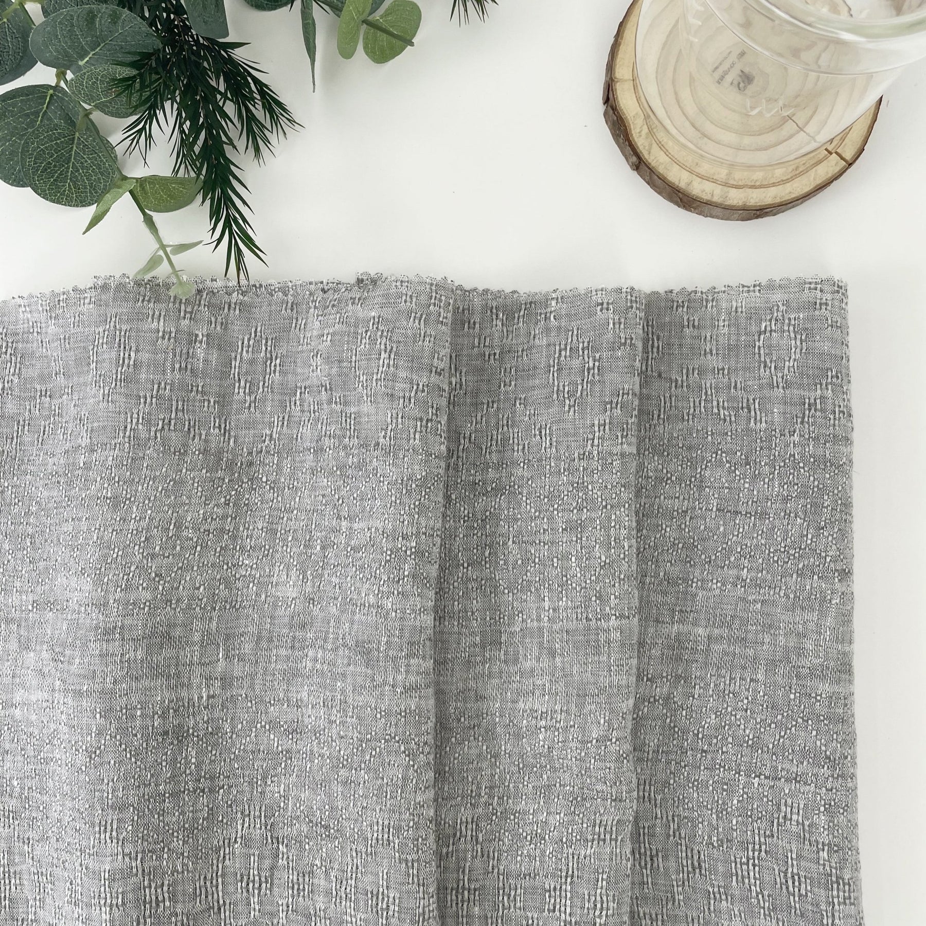 Linen Jacquard Multi Pattern Fabric - The Linen Lab - Grey