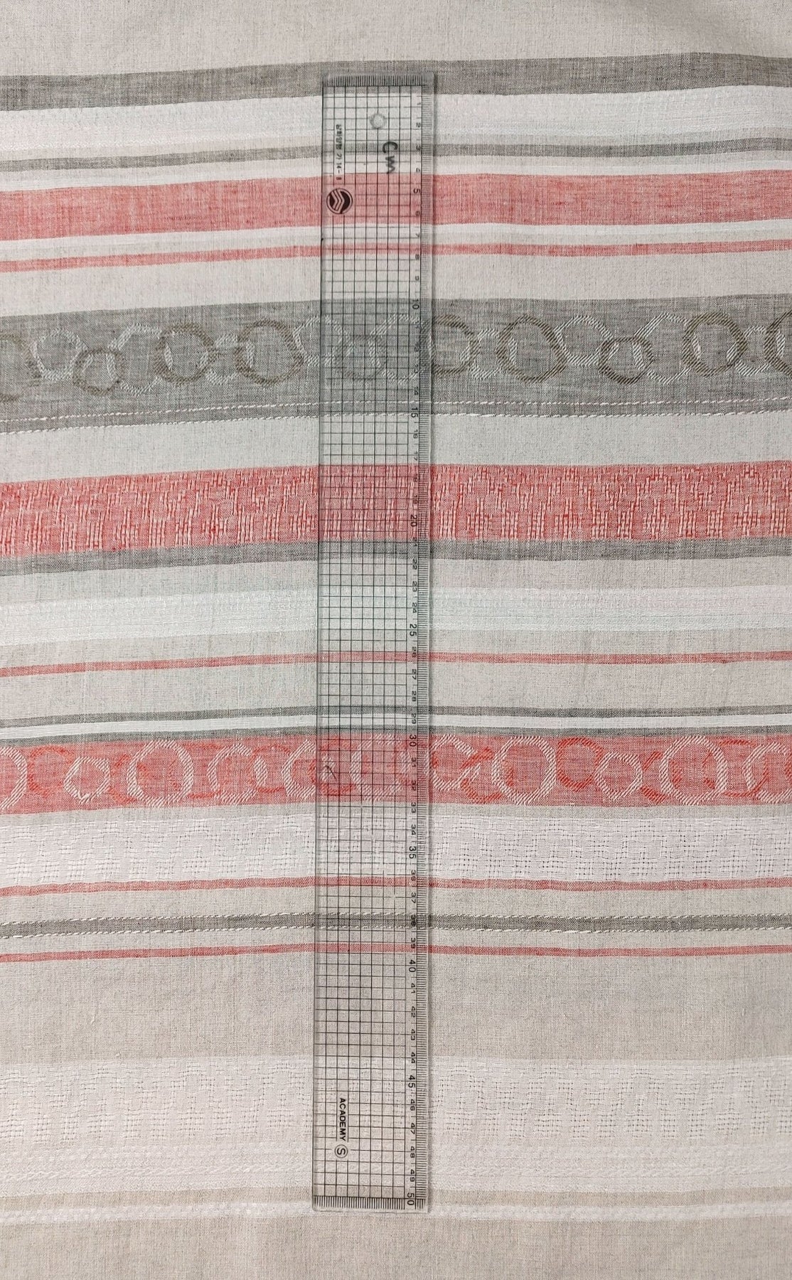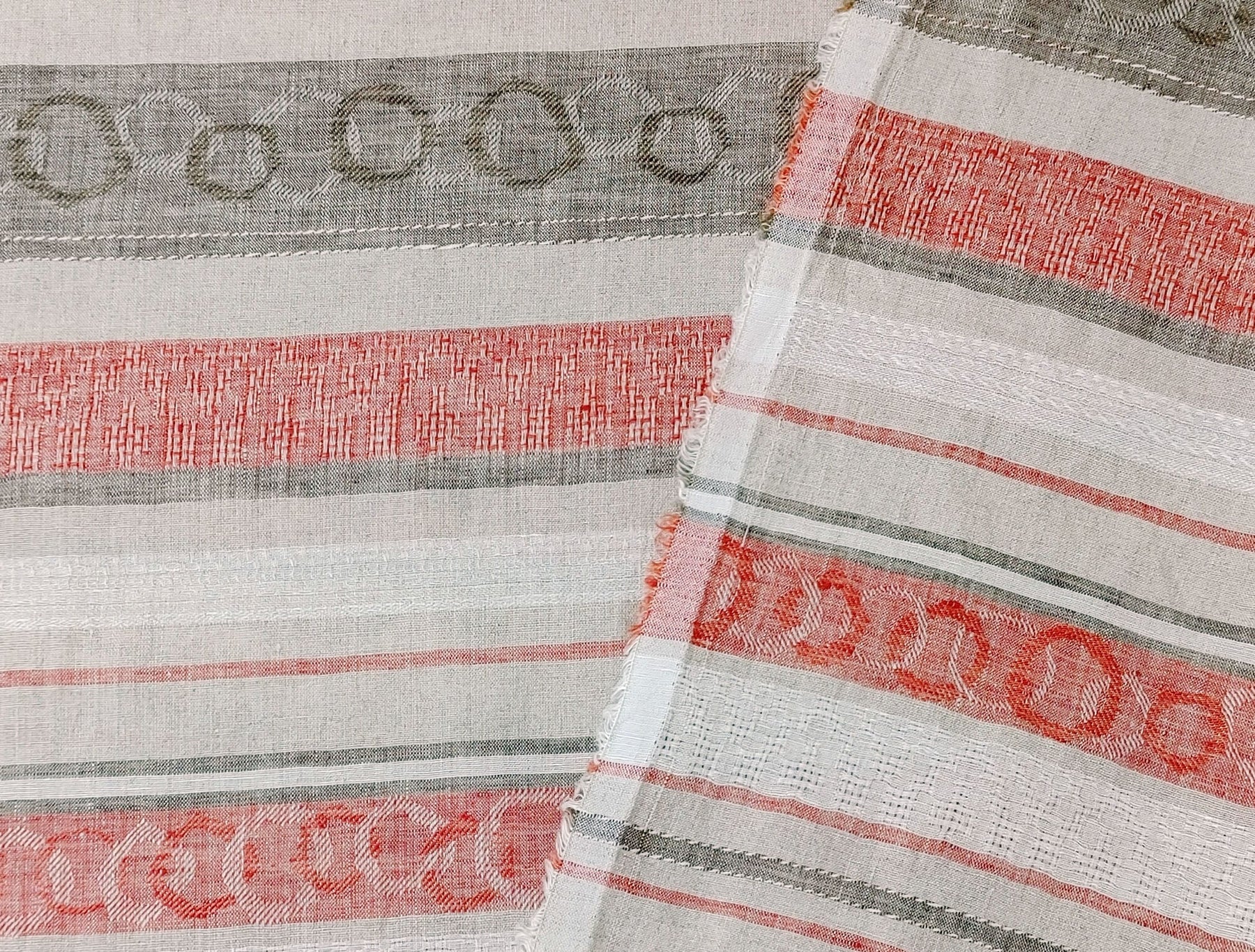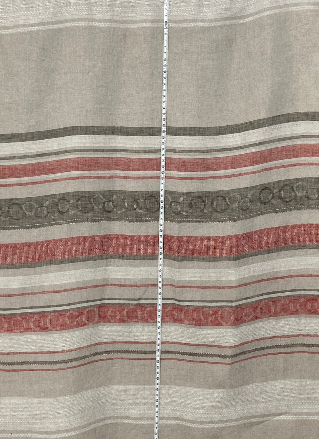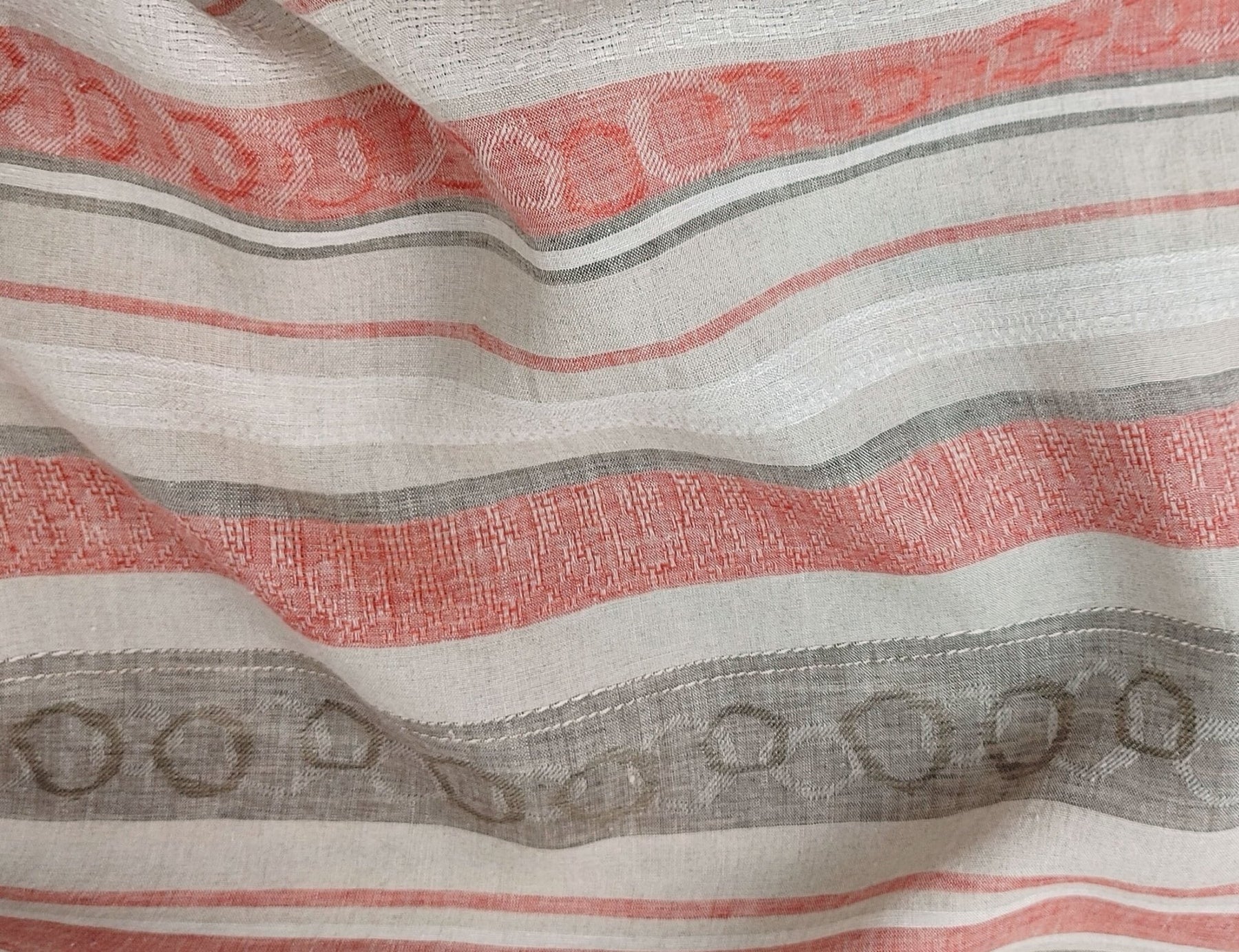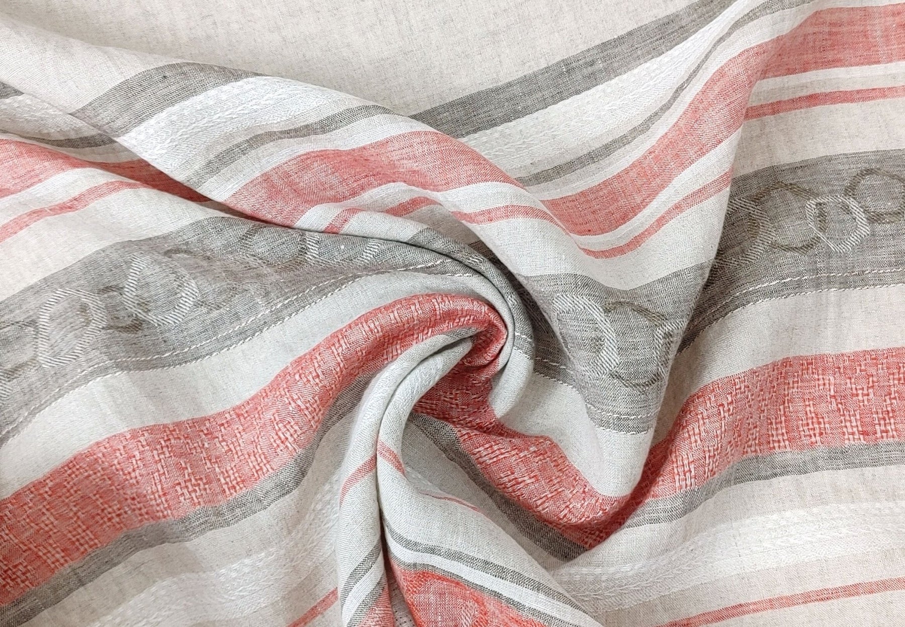 Discover the allure of our "Unique Elegance" Linen Jacquard Fabric 7136, featuring an exceptionally distinctive horizontal stripe jacquard pattern. This fabric showcases a special blend of natural, red, brown, and ivory tones, creating a chic and sophisticated aesthetic.