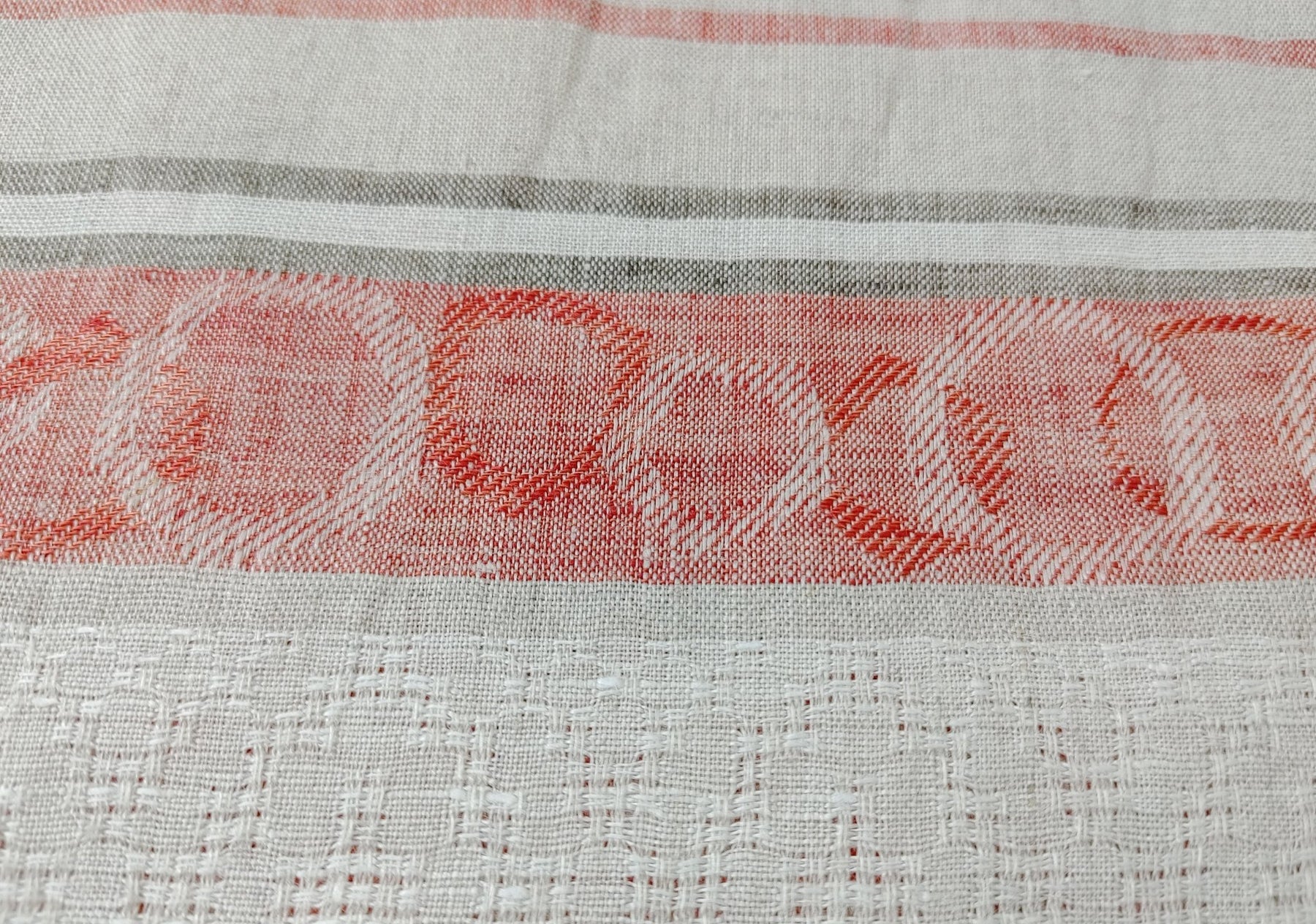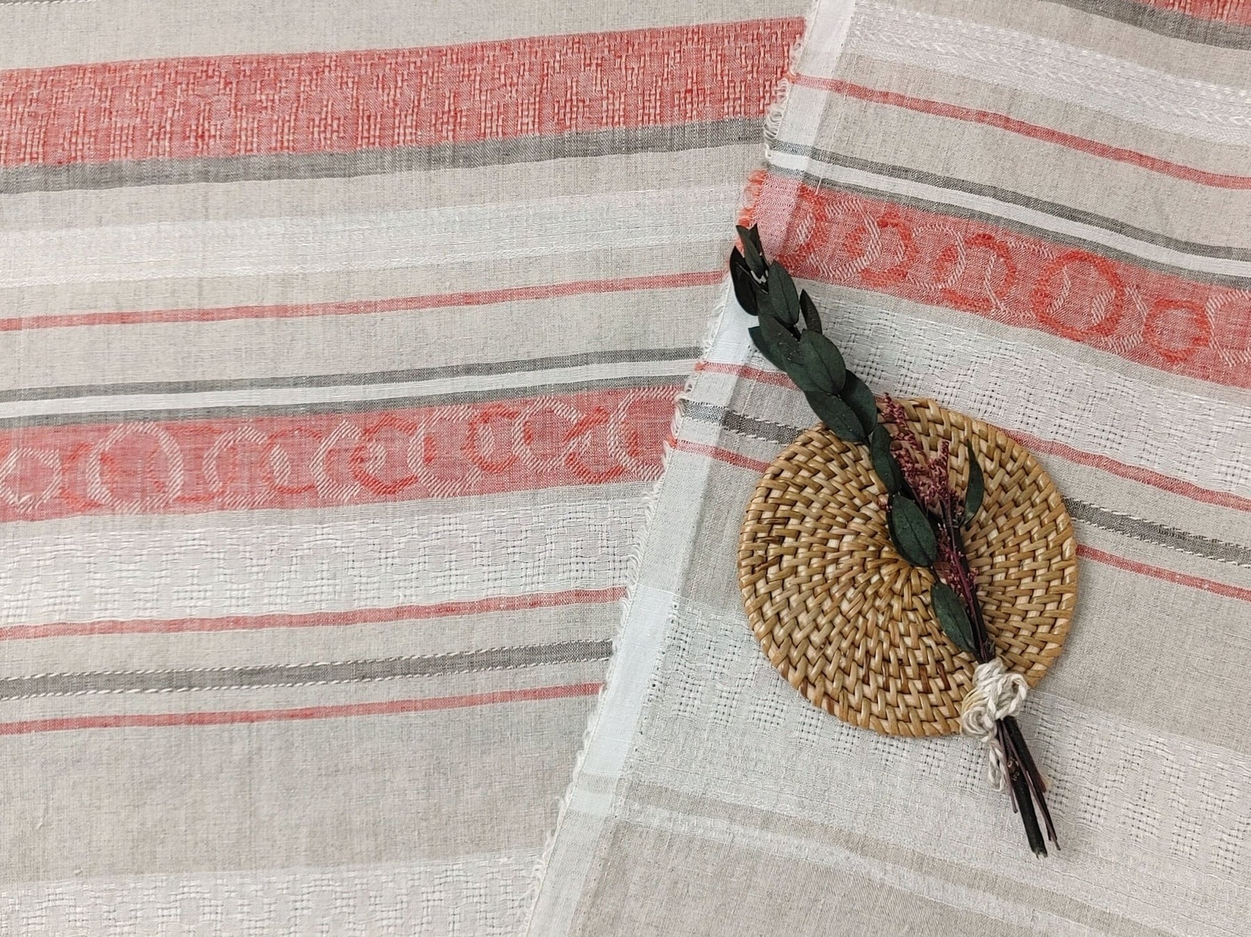 100% Linen Multi-Pattern Horizontal Stripe Jacquard Fabric 7136 - Unveiling an Exceptionally Unique Design in Natural, Red, Brown, and Ivory Hues