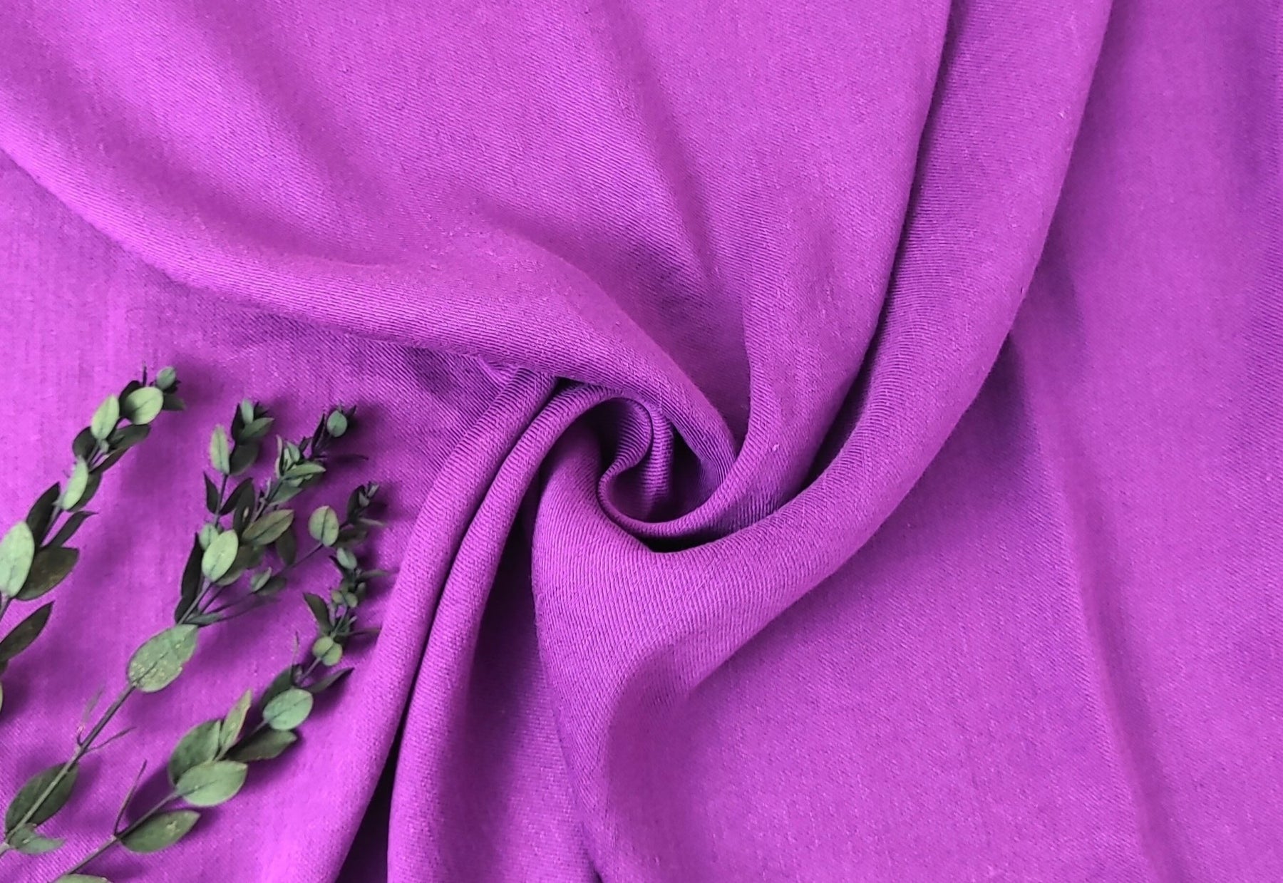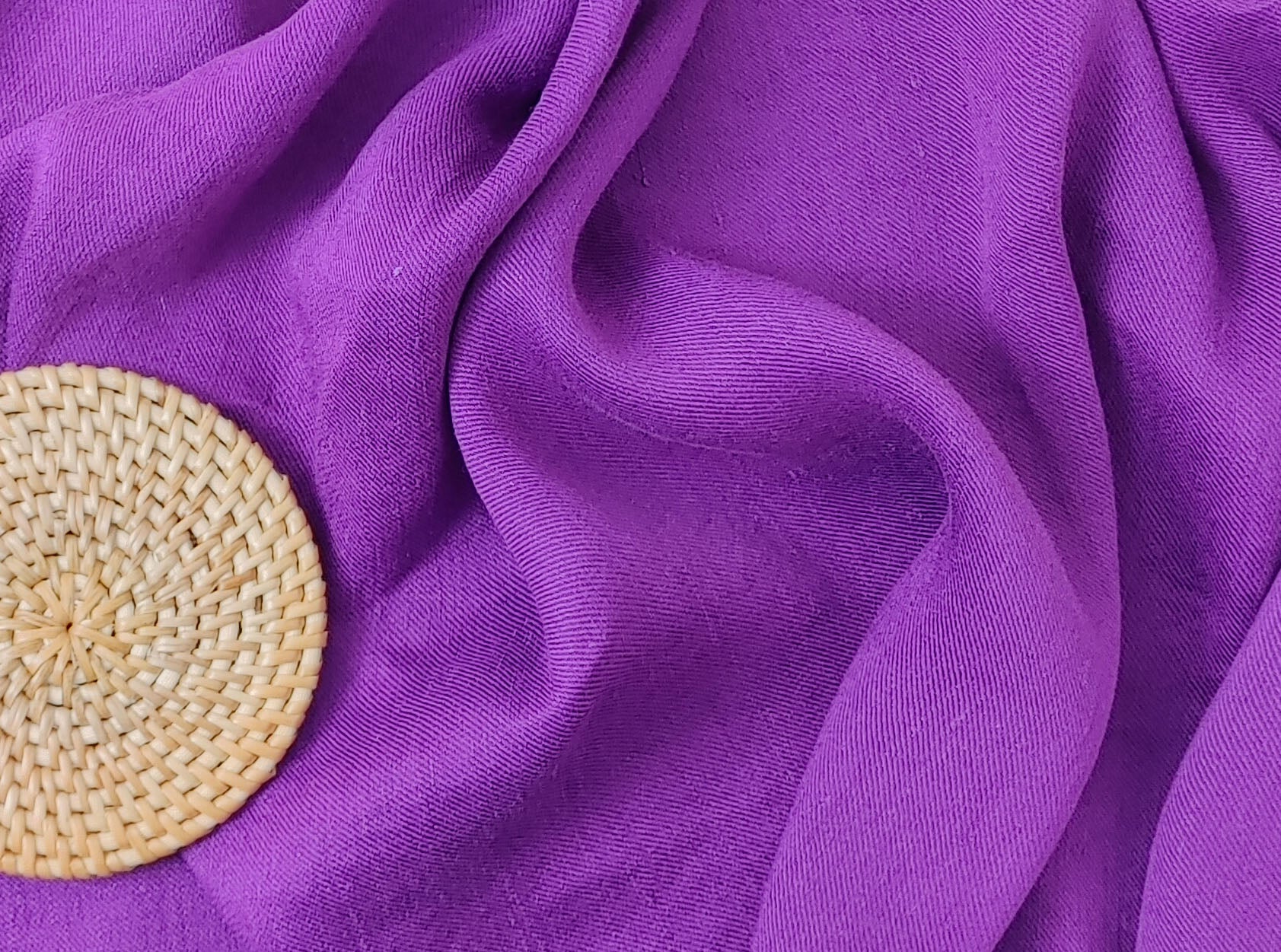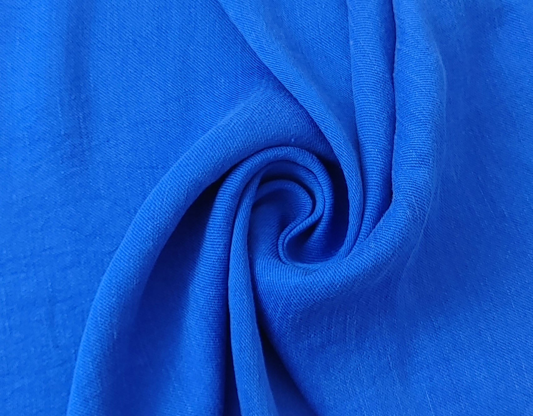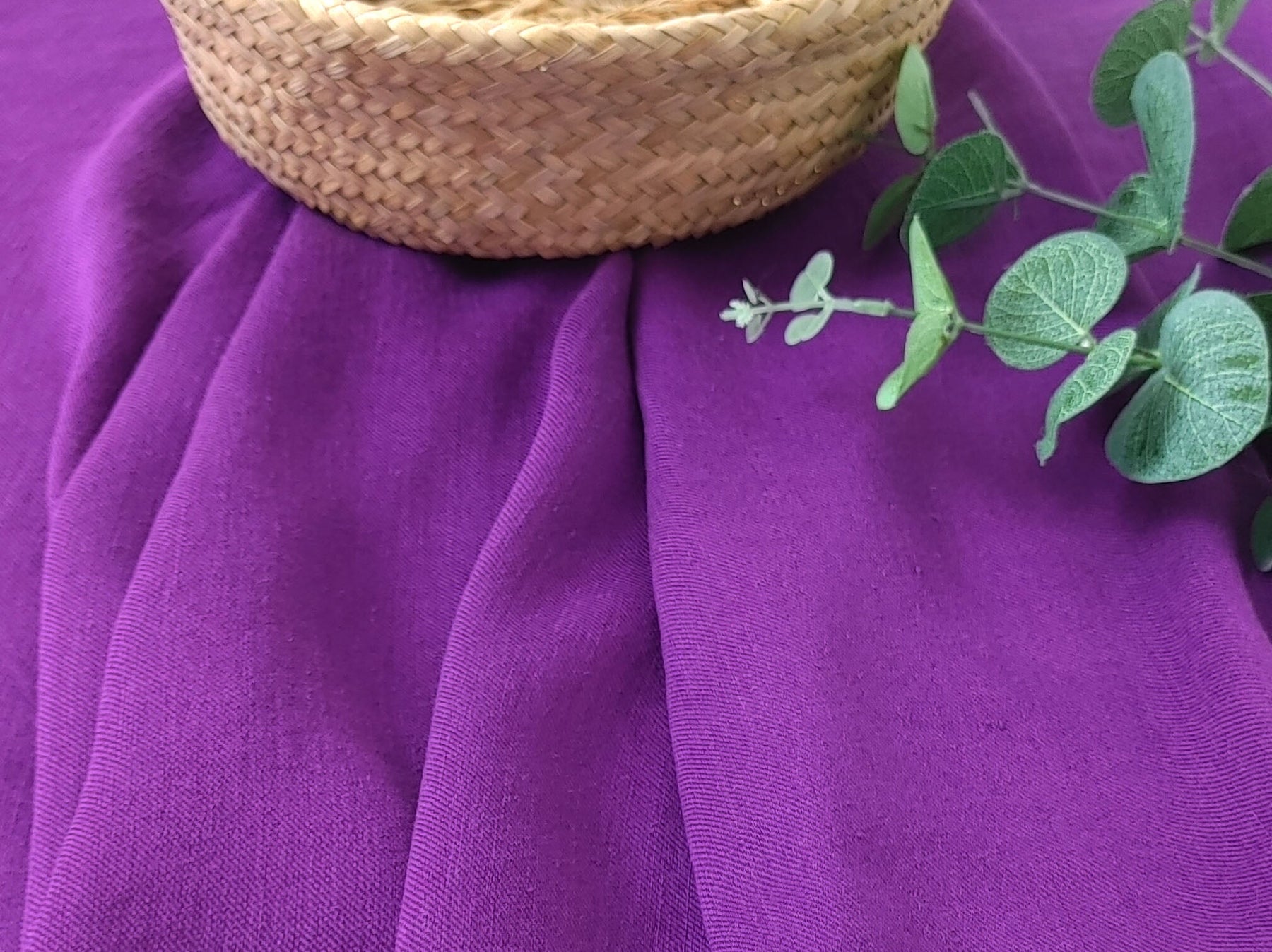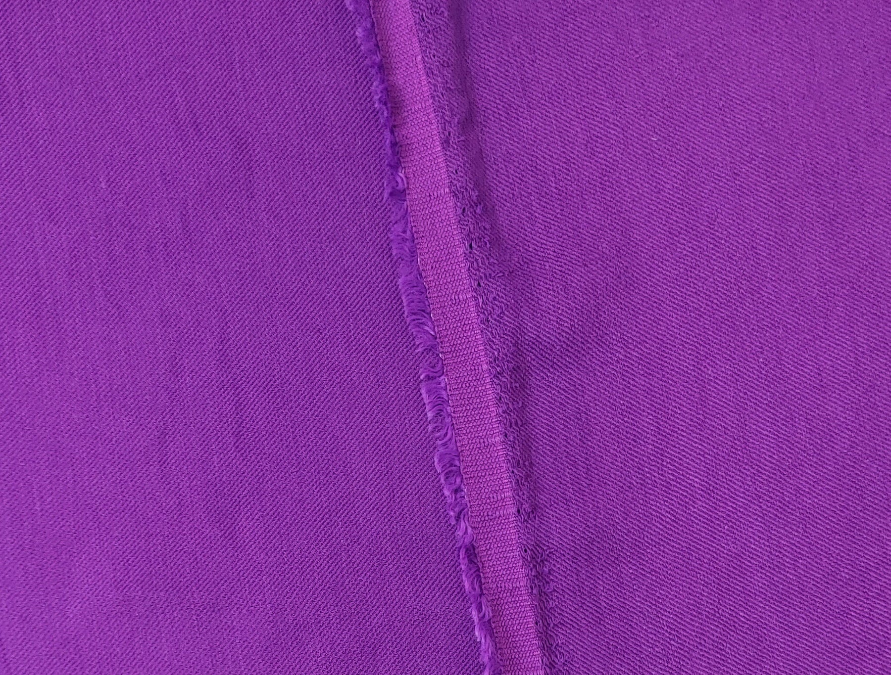 Available in two colorways, blue and violet. The warp is fine linen (14s), providing a rich linen texture. The weft consists of rayon filament yarn with high twisting, giving a subtle natural stretch and a soft silky rayon handfeel. This fabric boasts good drape and is composed of 70% Linen and 30% Rayon. With a medium weight of 188 g/sqm (5.54 oz per square yard) and a width of 52 inches (132cm), it offers a pre-washed, soft, and draping handfeel, along with subtle and natural stretch.