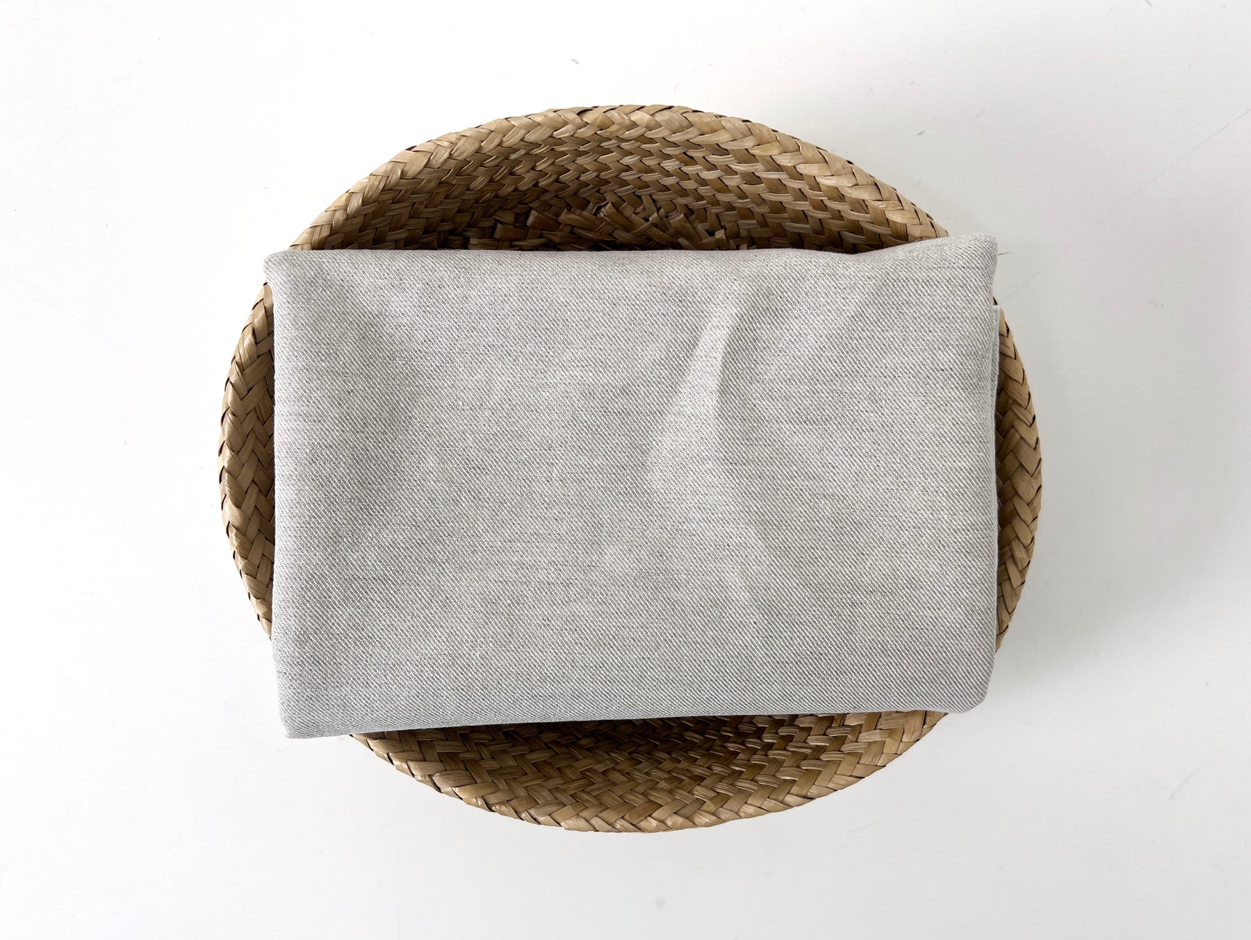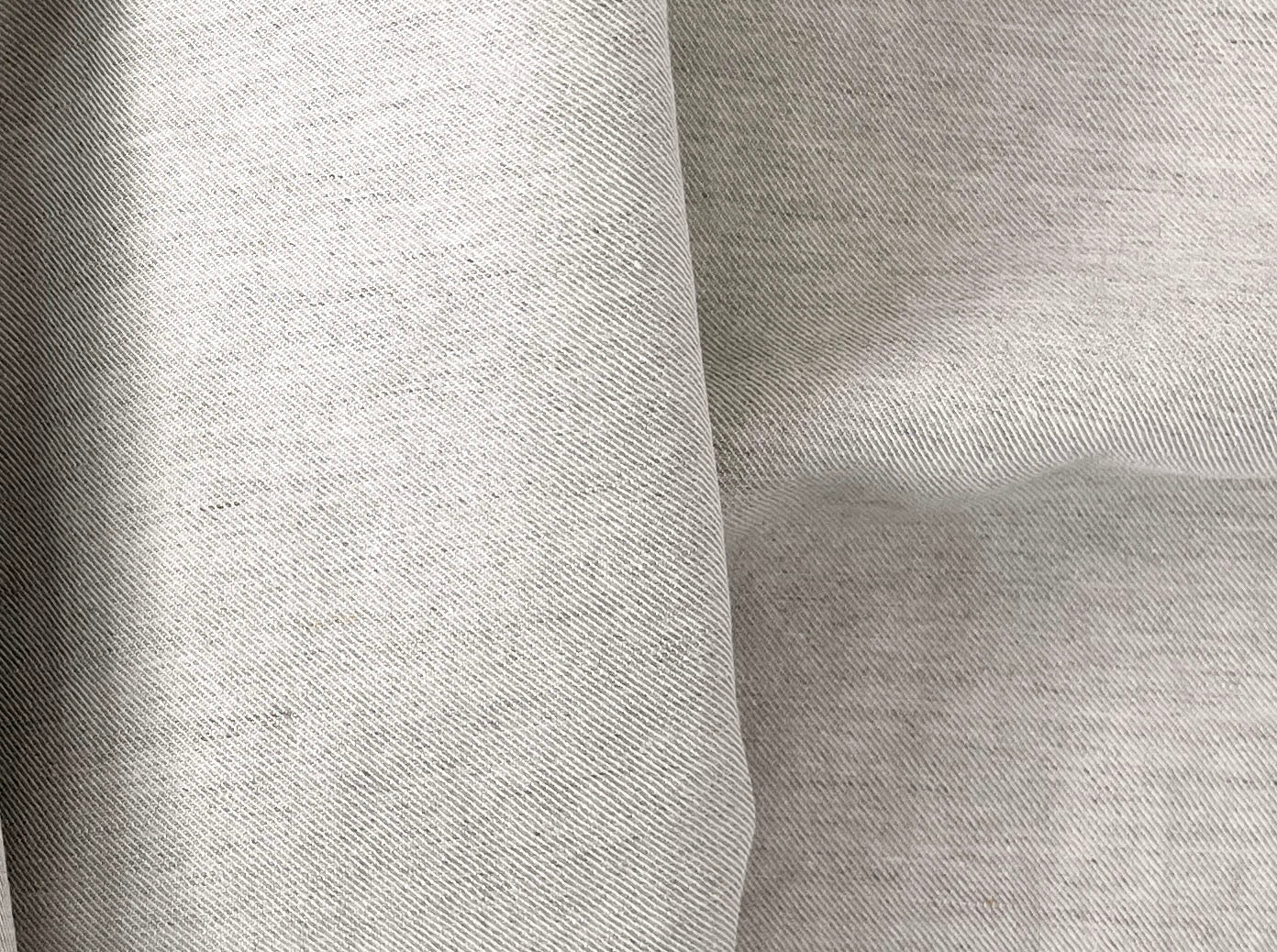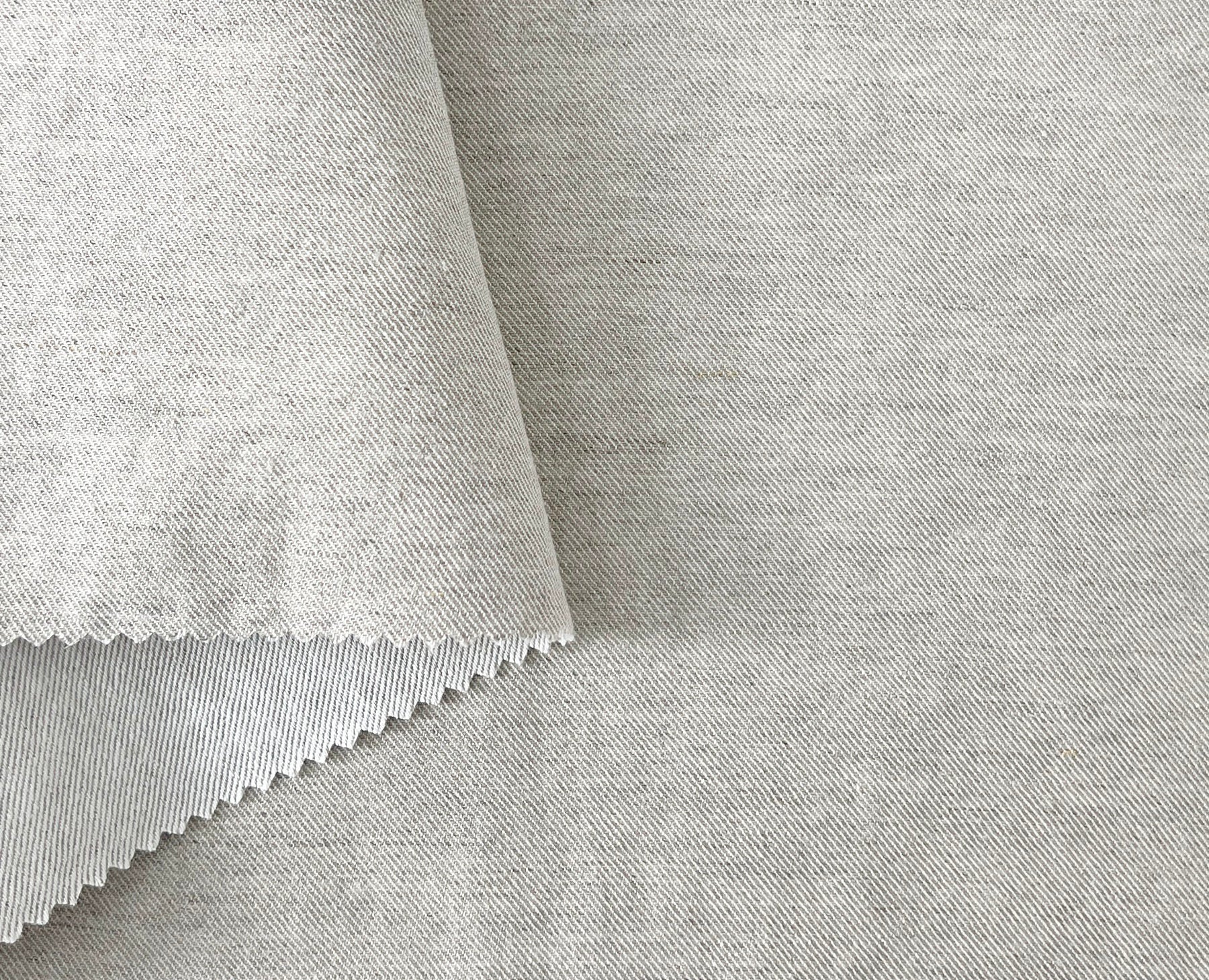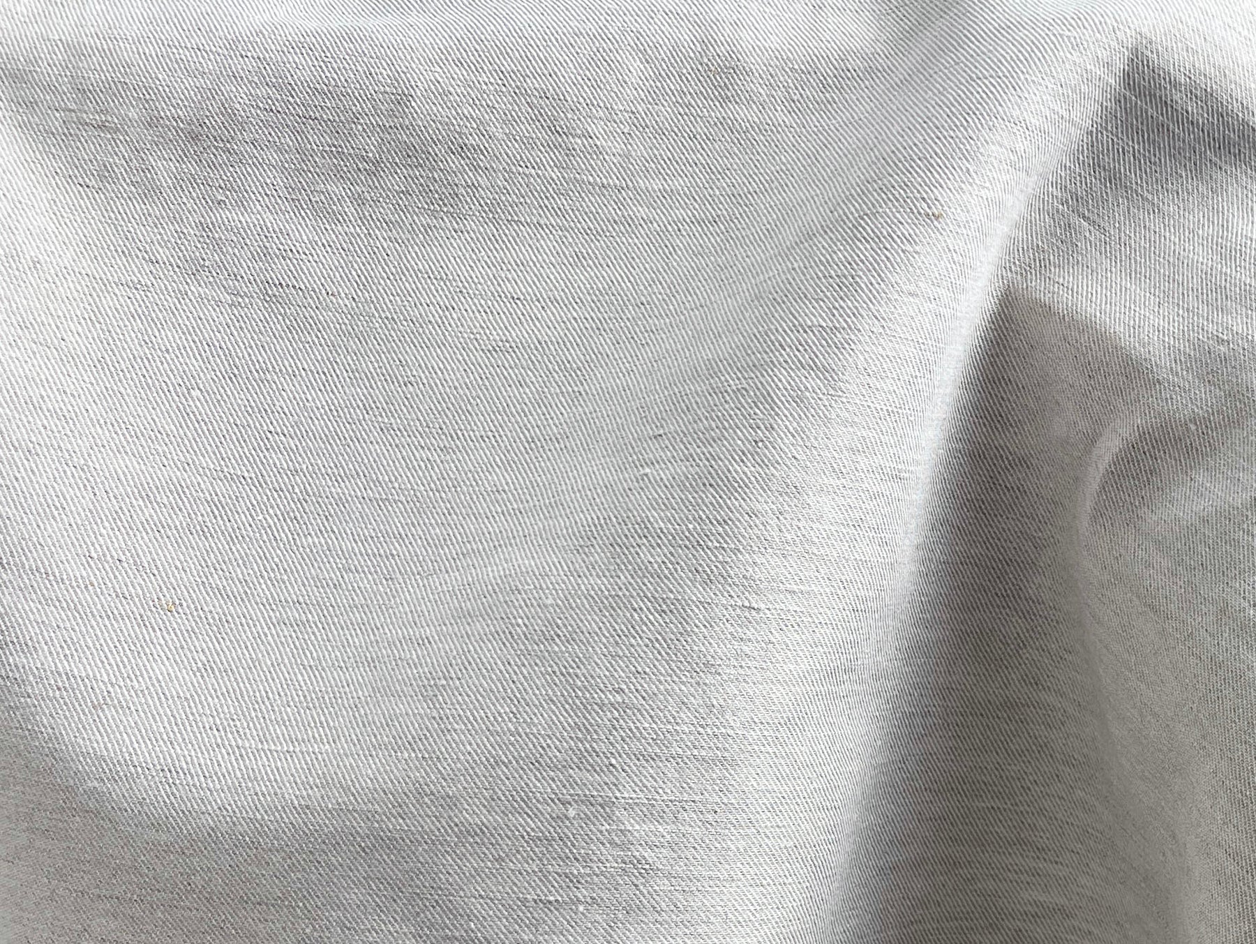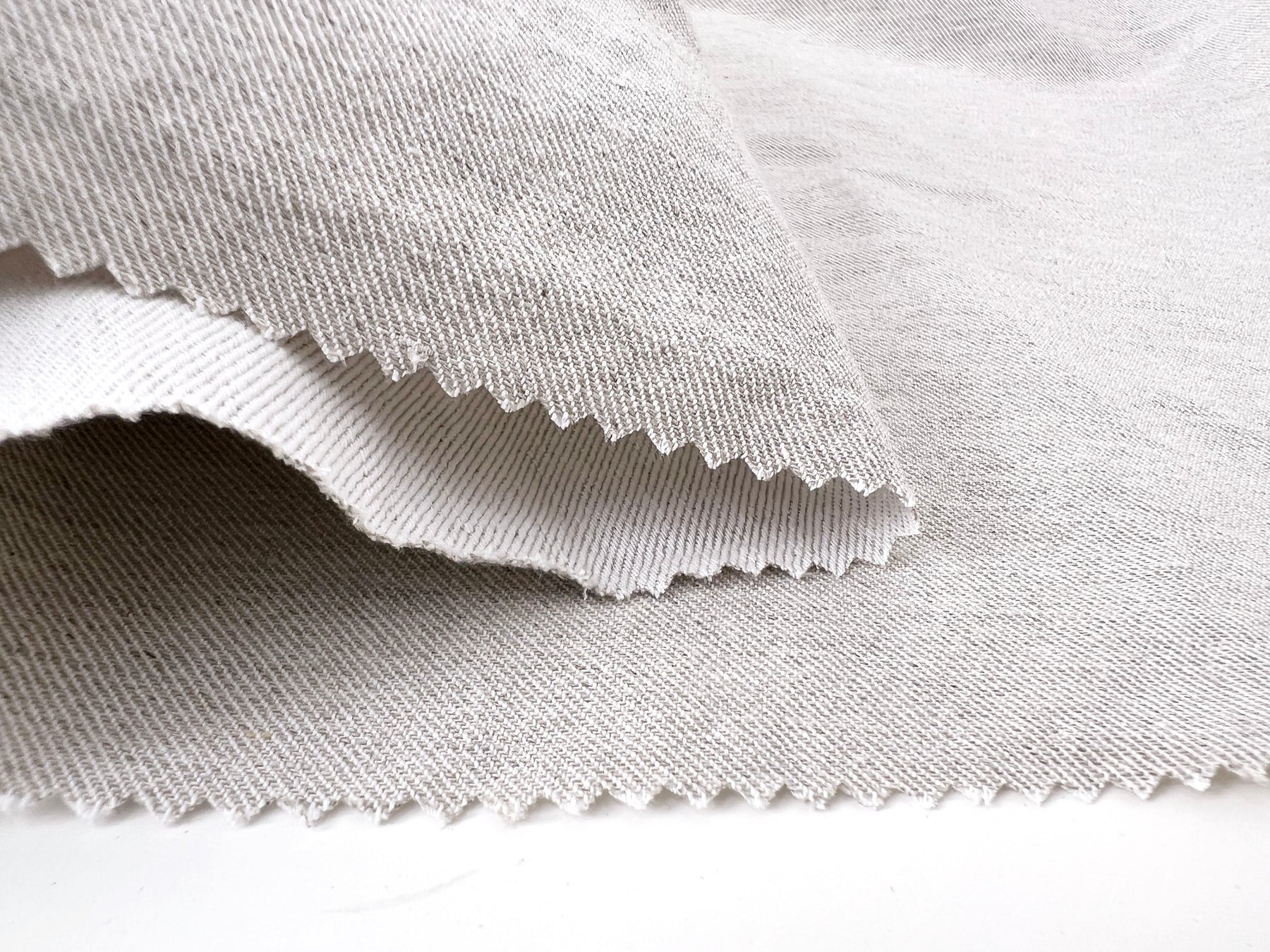 Experience the timeless appeal of this linen-cotton twill fabric in a soft, light natural color. Woven with cotton 10s yarn on the warp and linen 14s yarn on the weft, it features a subtle twill texture that combines strength with an organic look.