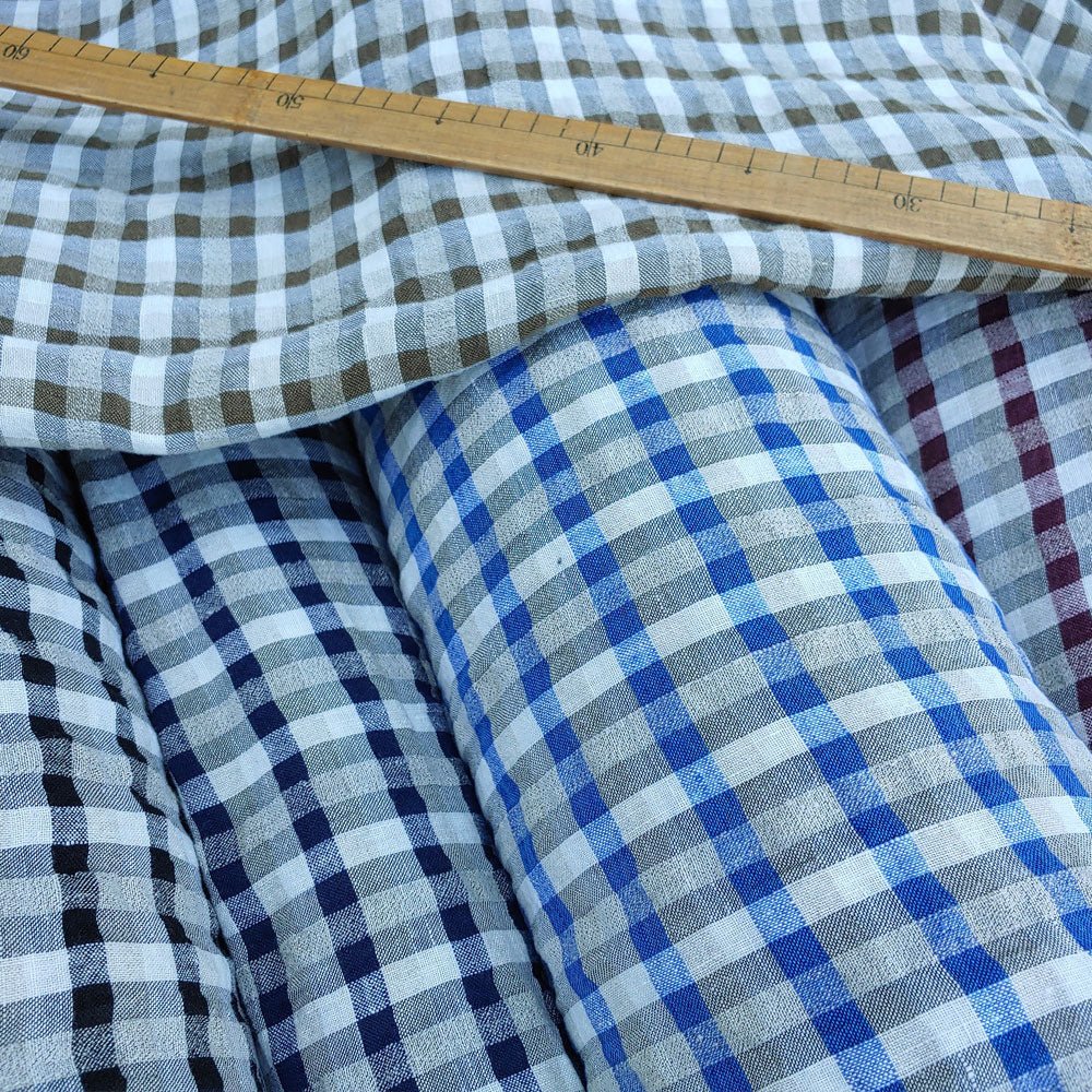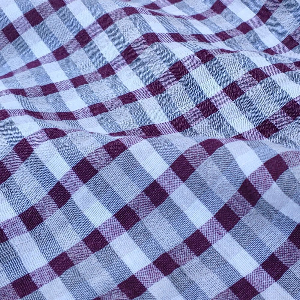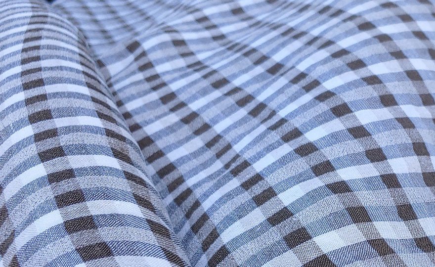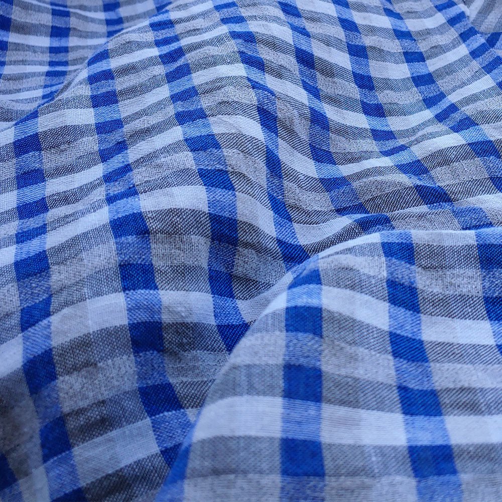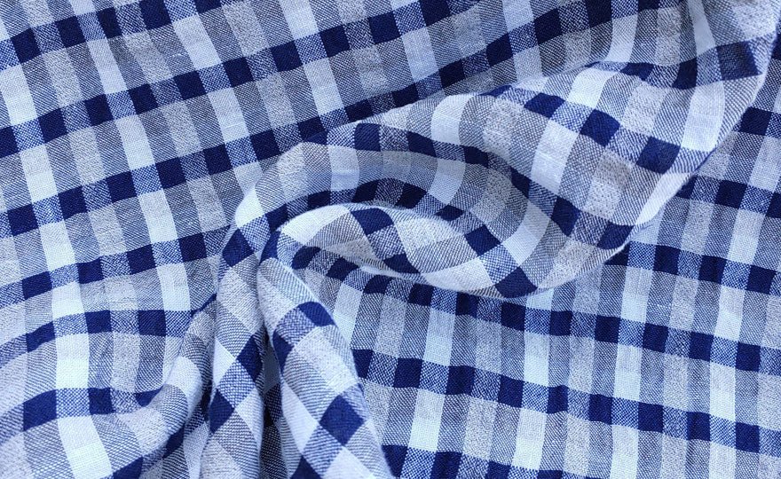 The 8% rayon gives the fabric a thin, high-twisted look, while the 2% polyester is twisted in with the linen yarn. These advanced techniques help create a fabric with unique features, such as natural seersucker effect and a cool, crisp feeling. This fabric is ideal for shirts and dresses.
