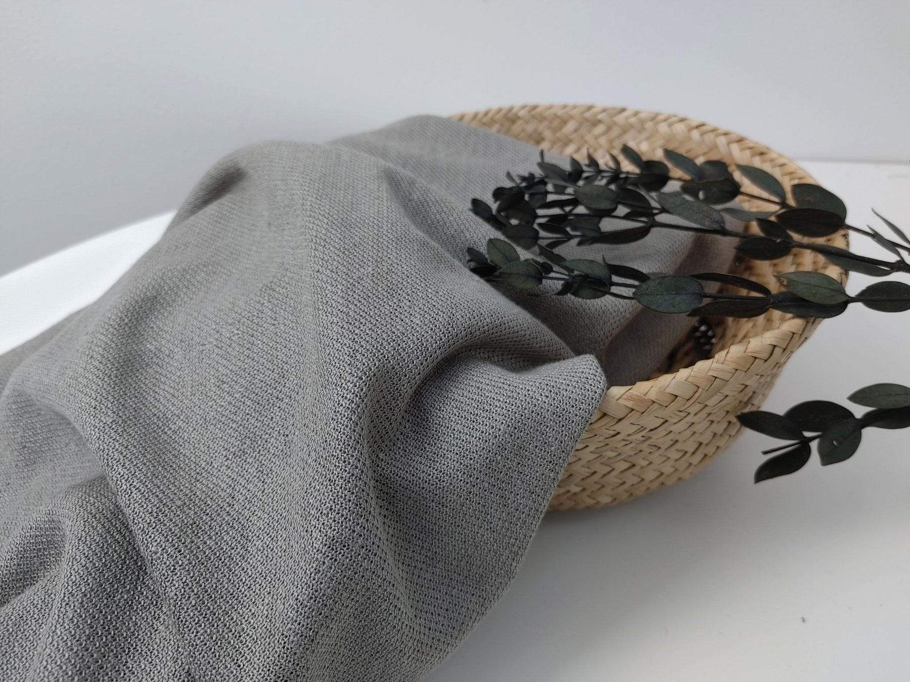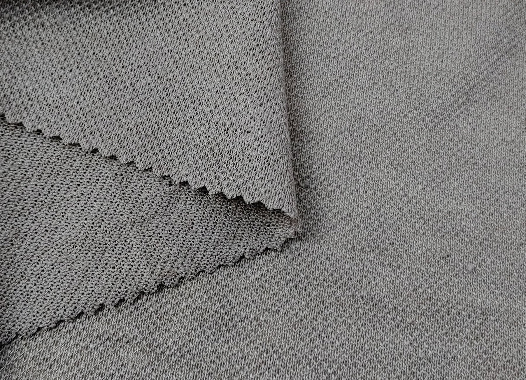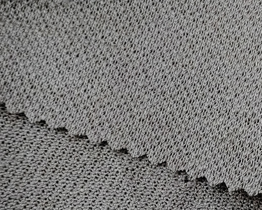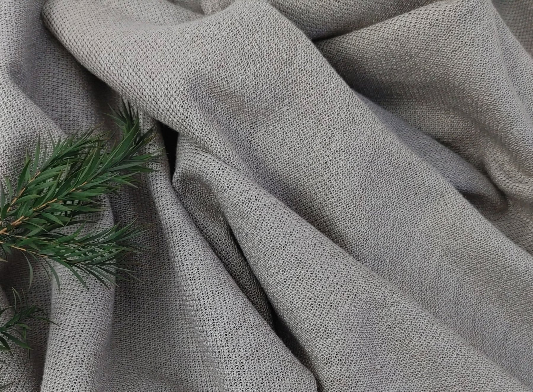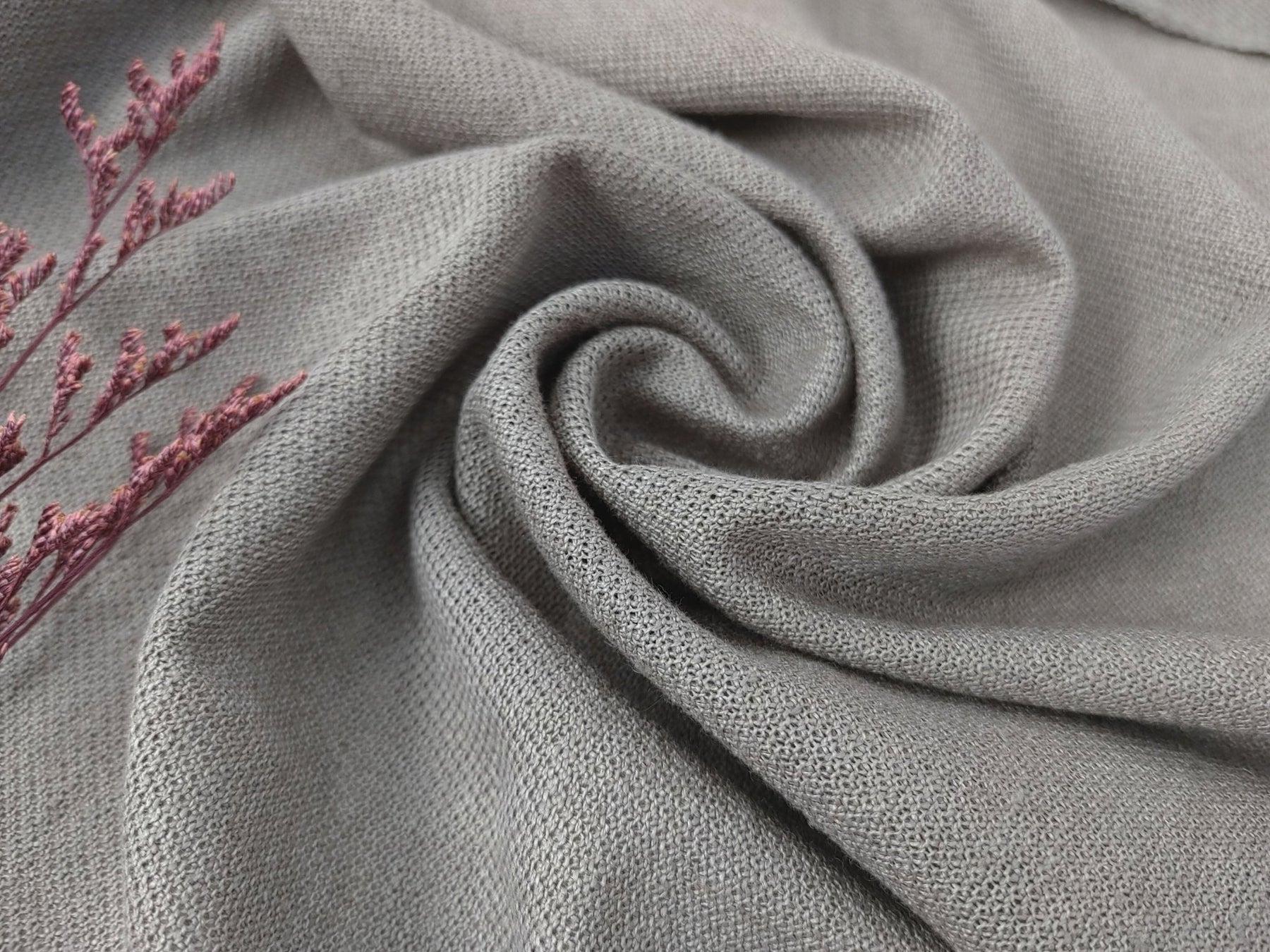Explore the versatility and comfort of this unique blend, where the artful twisting of linen yarn and nylon filament yarn adds a distinctive character to your creative endeavors. Ideal for crafting garments and accessories, this knit fabric invites you to discover the seamless blend of style and practicality.
