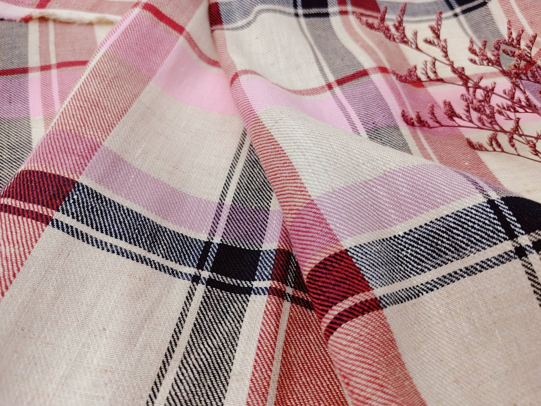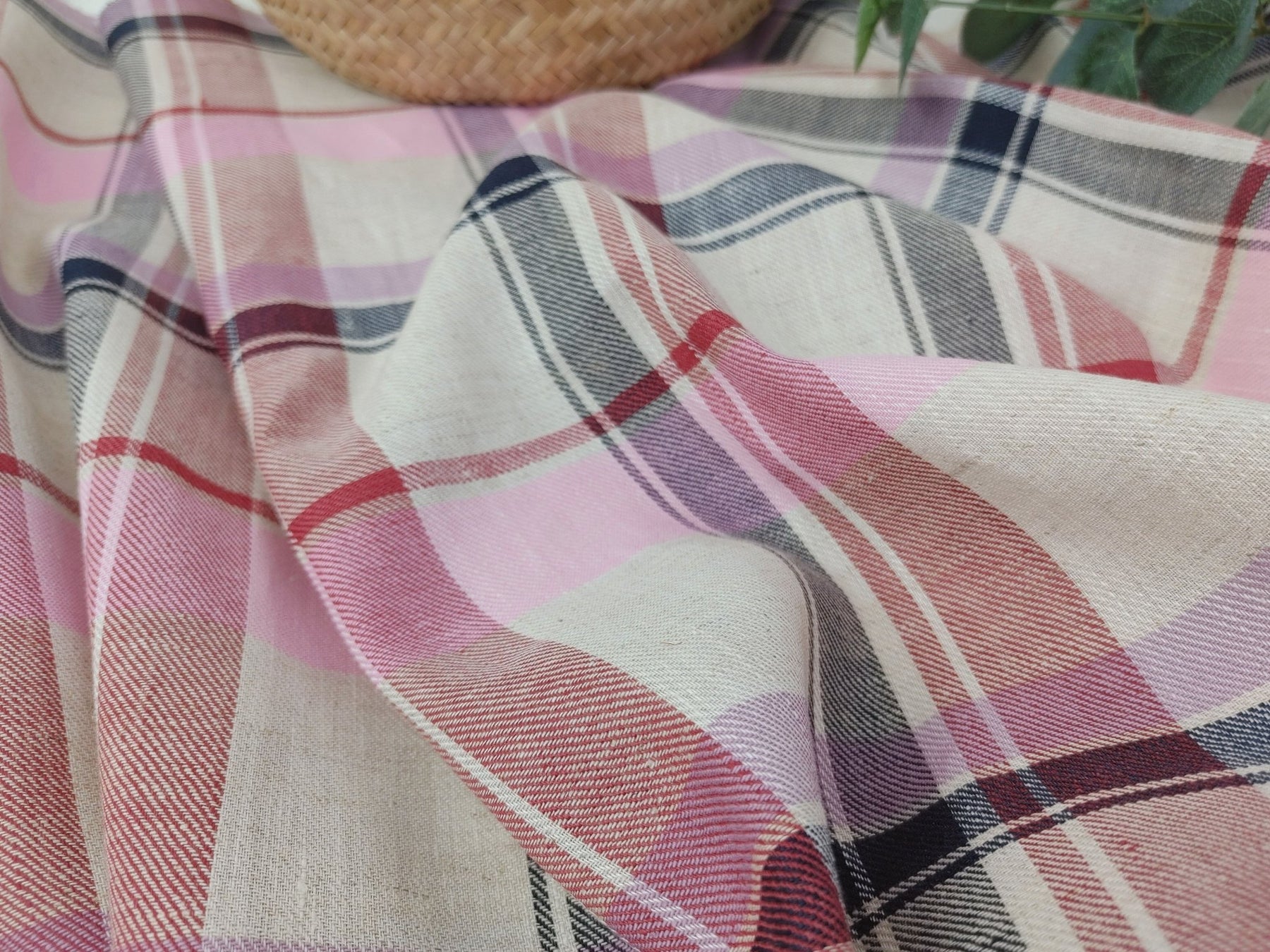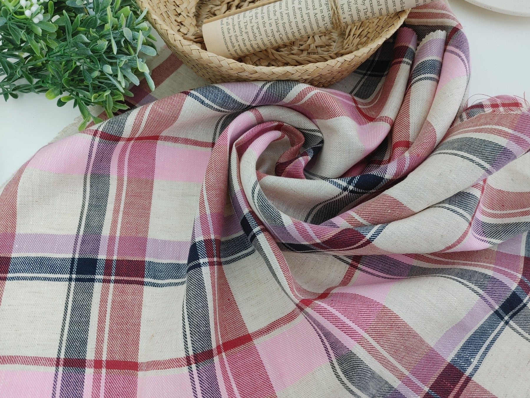 Explore the simple joy and enduring style of Rosy Check, where the combination of linen, cotton, and a classic plaid design creates a fabric that is both delightful and practical.