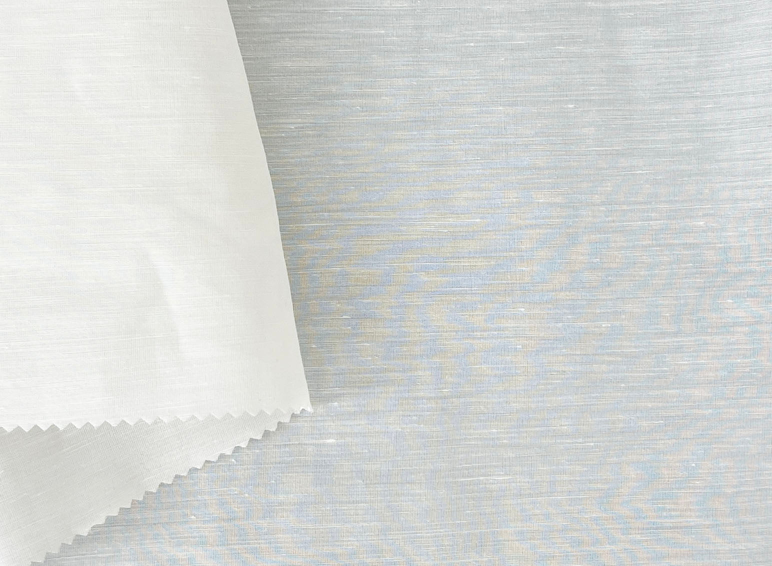 This white fabric blends the natural texture of linen with the durability of nylon and the flexibility of PU for excellent stretch. Designed with very good elasticity on the warp side, it offers both comfort and shape retention, making it ideal for apparel that needs movement without losing structure.