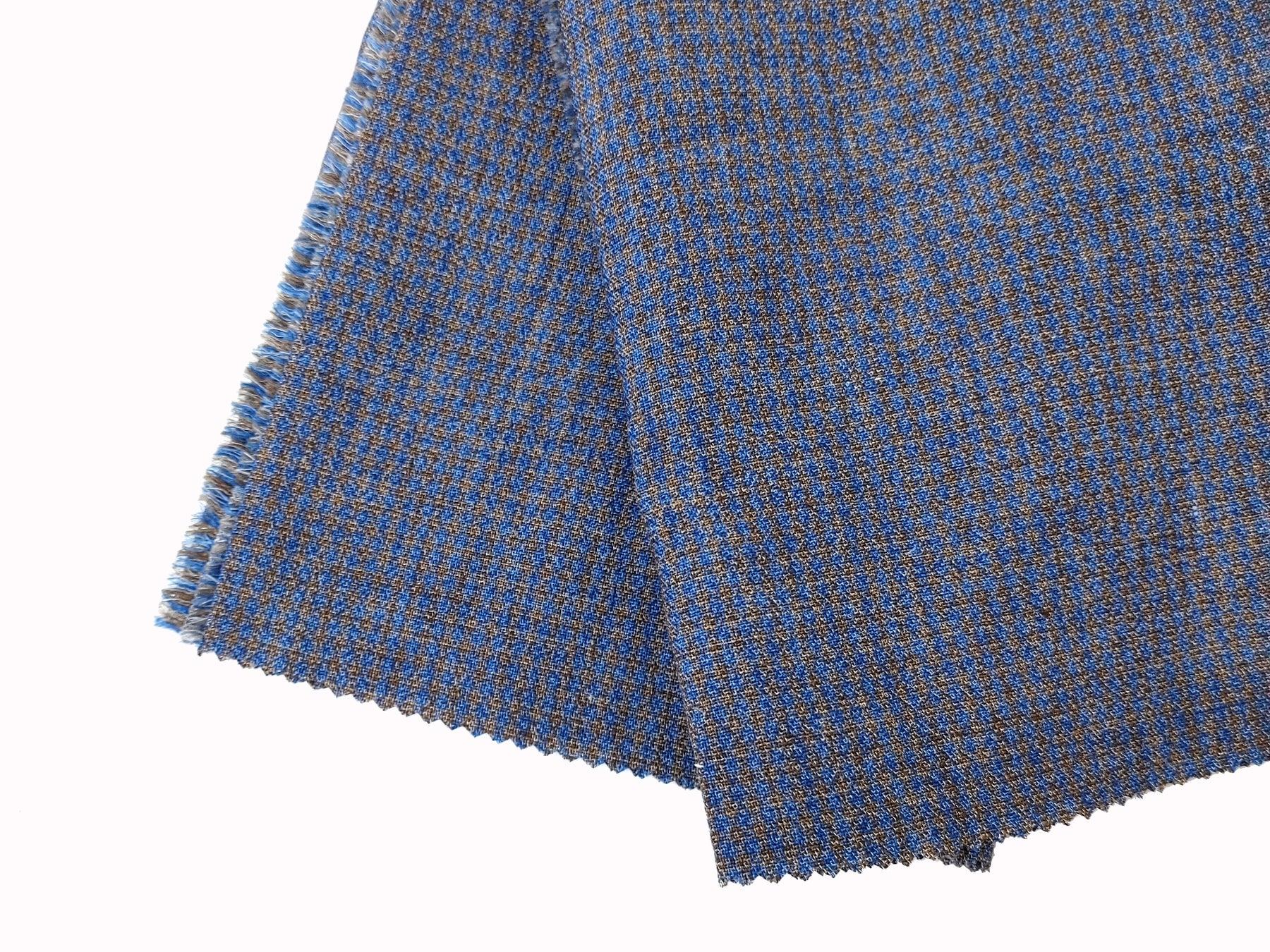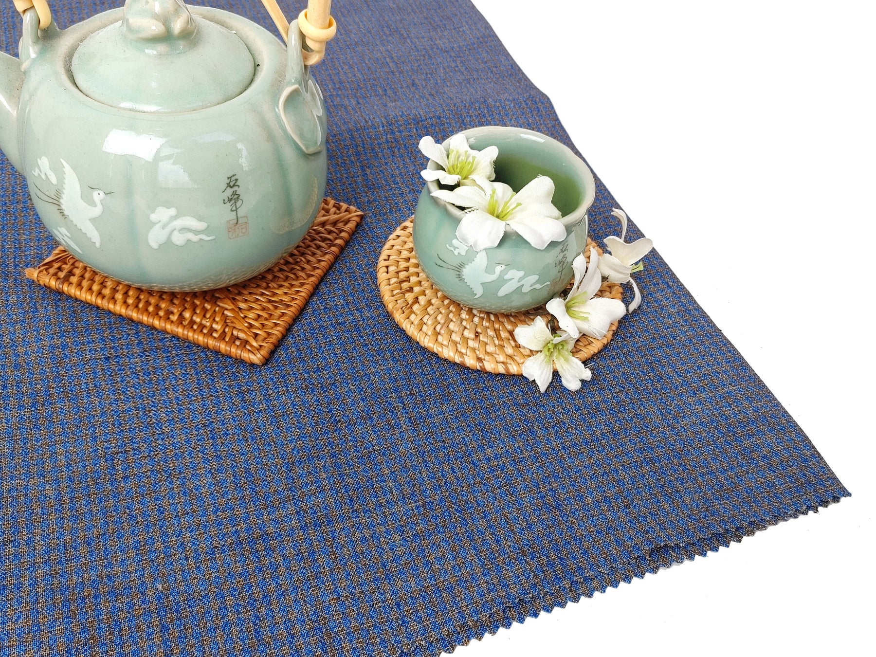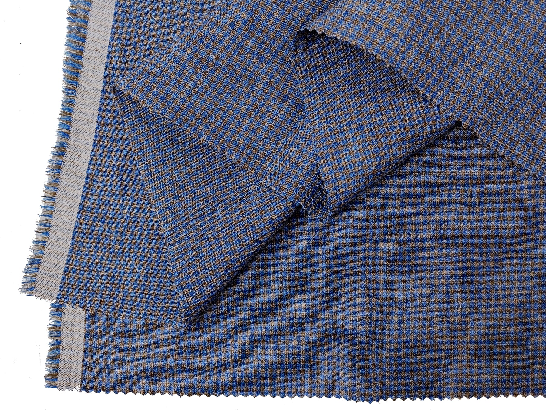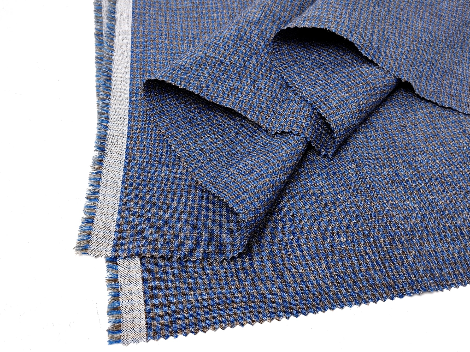 This unique and special fabric combines the timeless gingham check pattern with a modern melange effect. Made from 14s linen and a blend of 40s polyester/linen mixed yarn, the fabric achieves its two-tone melange look through a vintage delave dyeing process. The linen yarn is dyed using this method, while the polyester/linen blend yarn is dyed only on the linen side, creating a sophisticated contrast. The different yarns are twisted together to enhance the texture and softness of the fabric.