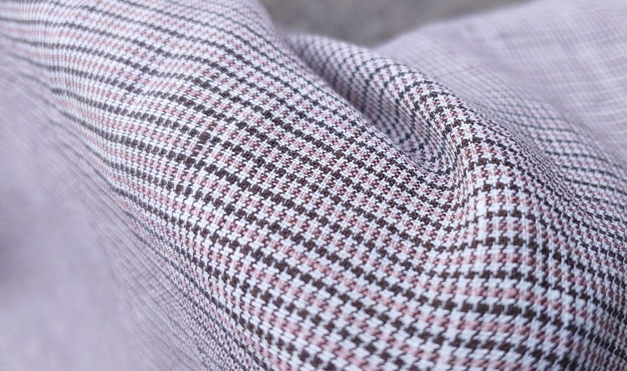 100% Linen Fabric small starcheck light weight - The Linen Lab - 6746 pink brown