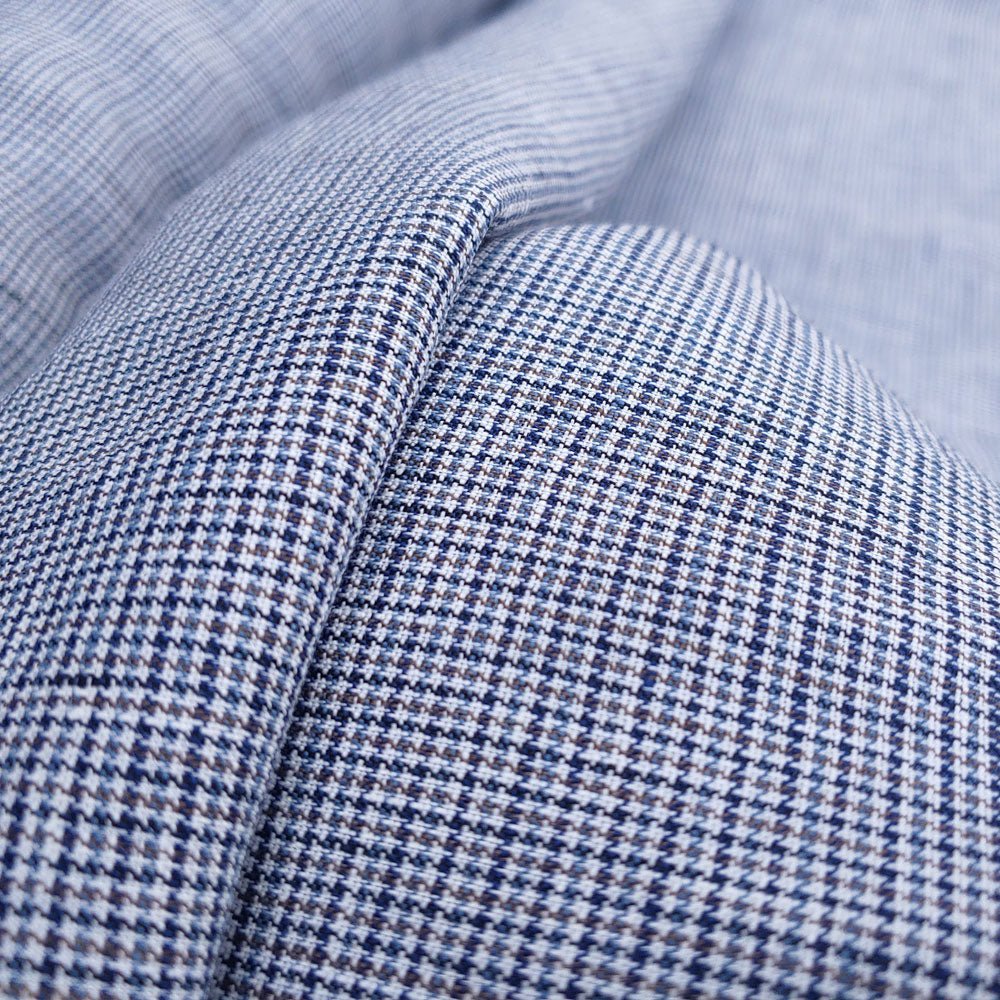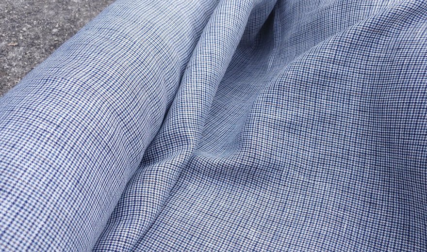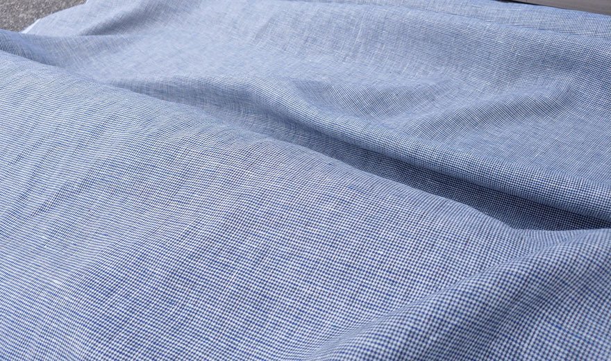 100% Linen Fabric small starcheck light weight - The Linen Lab - 6578 blue grey beige