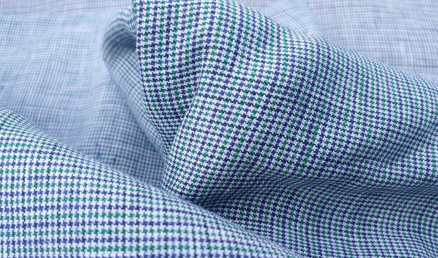 100% linen, small starcheck pattern.