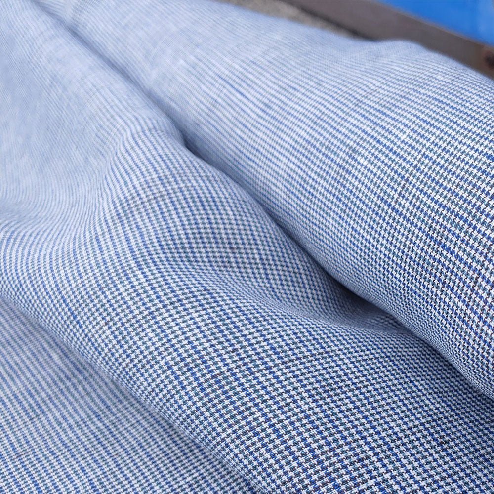 100% Linen Fabric small starcheck light weight  - The Linen Lab - 6578 blue grey beige