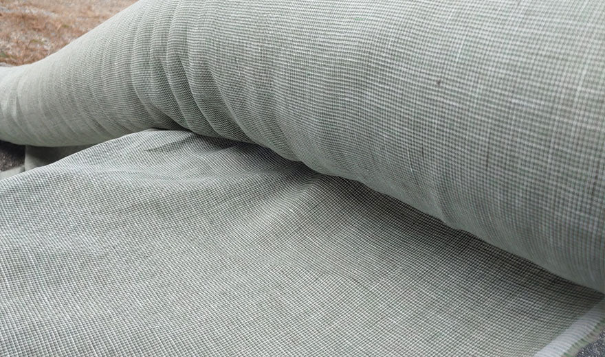 100% Linen Fabric small starcheck light weight  - The Linen Lab - 6121 green brown