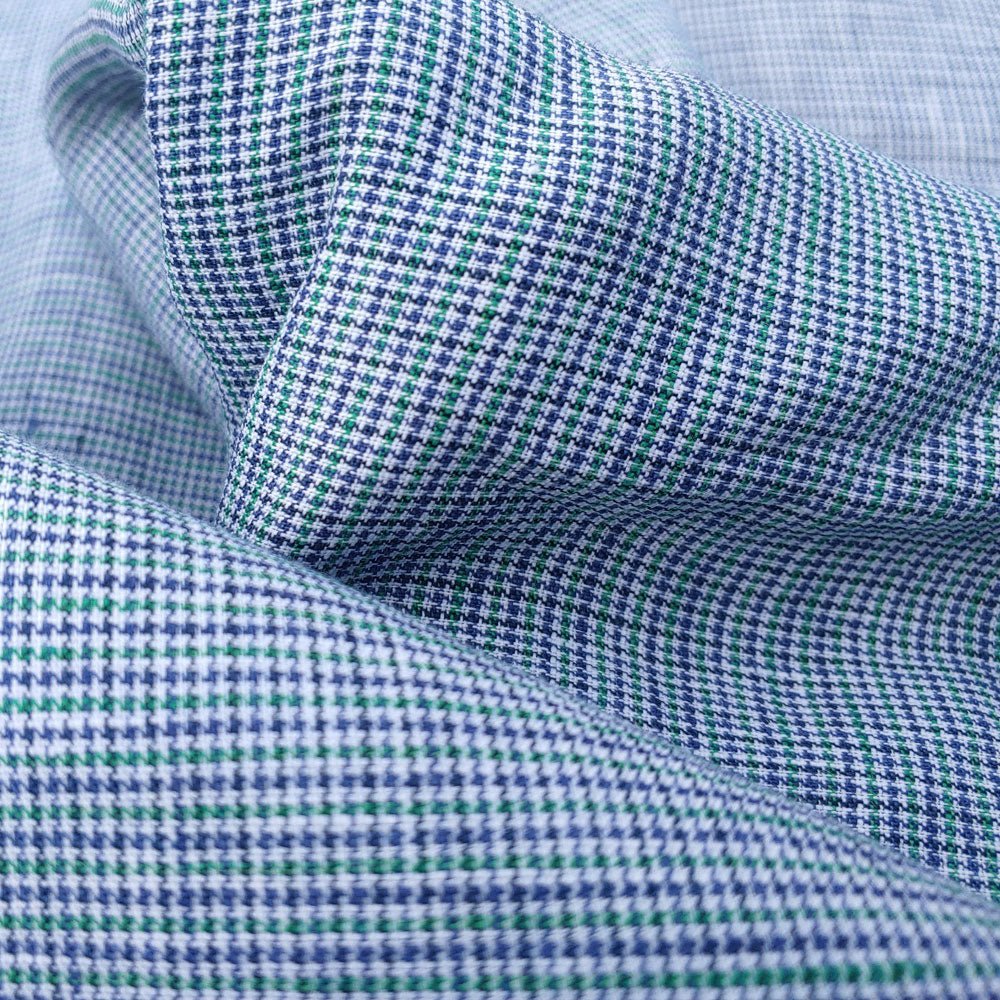100% Linen Fabric small starcheck light weight  - The Linen Lab - 7027 navy green