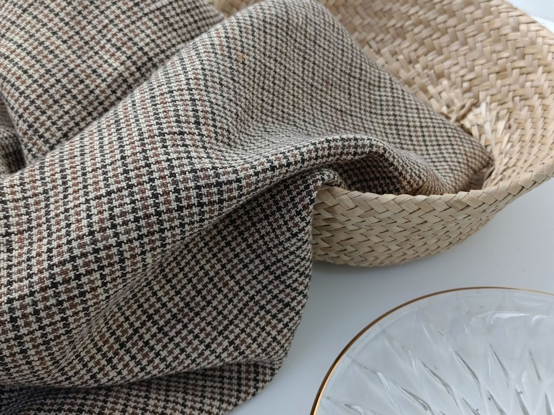 100% Linen Houndstooth StarCheck Fabric: Heavyweight Elegance - The Linen Lab - Brown