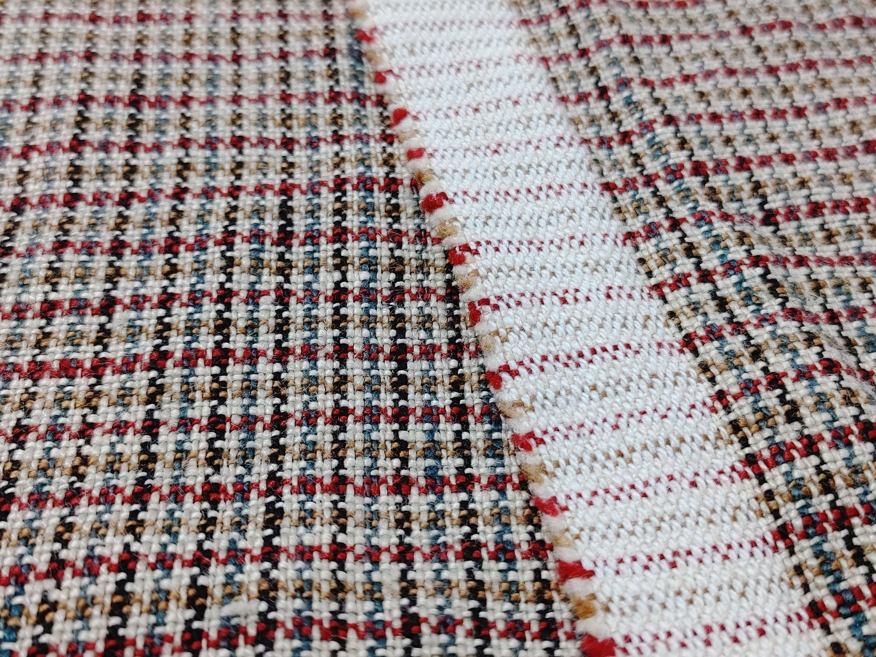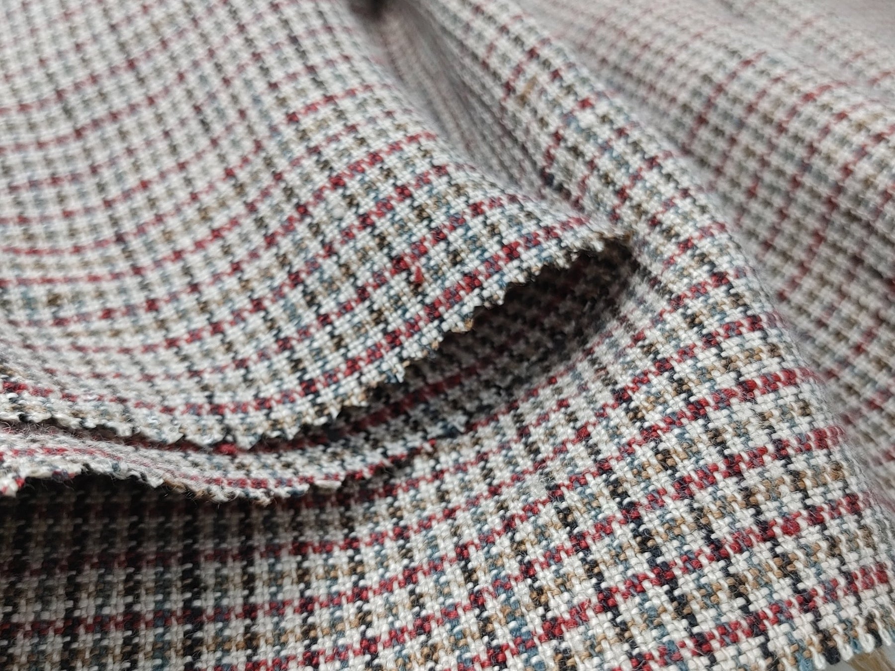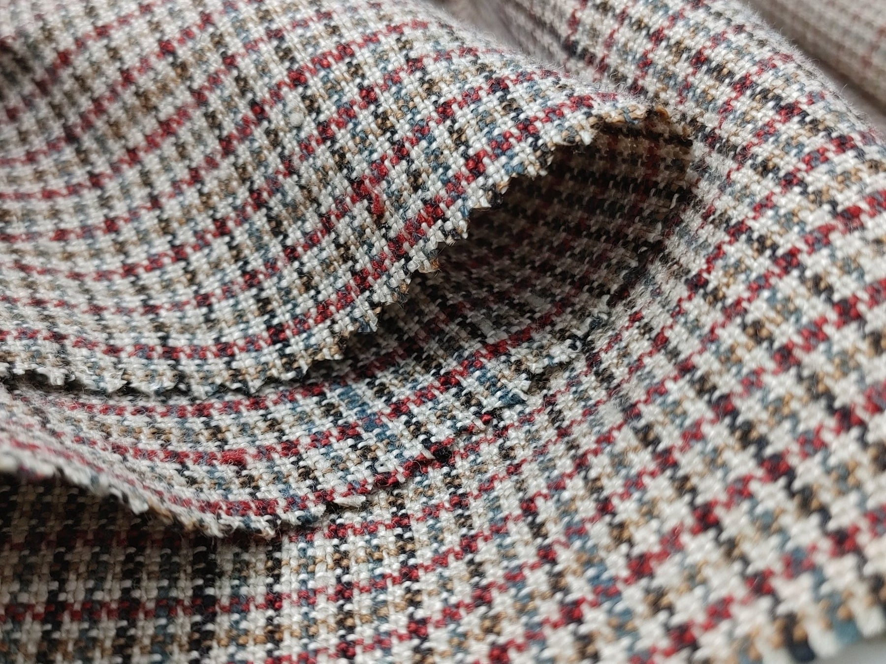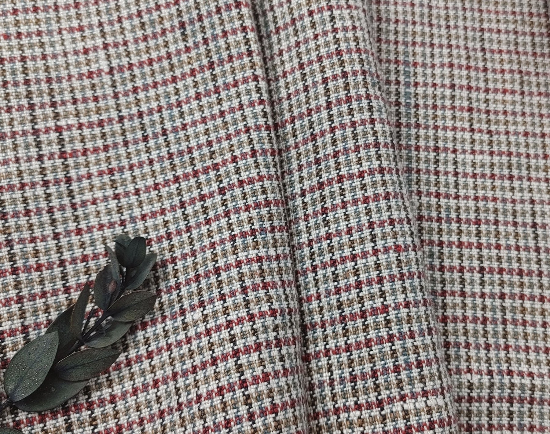 This fabric is exclusively crafted from 100% linen, embodying the essence of elegance with its distinctive houndstooth star-check pattern. The heavy weight of 278 g/sqm (8.82 oz per square yard) ensures a substantial and luxurious feel, making it an excellent choice for sophisticated projects.