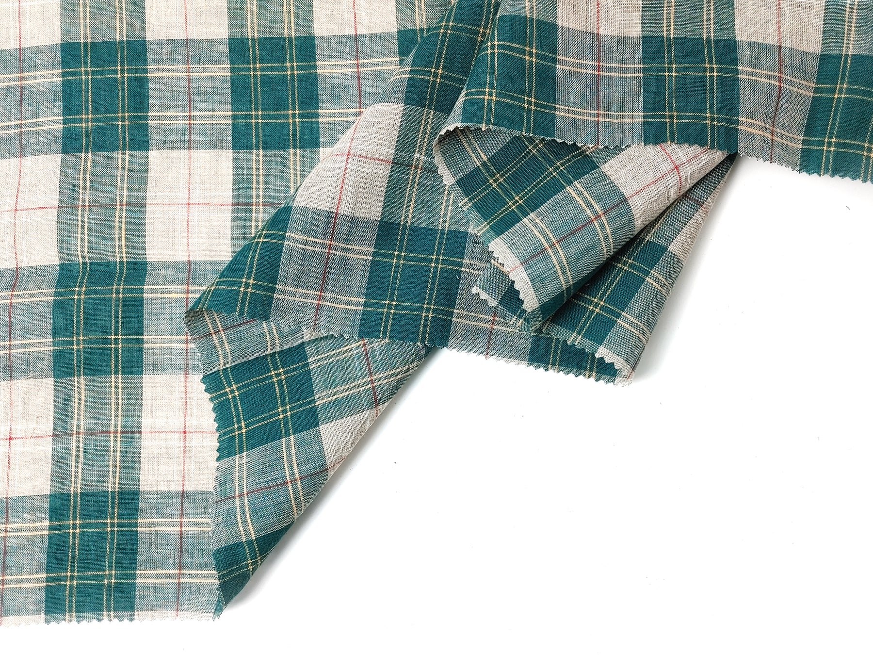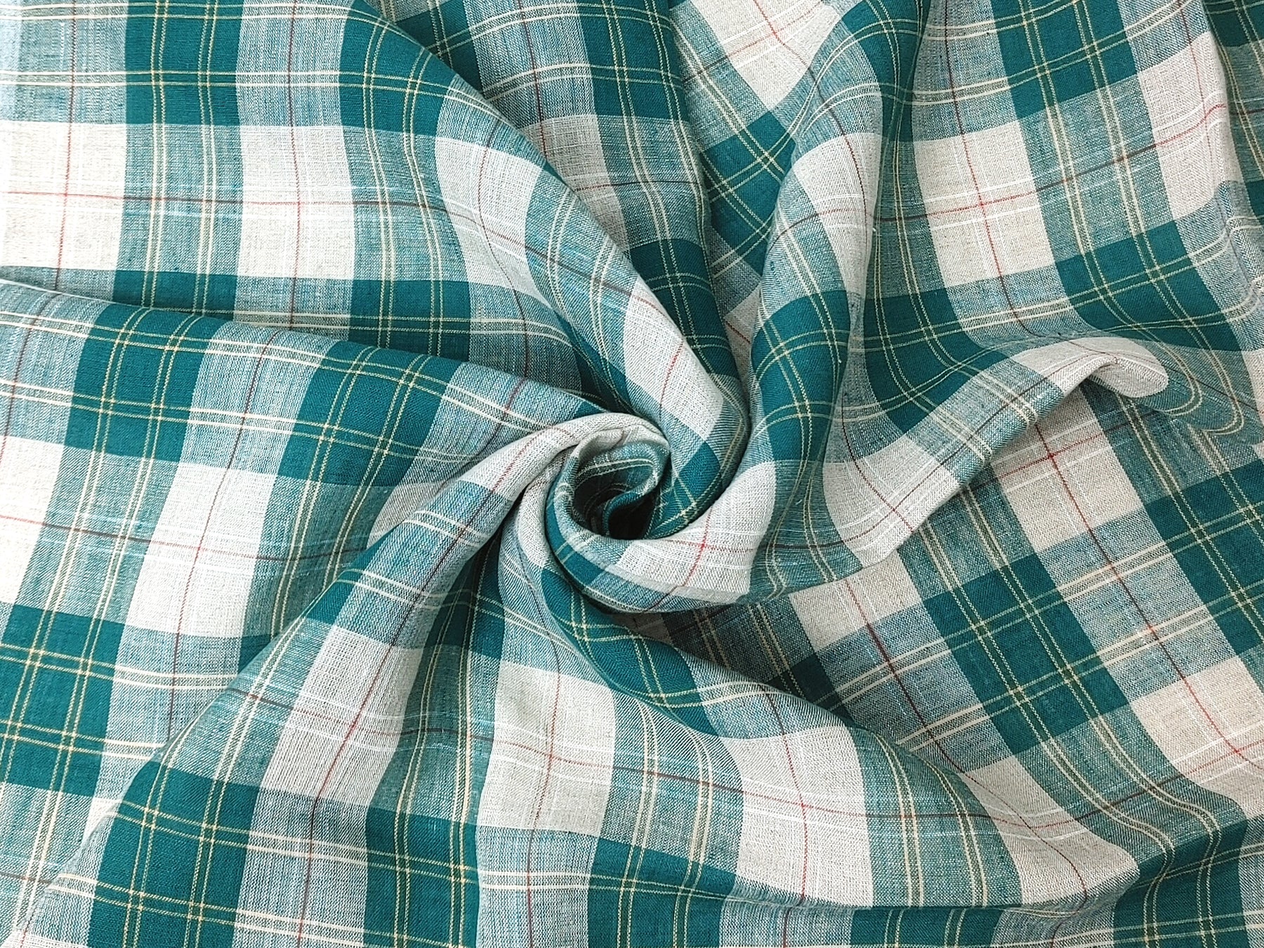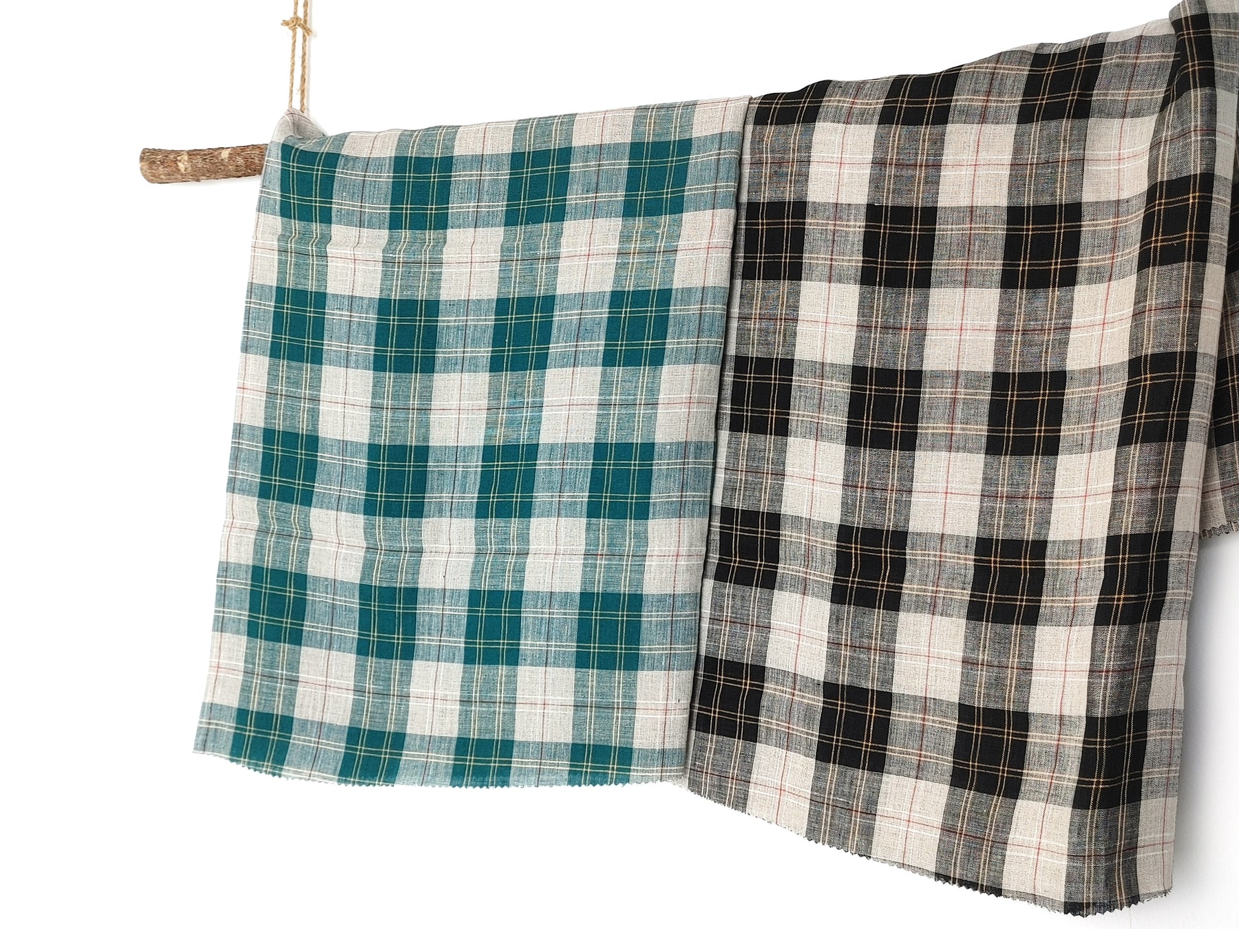 This 100% linen fabric strikes the perfect balance between classic charm and modern practicality. Lightweight and breathable, it features a stylish plaid pattern with a harmonious blend of green, black, natural, and pink. Ideal for creating airy garments or elegant home decor, this fabric adds both vibrancy and sophistication to your projects.