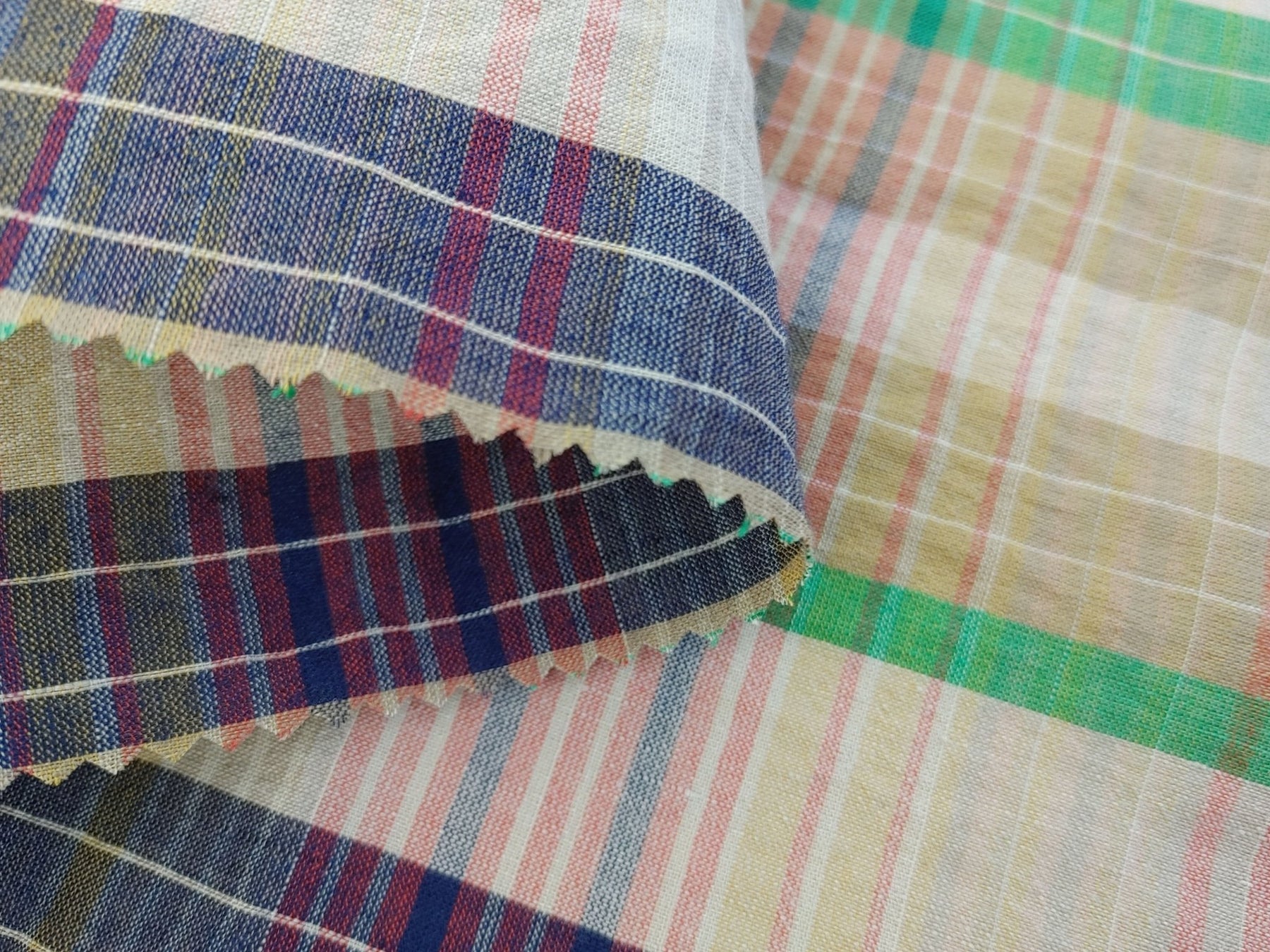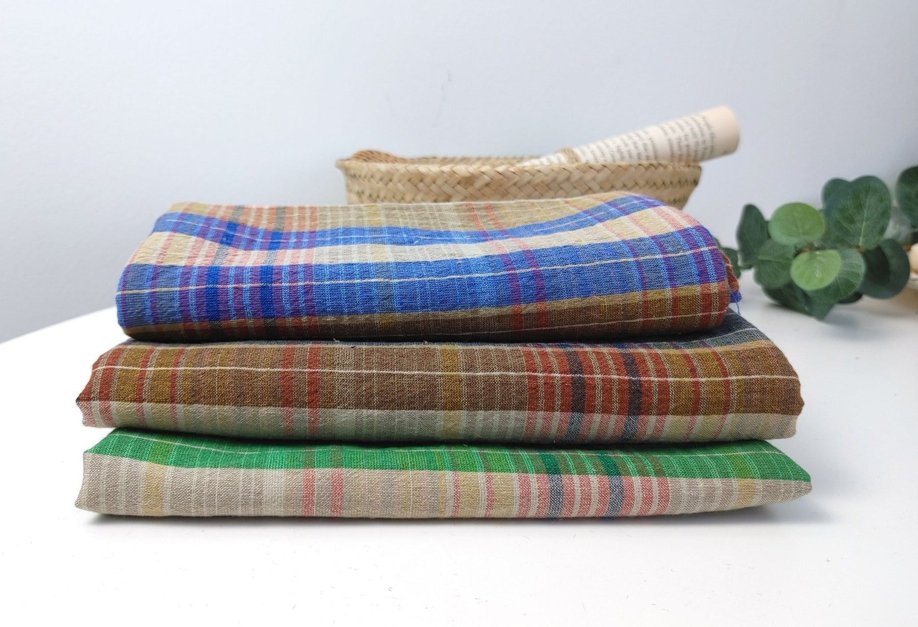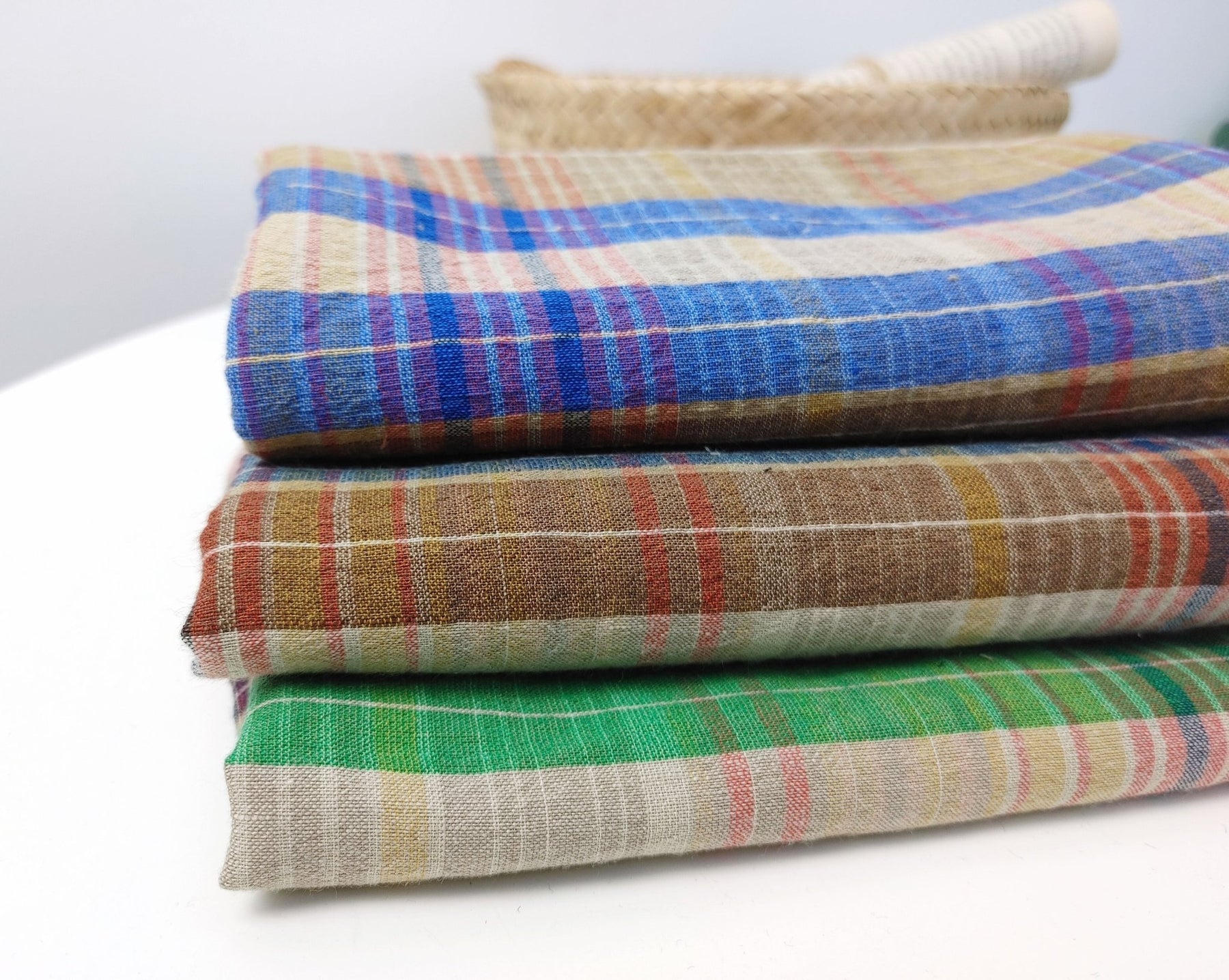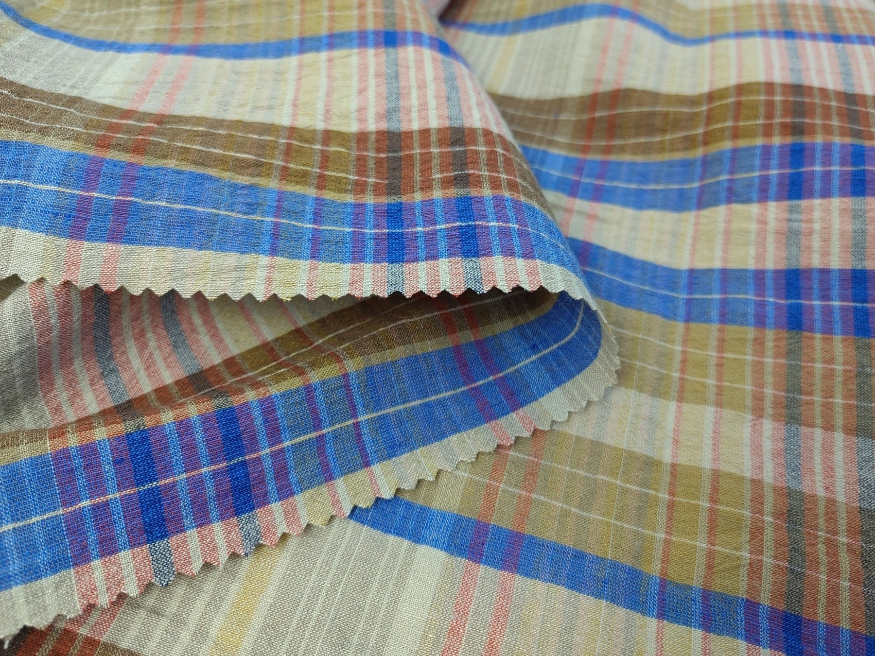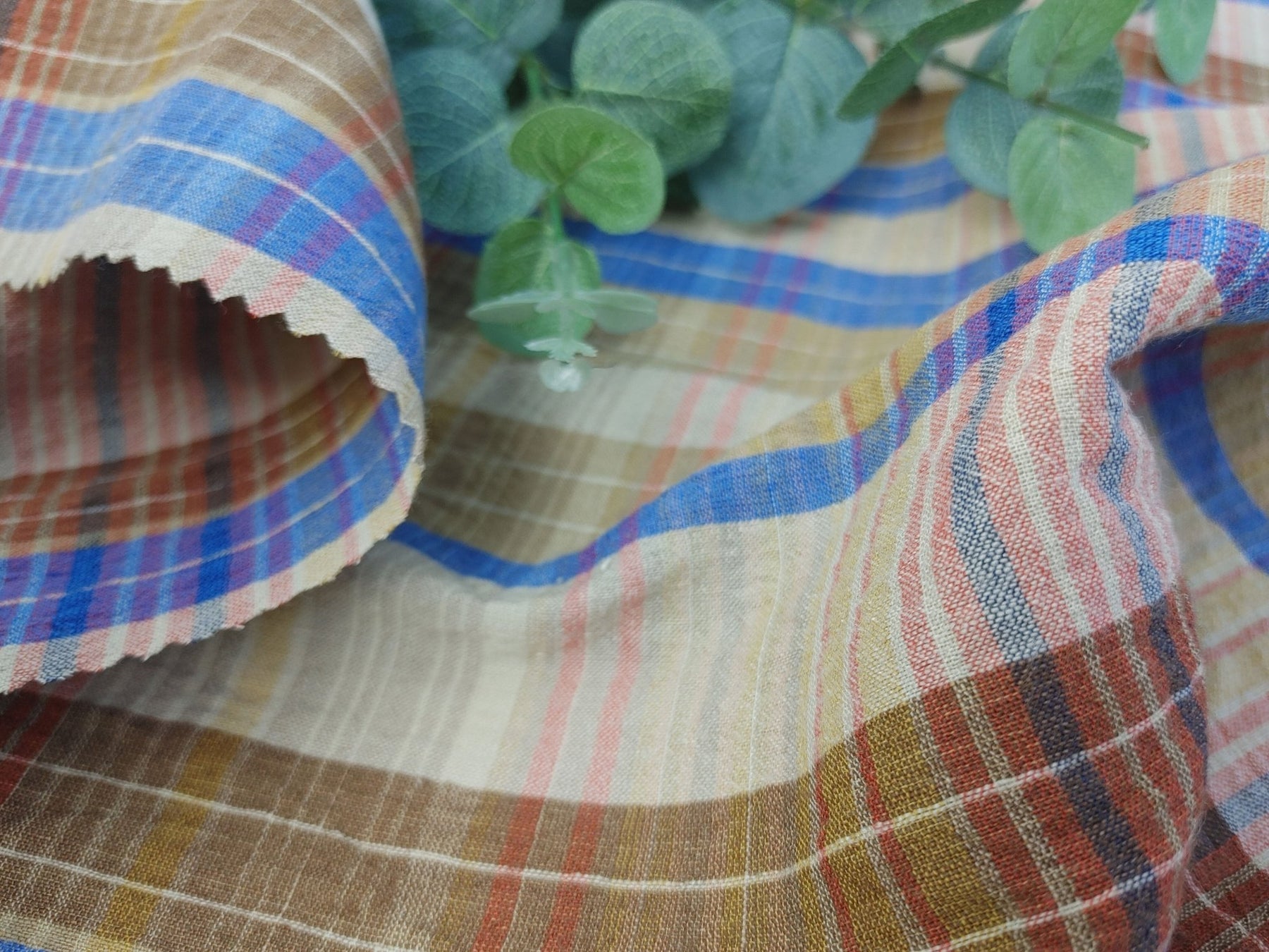 Introducing our "Linen Cotton PU Plaid Fabric with Subtle Wrinkle Charm." This fabric combines the natural feel of 35% linen and 64% cotton with a touch of 1% polyurethane for a gentle wrinkle effect. Weighing in at 110 g/sqm (3.25 oz per square yard) and measuring 56 inches (142 cm) wide, it's a lightweight and versatile choice. The pre-washed fabric offers a soft handfeel, and with a slight elasticity, it's perfect for creating comfortable, everyday pieces with style.