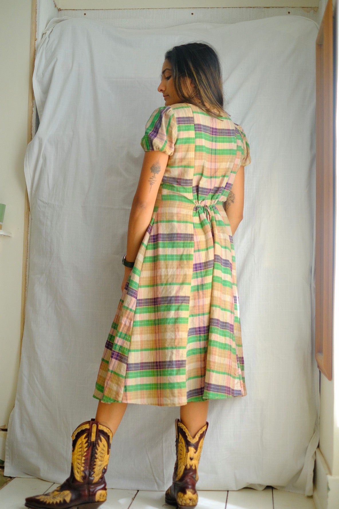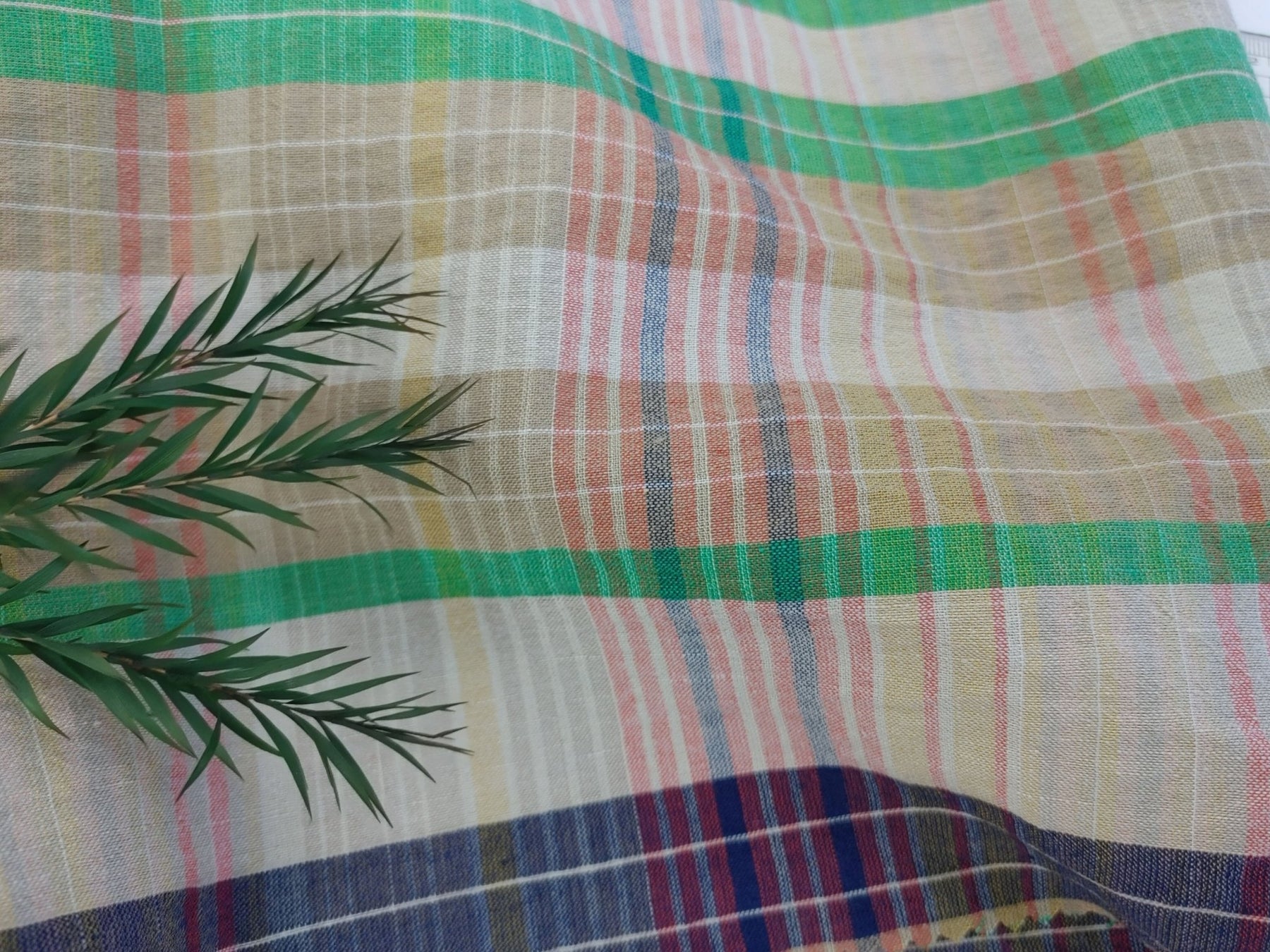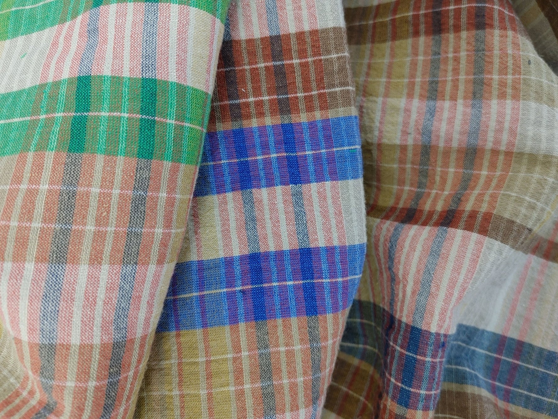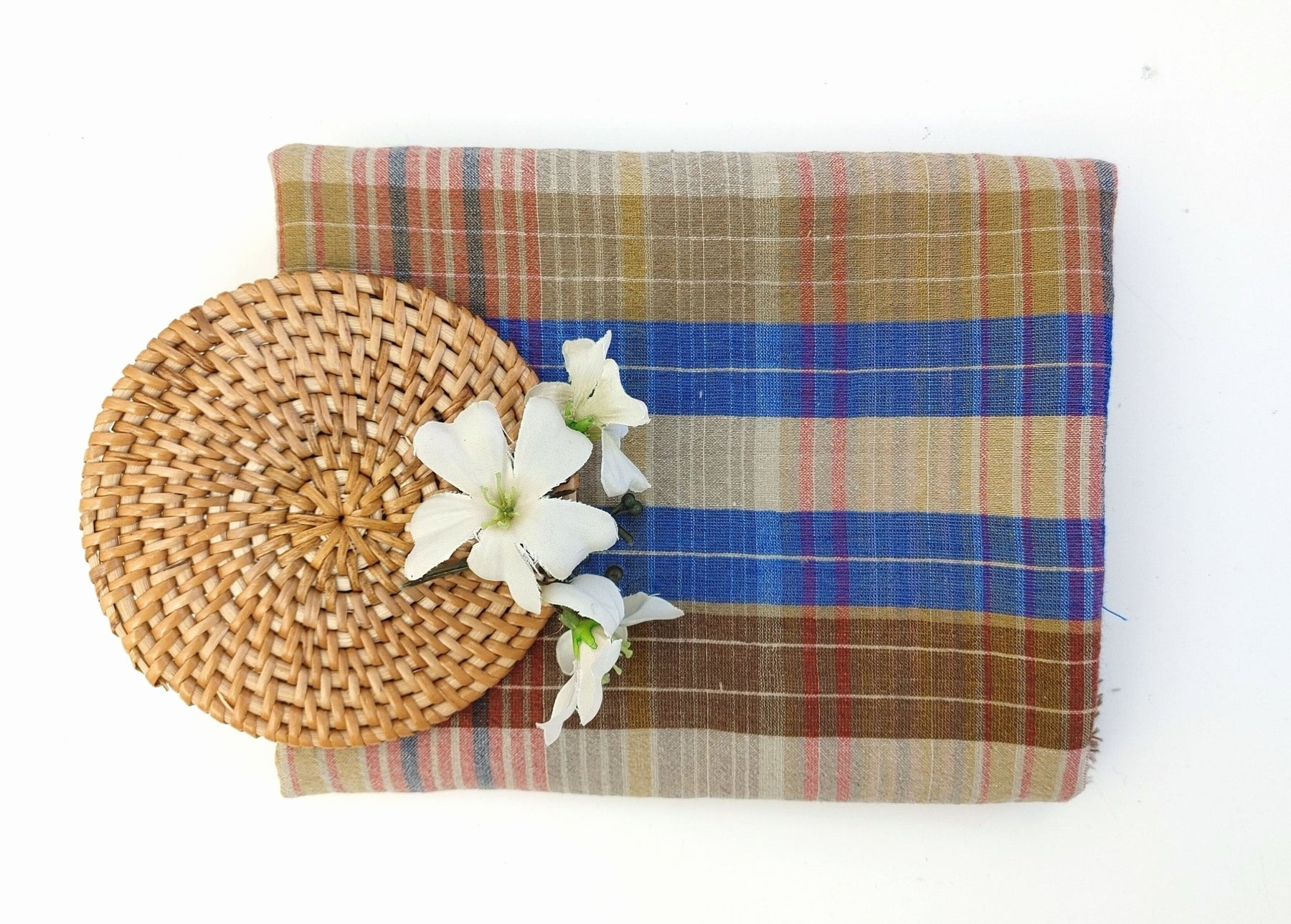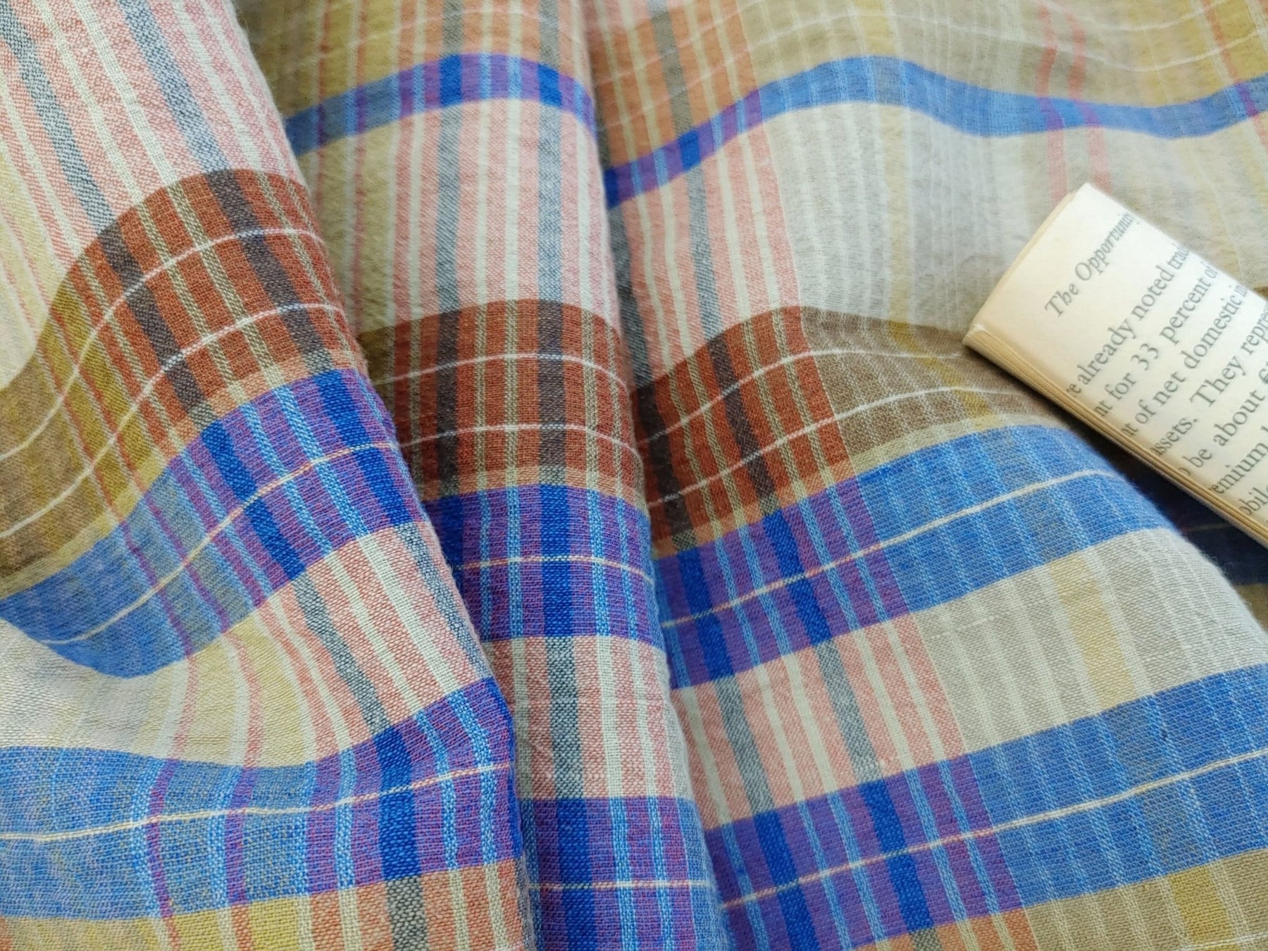 Introducing our "Linen Cotton PU Plaid Fabric with Subtle Wrinkle Charm." This fabric combines the natural feel of 35% linen and 64% cotton with a touch of 1% polyurethane for a gentle wrinkle effect. Weighing in at 110 g/sqm (3.25 oz per square yard) and measuring 56 inches (142 cm) wide, it's a lightweight and versatile choice. The pre-washed fabric offers a soft handfeel, and with a slight elasticity, it's perfect for creating comfortable, everyday pieces with style.