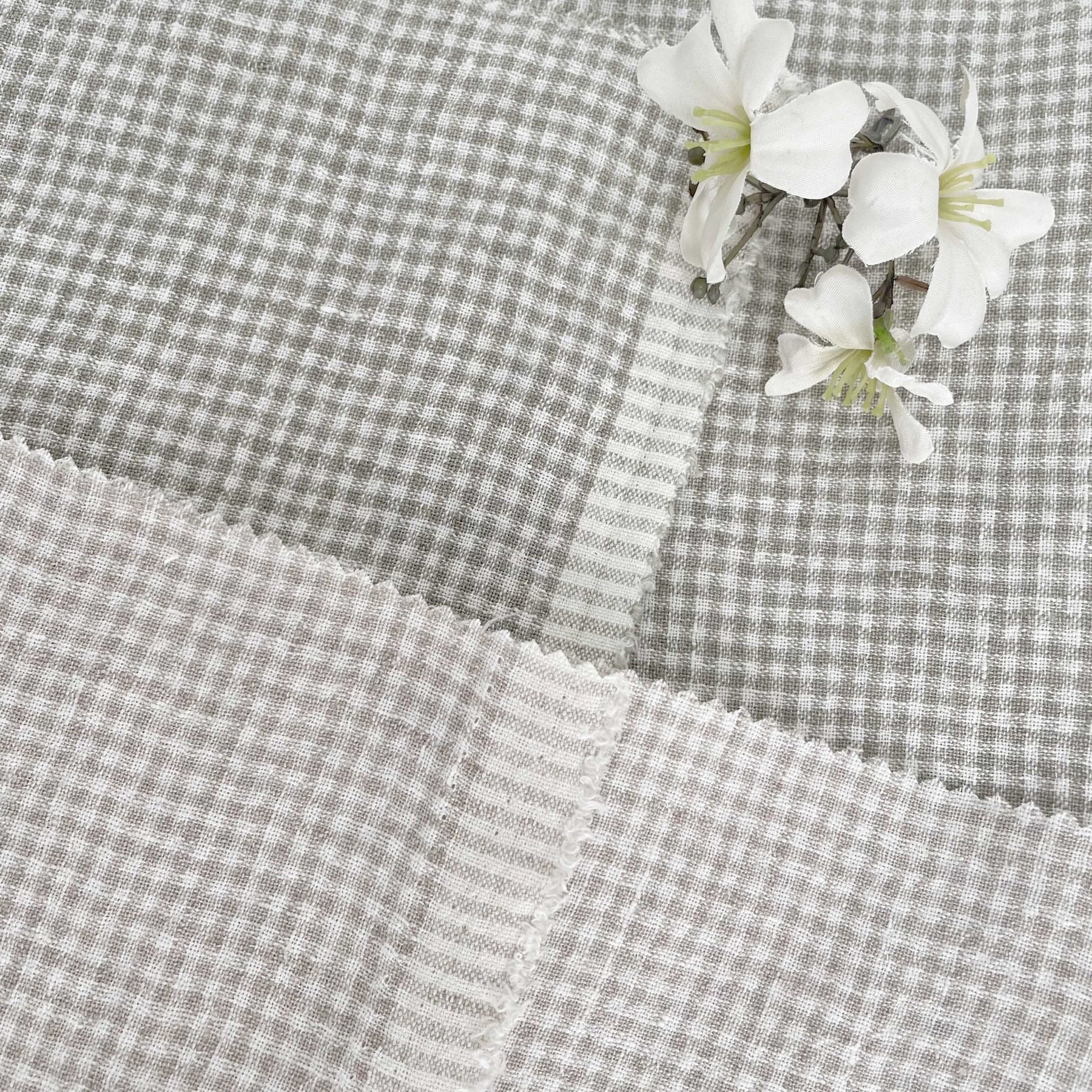 This fabric is a top-notch development, known for its slightly bulky and soft texture with a subtle seersucker effect. The unique composition includes 94% linen and 6% nylon, creating a crisp handfeel that surpasses that of 100% linen fabric. The surface has a distinctive, slightly bulky appearance, enhancing the overall design. The handfeel is pre-washed, providing a soft touch with a crisp feeling. This fabric has no elasticity, making it a fantastic choice for those seeking a combination of comfort and sophistication.