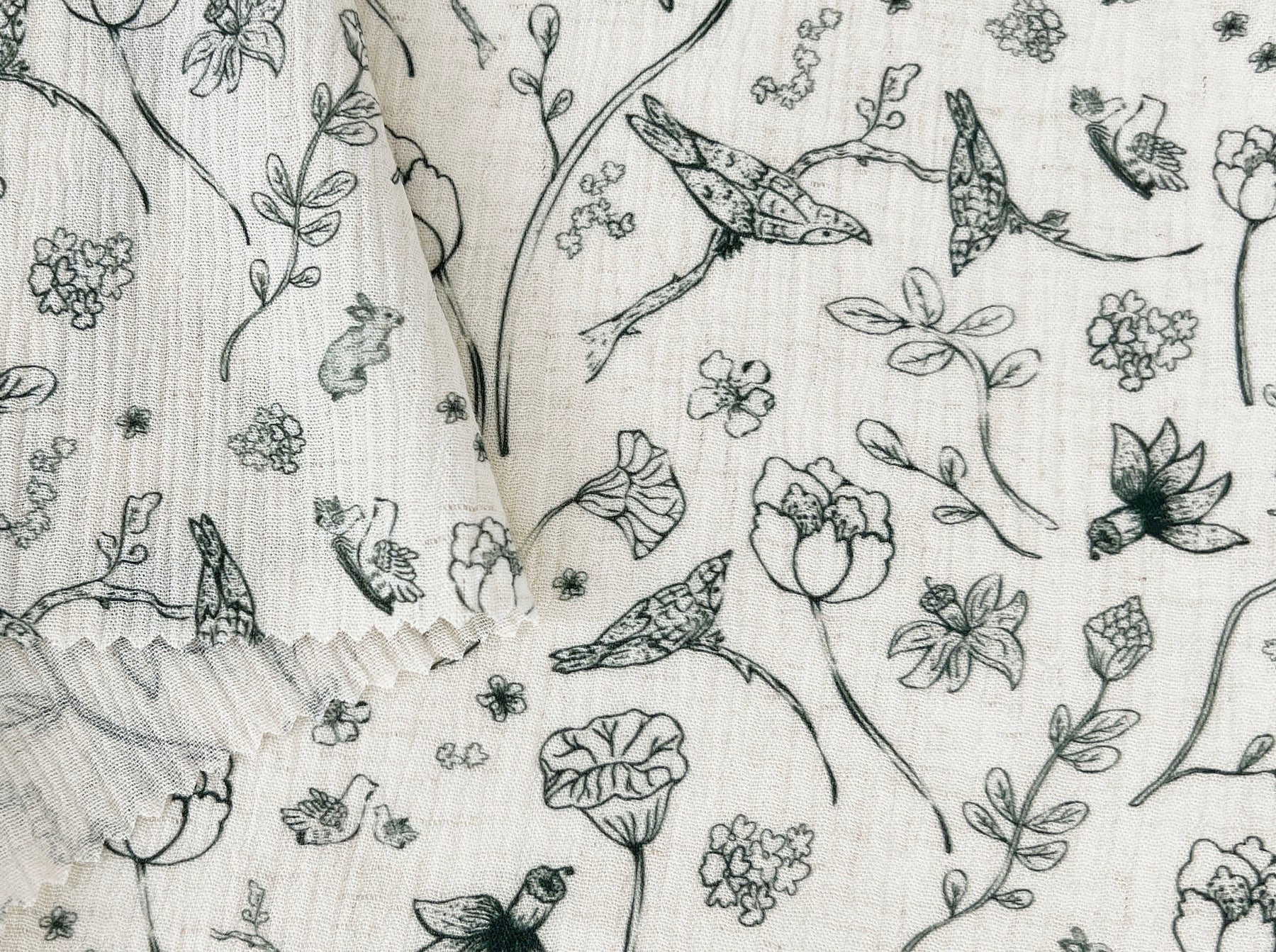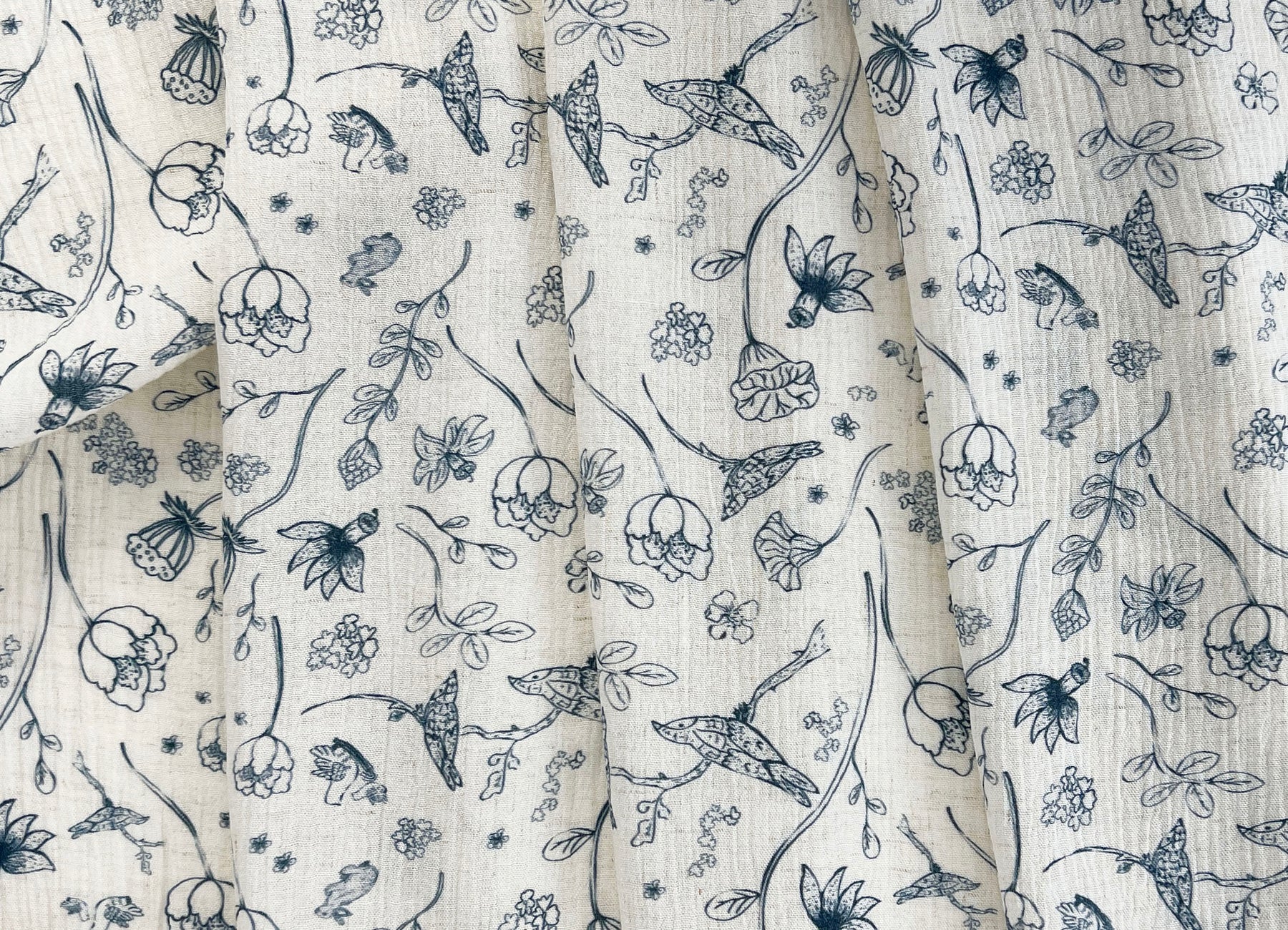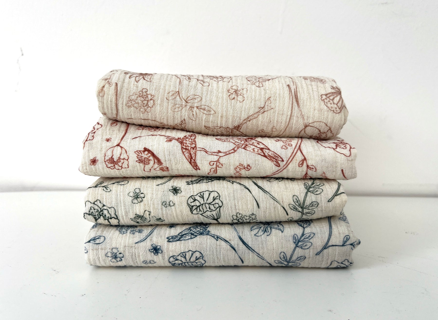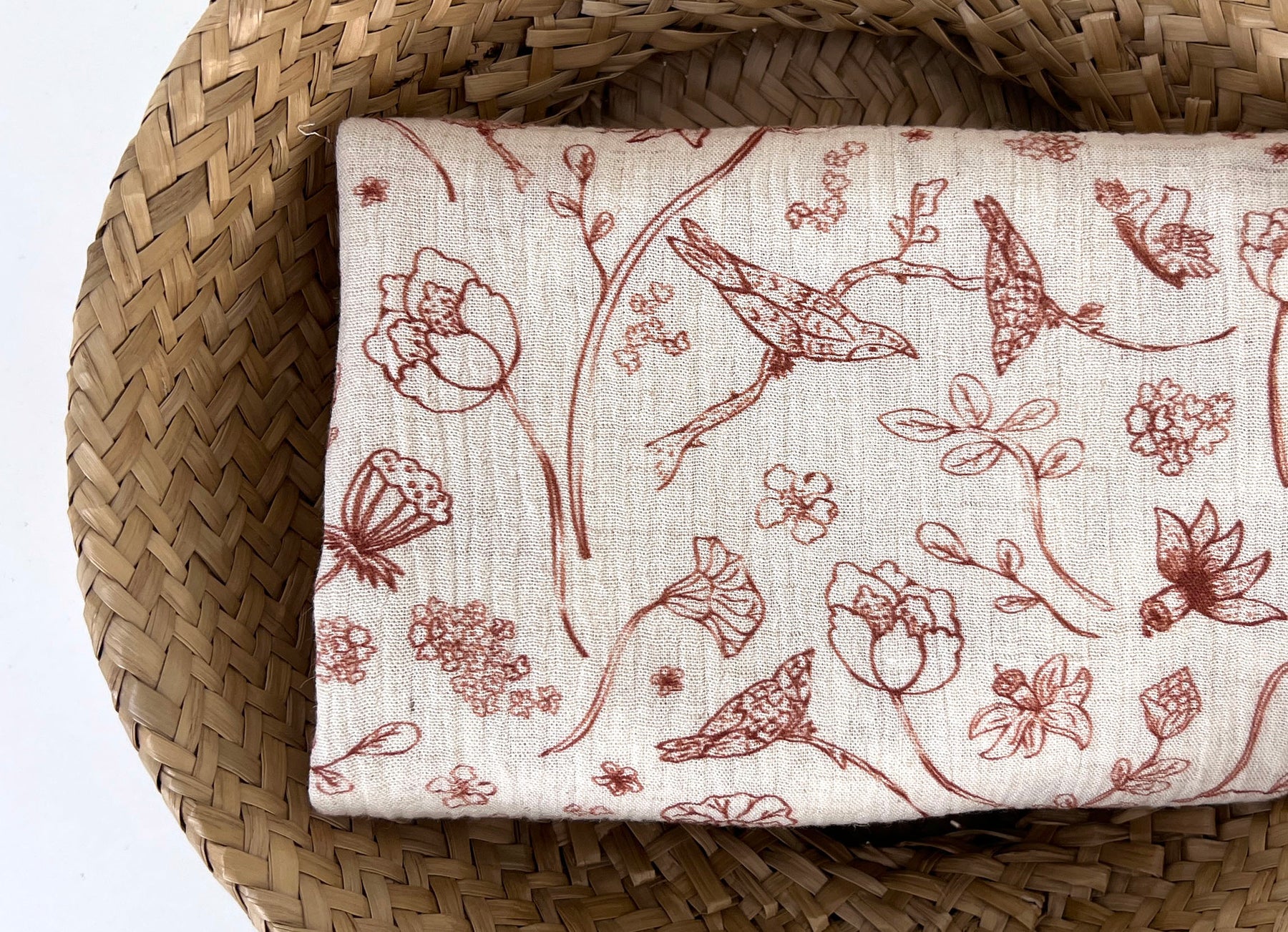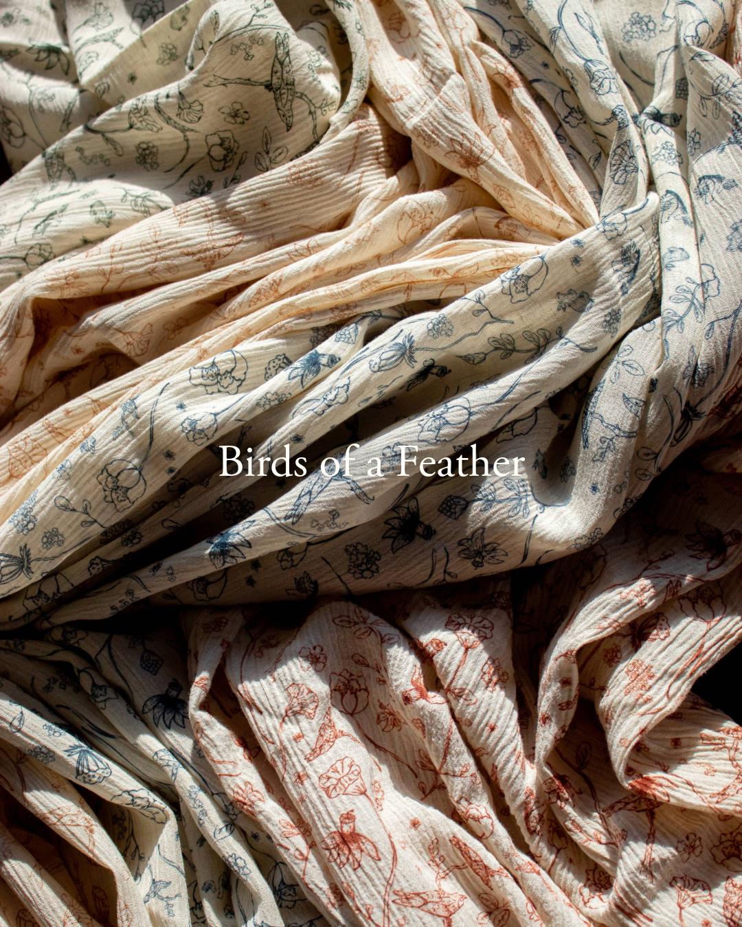 Inspired by cherished memories of the designer’s grandmother’s home, Birds of a Feather captures the warmth and charm of vintage wallpaper, artwork, and treasured trinkets. This whimsical print features delicate birds, flowers, and foliage, bringing a touch of nostalgia and nature’s beauty to your projects.