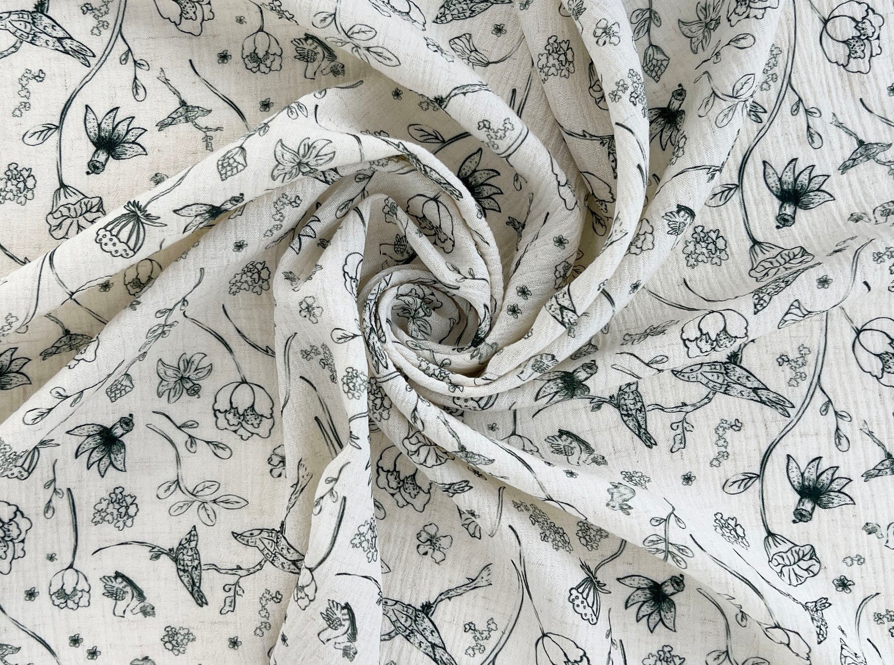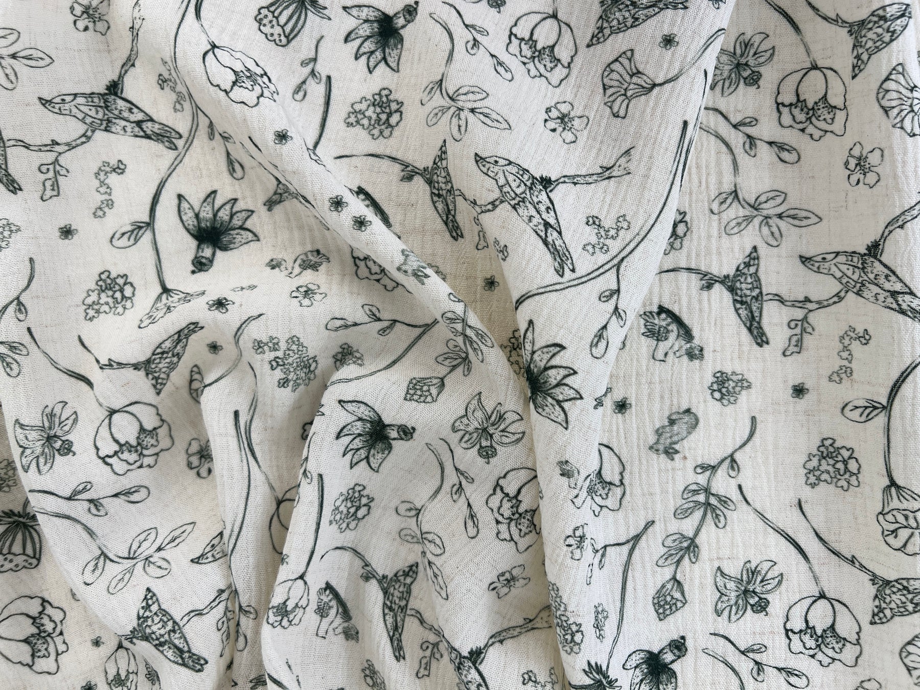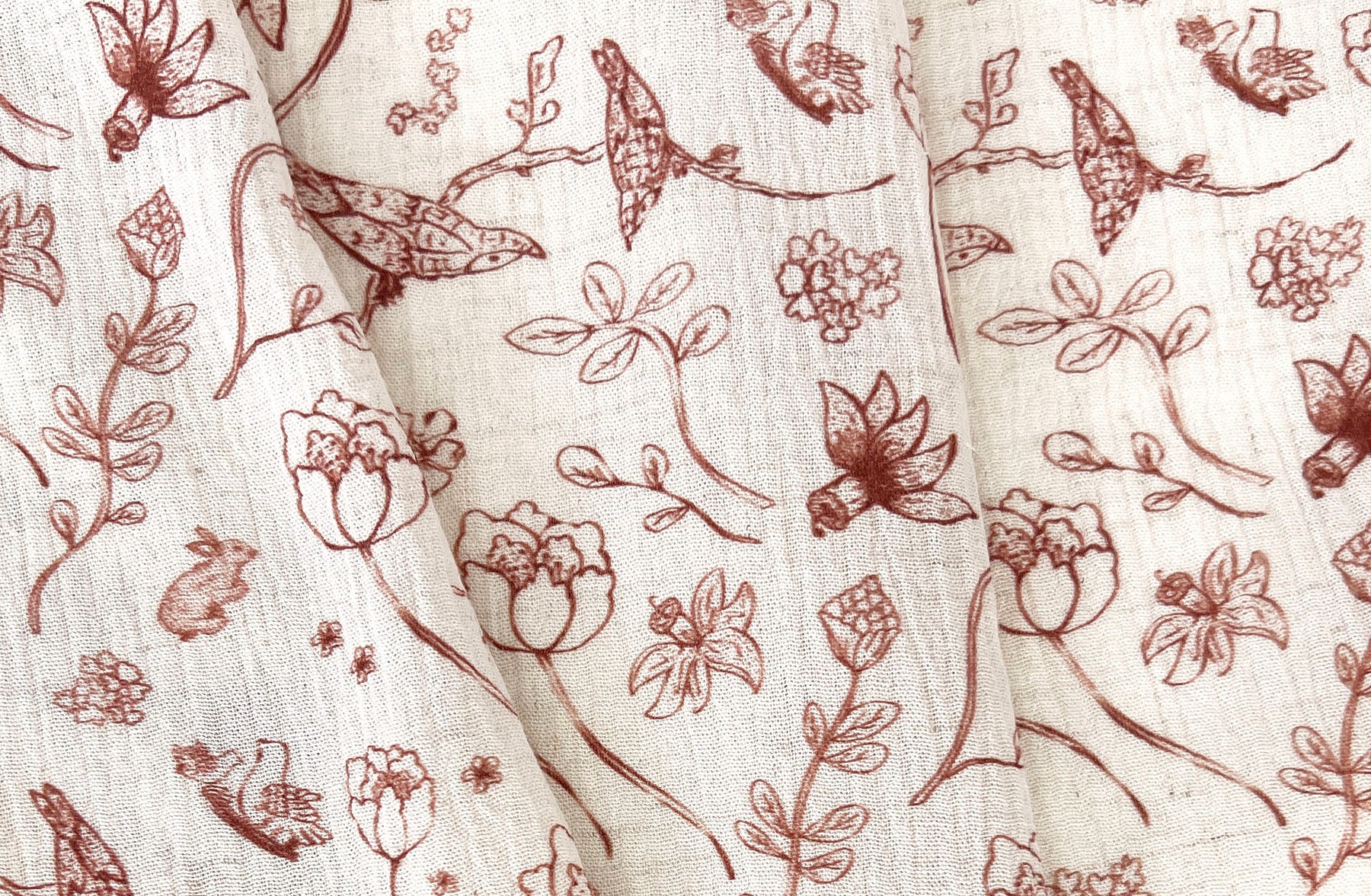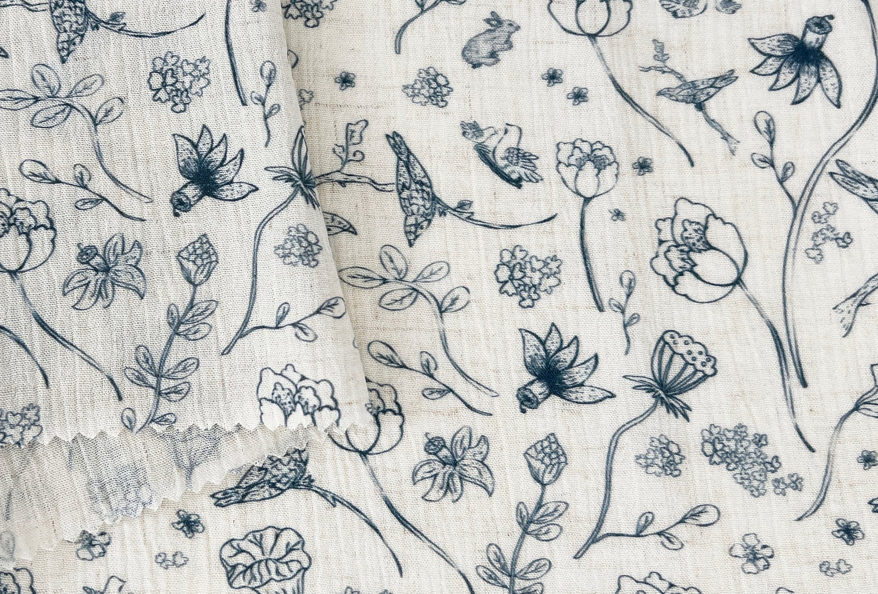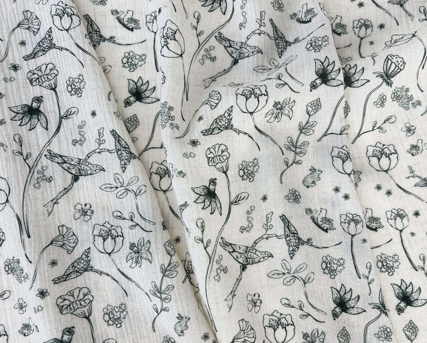 Inspired by cherished memories of the designer’s grandmother’s home, Birds of a Feather captures the warmth and charm of vintage wallpaper, artwork, and treasured trinkets. This whimsical print features delicate birds, flowers, and foliage, bringing a touch of nostalgia and nature’s beauty to your projects.