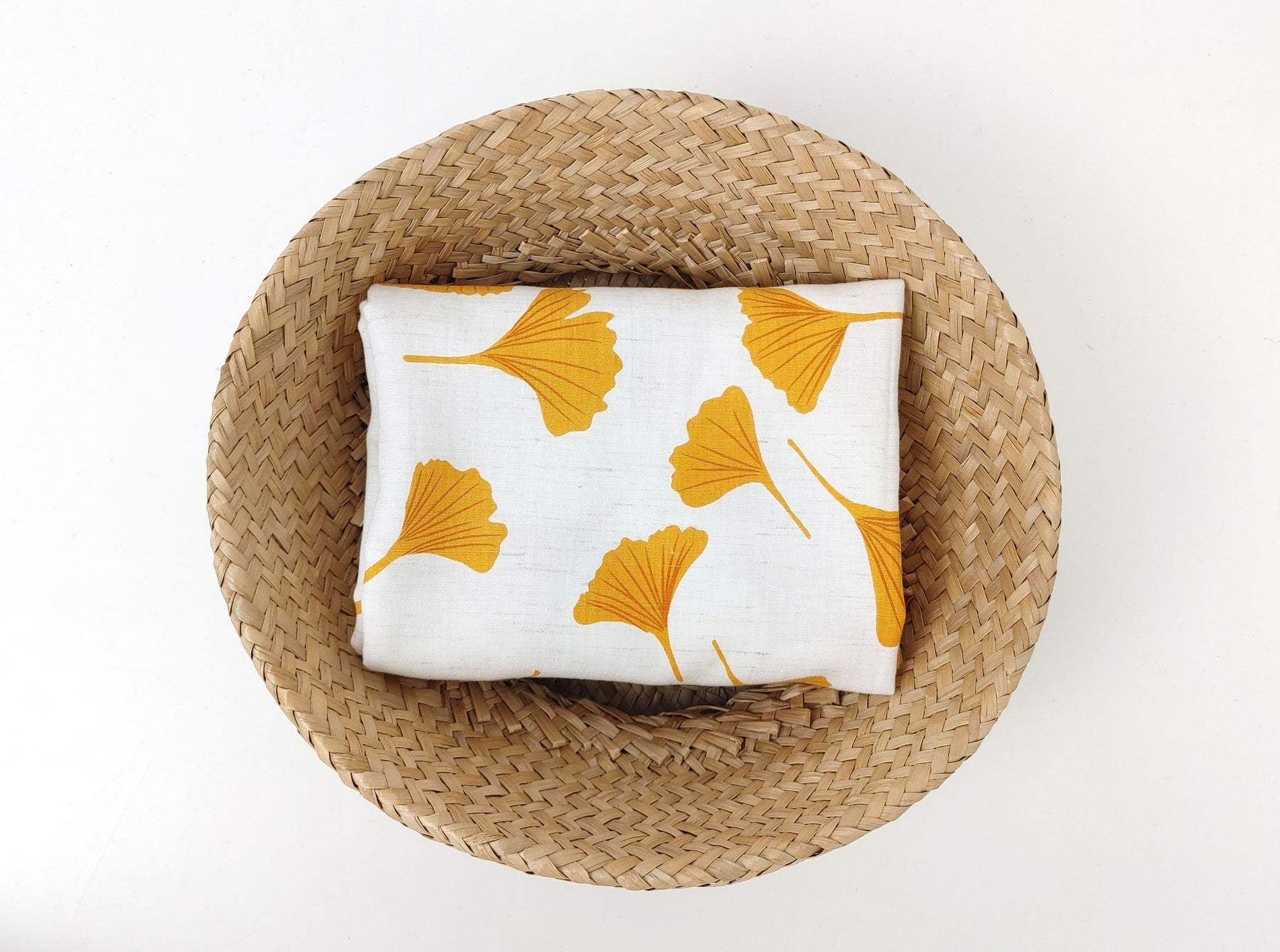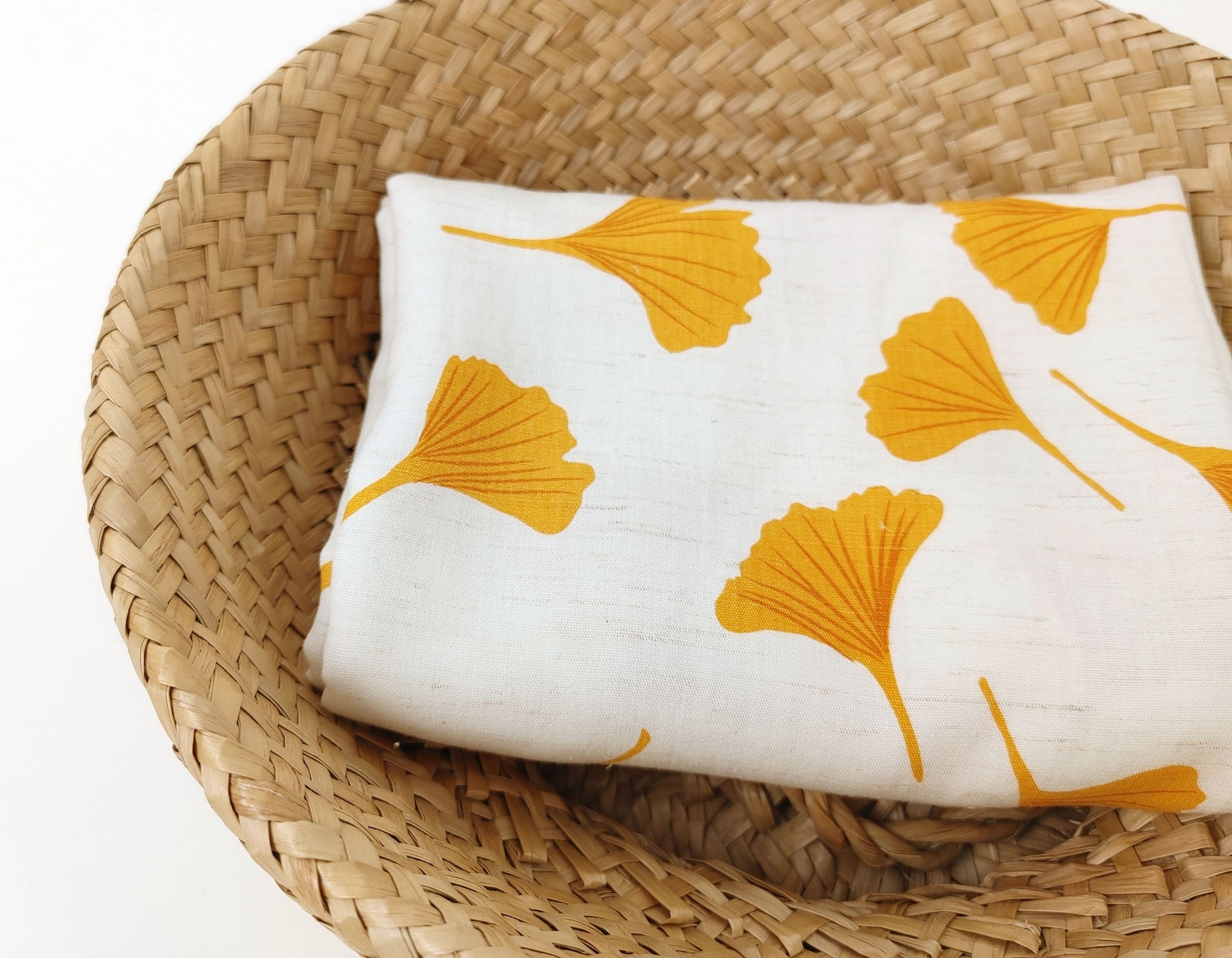 The Morning Calm Ginkgo pattern was designed exclusively for The Linen Lab by Anna M. Jo, a traditional folk artist residing in Seoul.