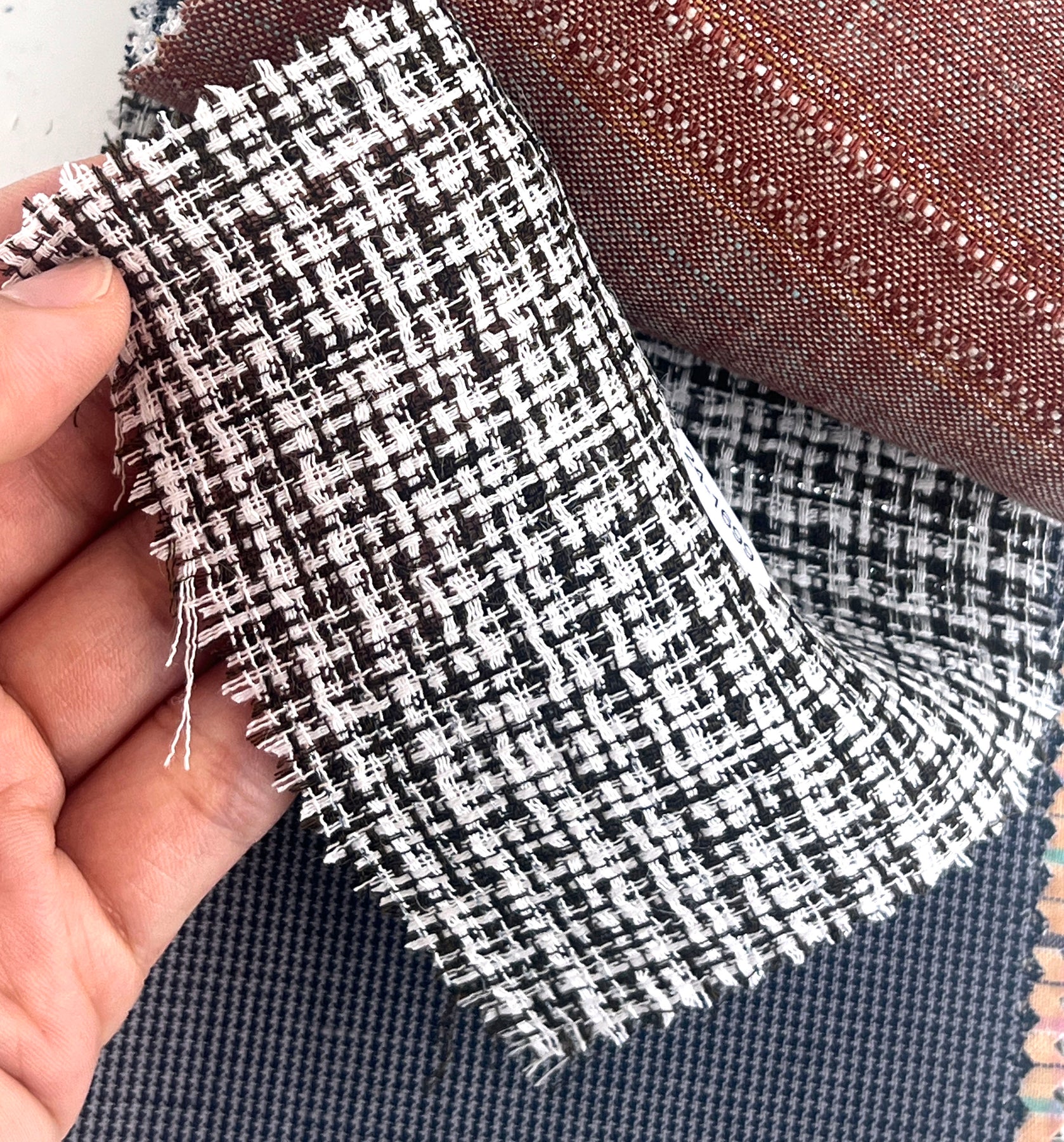 The B3 Collection offers a diverse mix of linen blend fabrics along with 100% linen options. These fabrics combine linen with cotton, Tencel, nylon, wool, ramie, polyester, and more—available in prints, stripes, checks, and plaids. Fabric widths range from 42 to 46 inches.