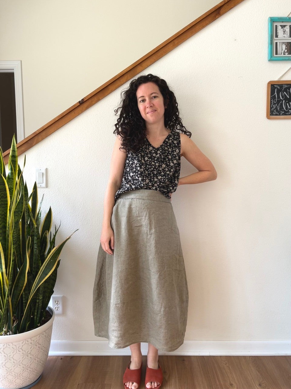 Instagram user @bethanylynne_makes made a size 10 Lotus in our lightweight linen 7747 dark beige.