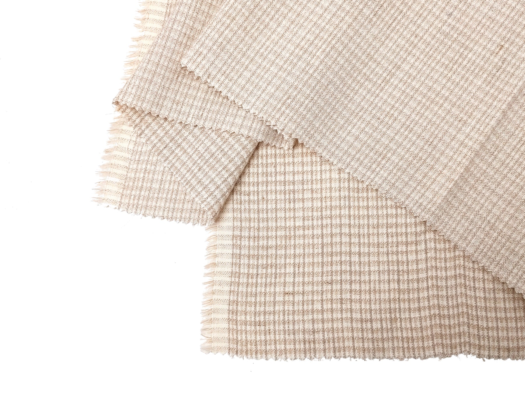 This beige linen-cotton-nylon-spandex fabric features a unique dobby weave, adding texture and character to any project. The fabric is soft and pre-washed for a comfortable handfeel, while its elastic quality offers great stretch and flexibility. With a light to medium weight, it’s perfect for a variety of creative endeavors, from clothing to home decor. The durable, versatile blend ensures both style and comfort in your designs, making it an ideal choice for fashion-forward projects.
