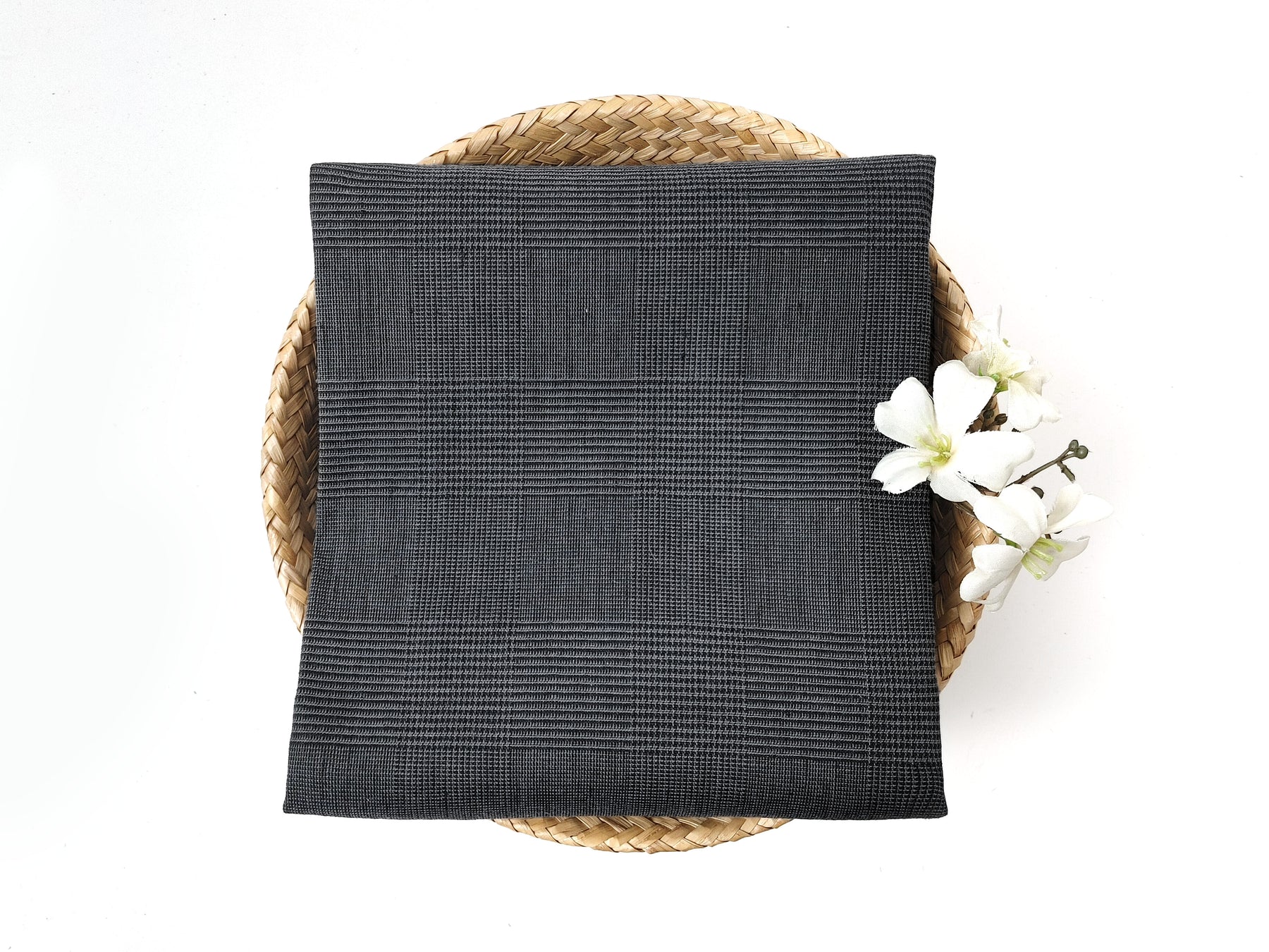 This grey glen plaid fabric is a sophisticated blend of 57% linen, 41% cotton, and 2% spandex, offering both style and comfort with its subtle stretch effect. The fabric's soft, pre-washed finish enhances its natural texture, making it ideal for garments that require a comfortable fit while maintaining a refined look. The addition of spandex provides gentle elasticity, perfect for structured yet flexible designs. With its timeless glen plaid pattern and breathable composition, this medium-weight fabric is a versatile choice for fashion or home décor projects, combining durability with a modern edge.