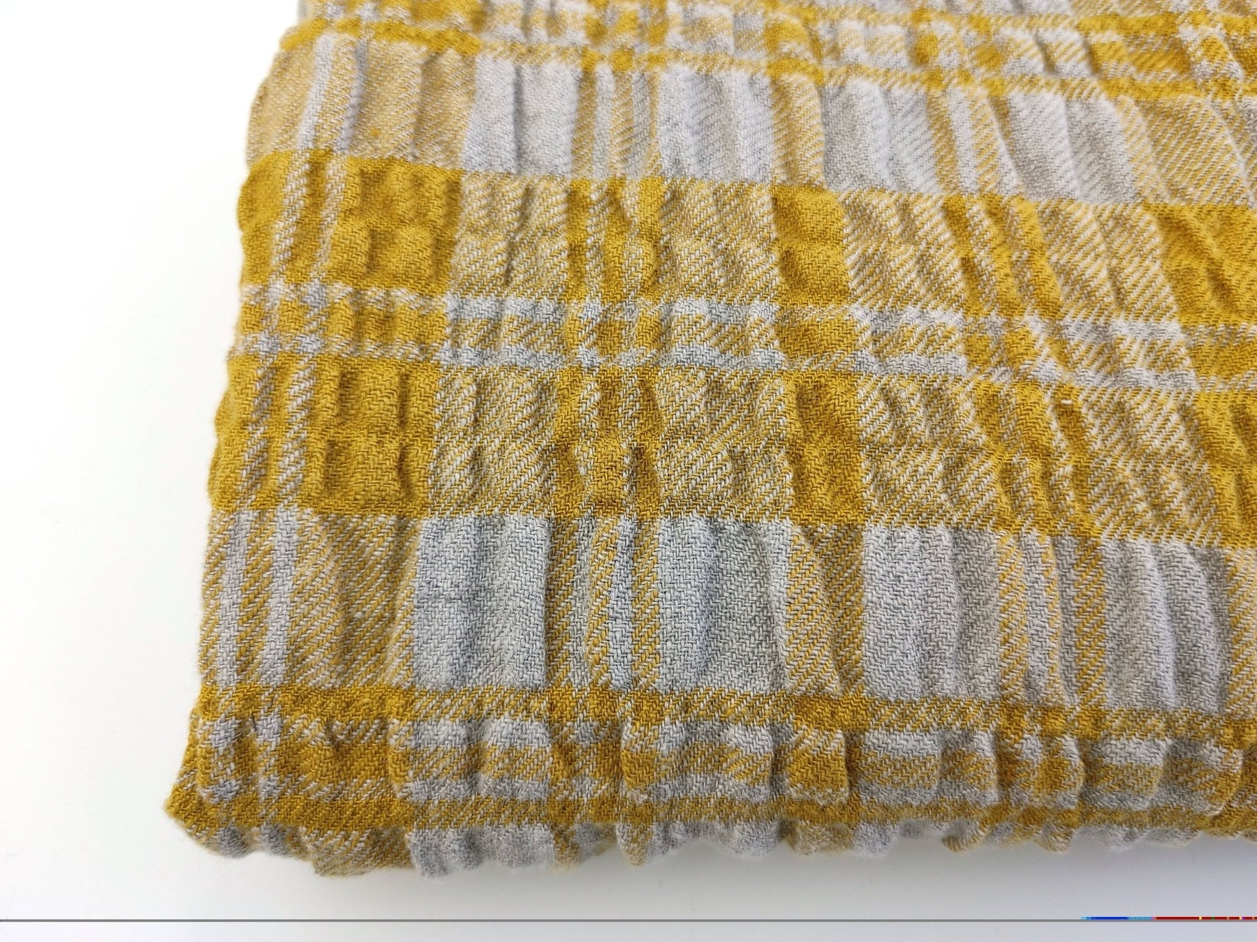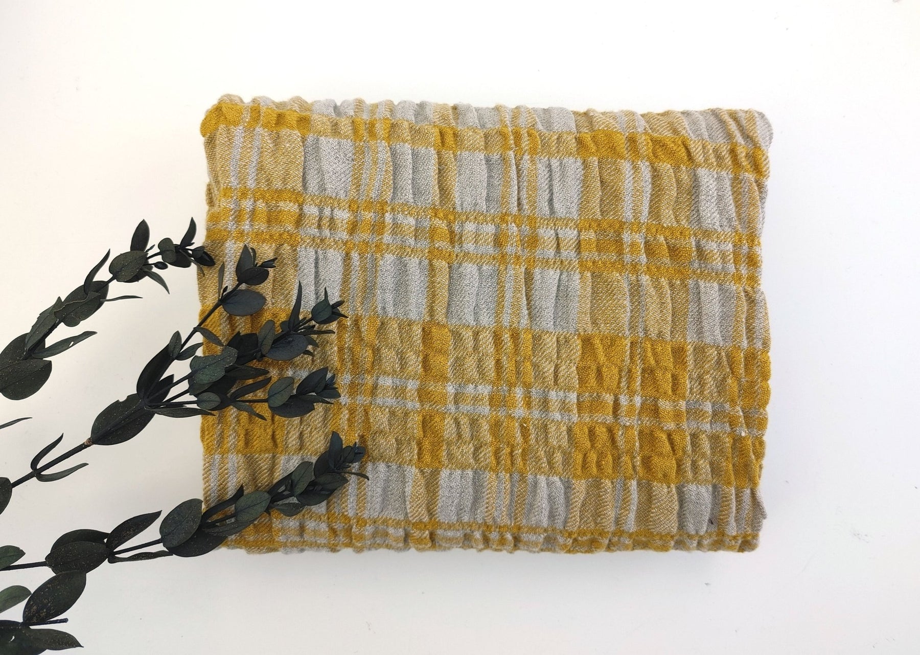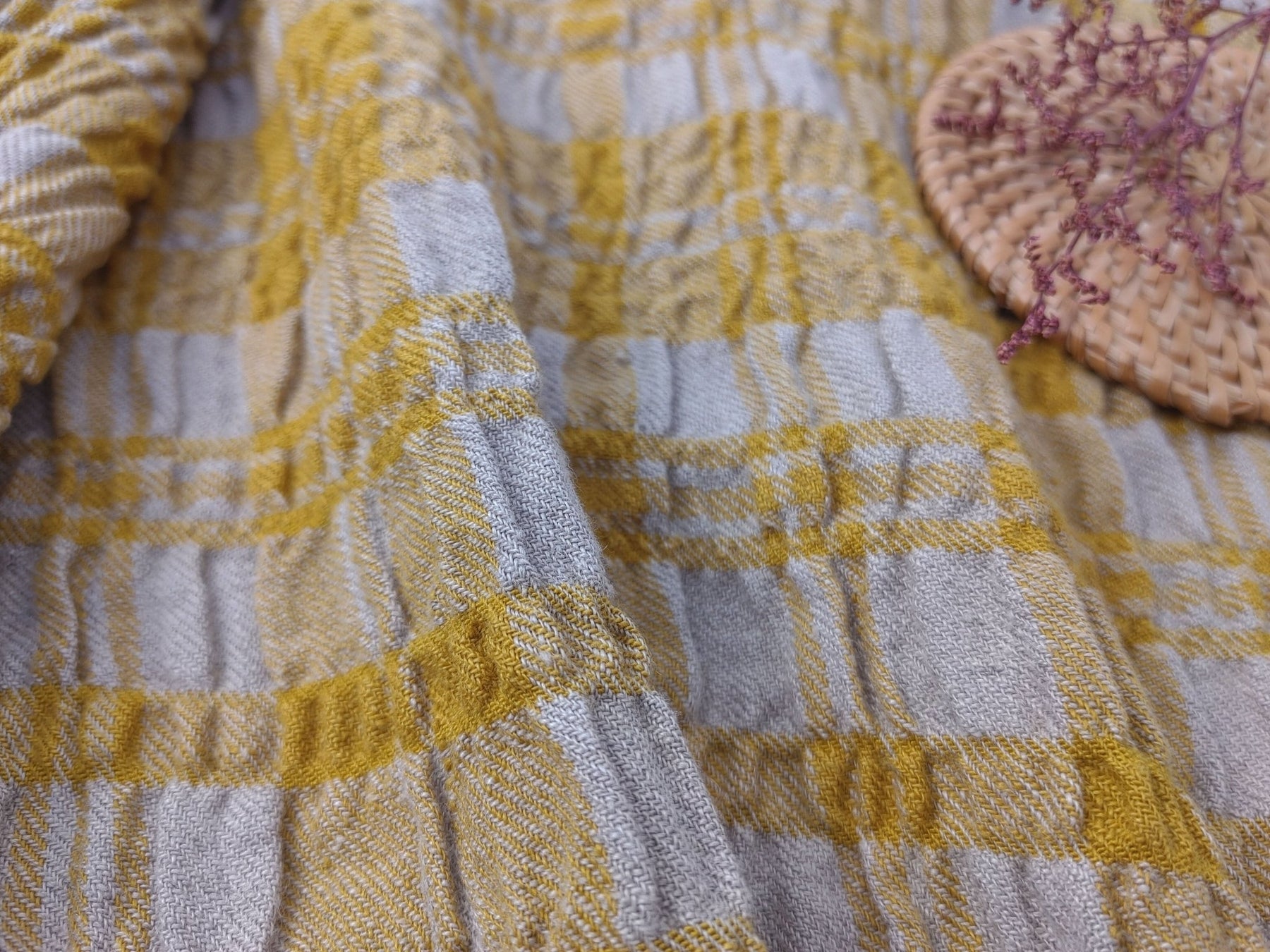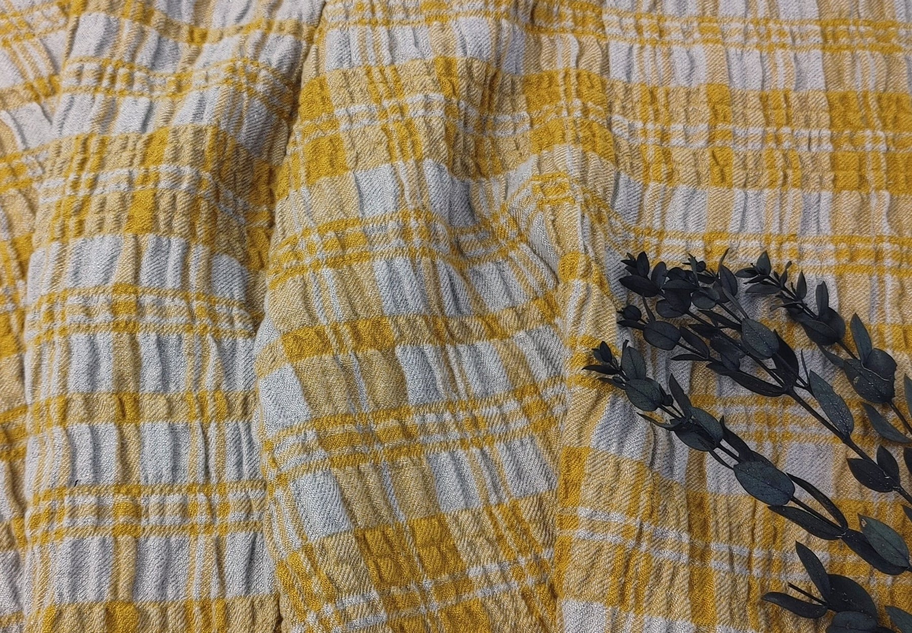 In a departure from conventional linen fabrics, this blend surprises with its elasticity, adding flexibility to your creative projects. Immerse yourself in the distinct and effortless elegance of this Linen Blend Plaid, where the interplay of fibers and the dramatic wrinkle effect on the weft side create a visually appealing and textured fabric. Ideal for crafting sophisticated garments and home decor items, this fabric beckons you to explore the art of blending comfort with distinctive style.