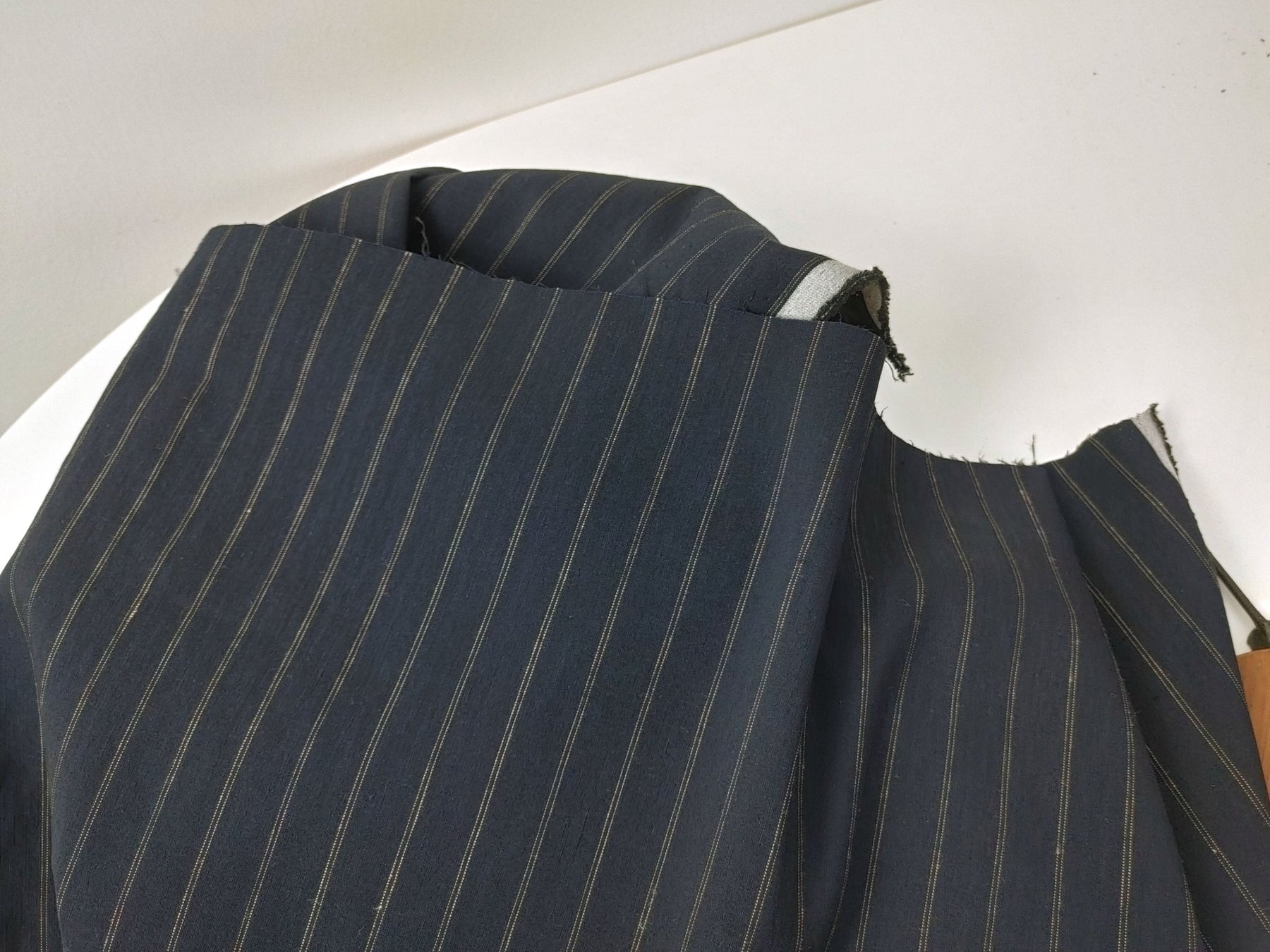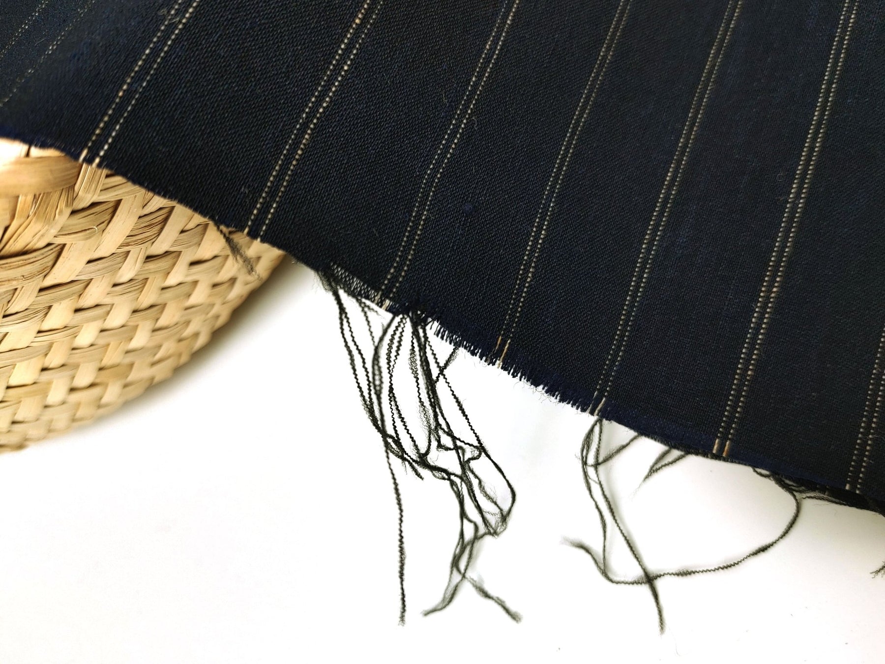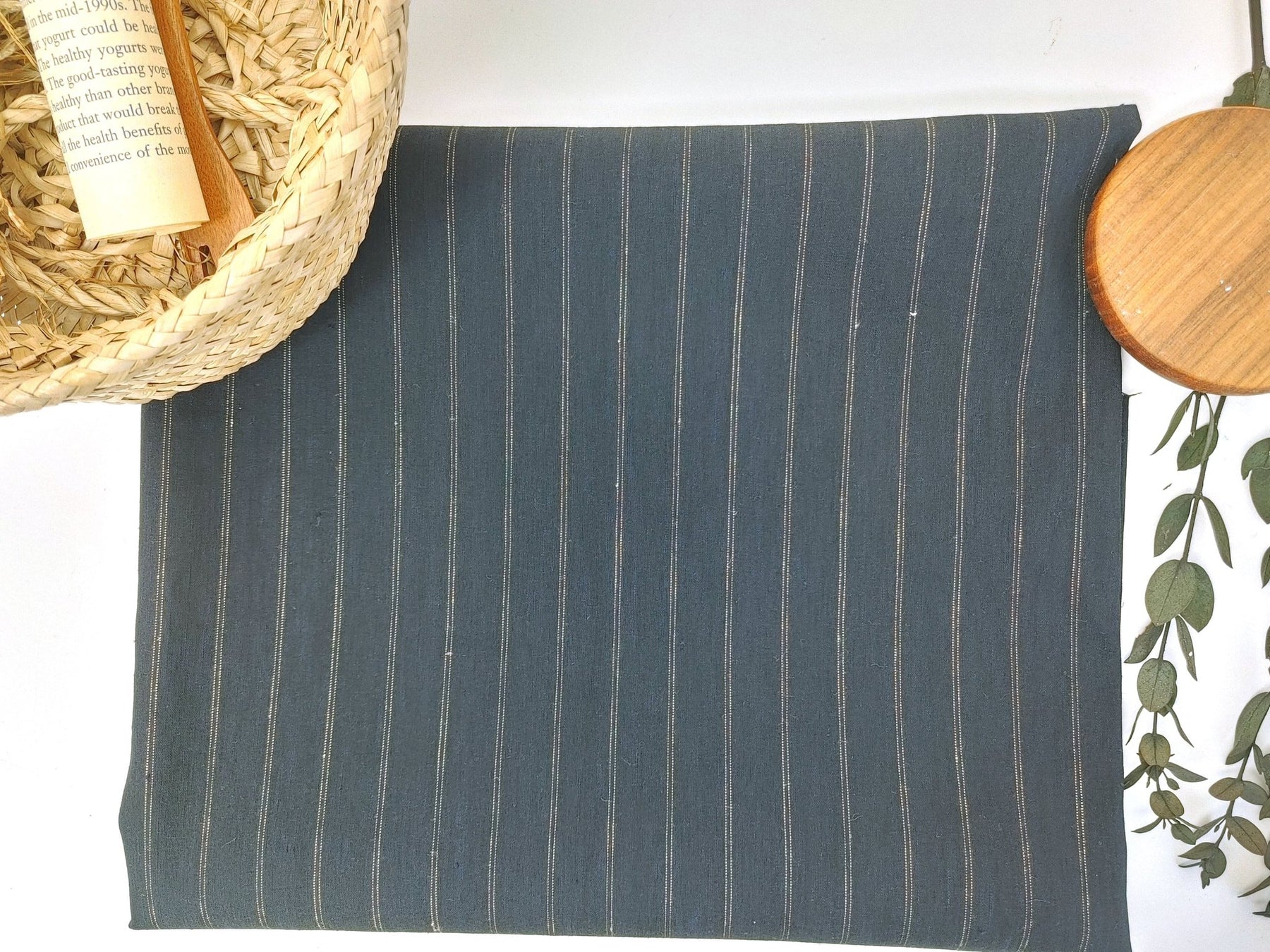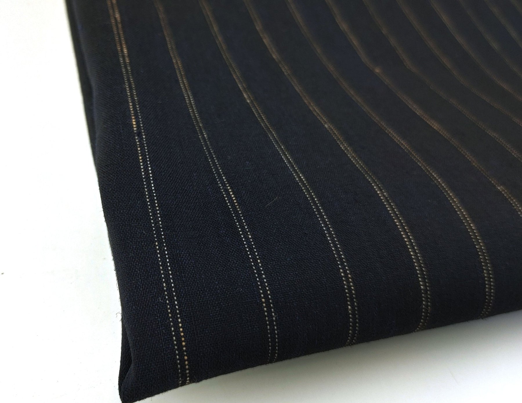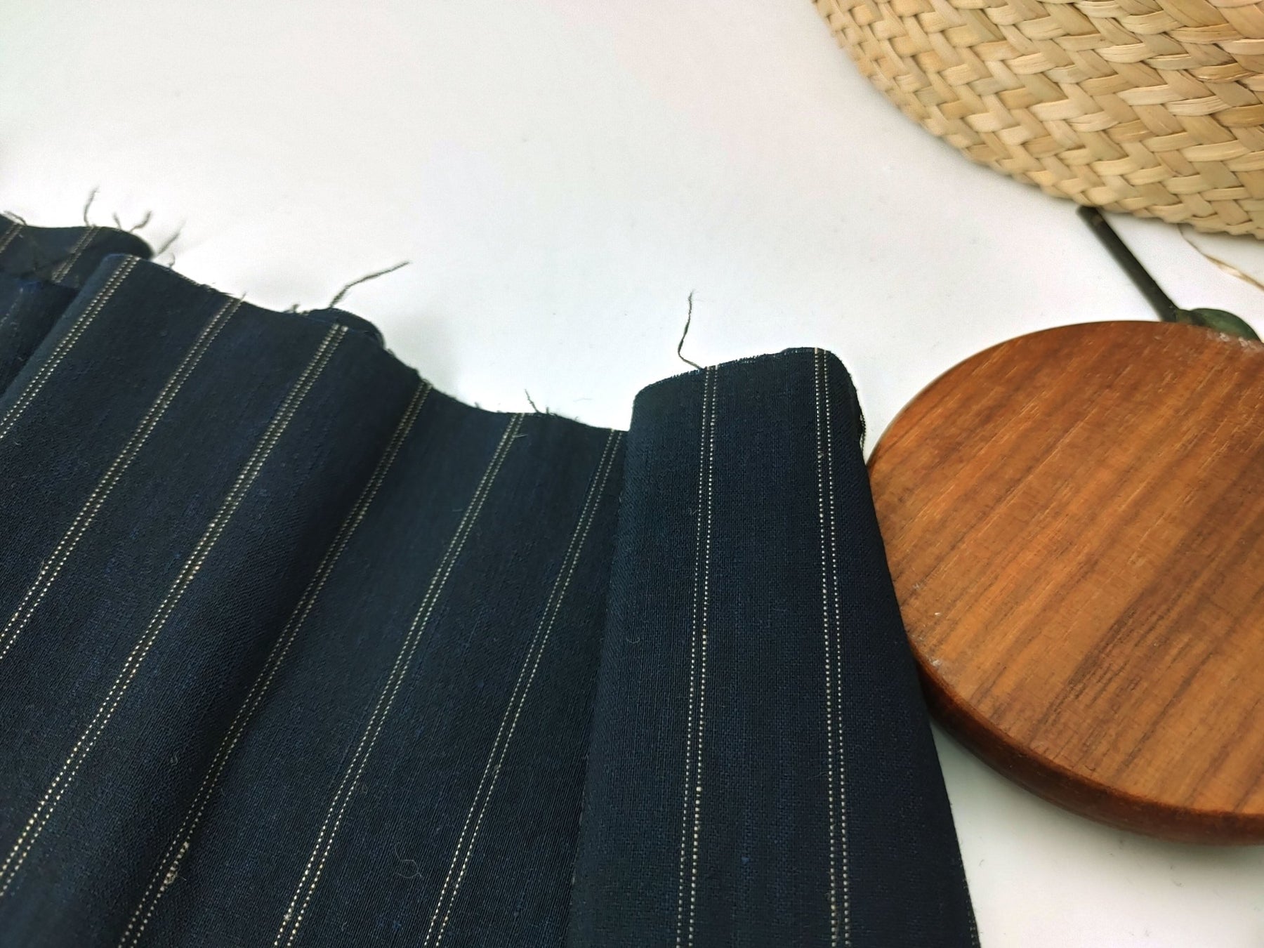 Introducing our Linen Nylon Stretch Fabric with 2-Pin Stripe, a refined choice for a contemporary wardrobe. In a sophisticated dark navy shade, nearly black, this fabric effortlessly blends the natural comfort of linen with the modern touch of nylon.