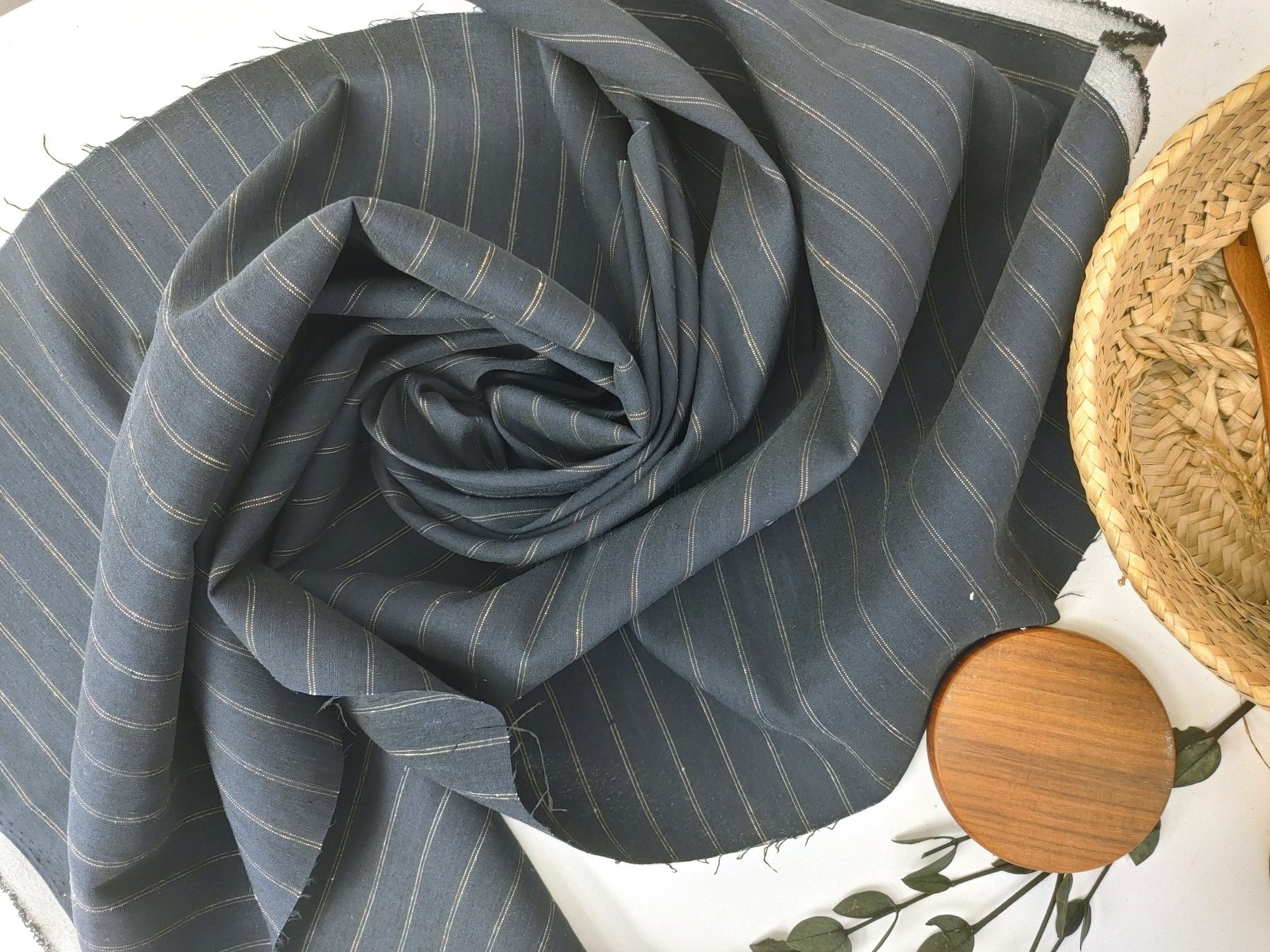 Experience the softness of pre-washed fabric against your skin, delivering comfort from the very first wear. With excellent elasticity, this fabric adapts to your movements without compromising durability. Elevate your style with the perfect fusion of comfort and modern sophistication in our Linen Nylon Stretch Fabric with 2-Pin Stripe.