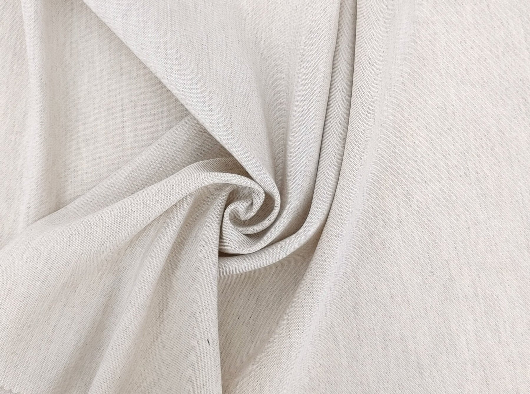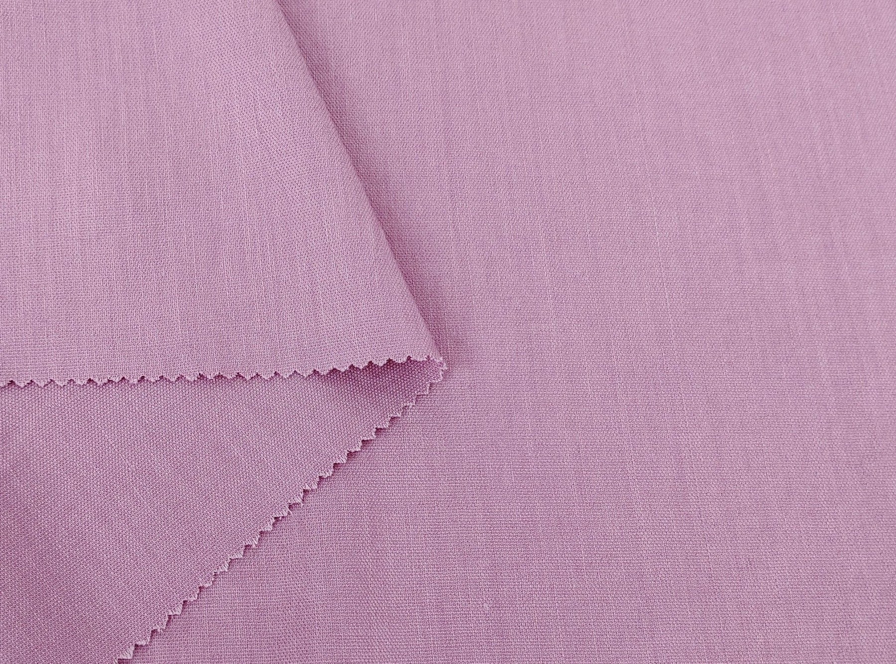 The fabric features a unique construction with high-twist linen and rayon filament yarn in the warp, and rayon spandex and high-twist rayon filament yarn in the weft. This combination results in a fabric with a good drape and flexibility, making it ideal for garments that require both structure and comfort, such as dresses and pants.