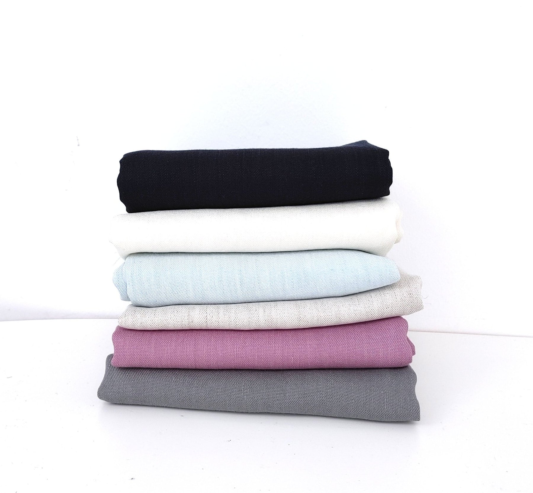 Our Stretch Twill Linen Rayon Fabric is a versatile and comfortable choice for various sewing projects. Composed of 39% linen, 59% rayon, and 2% PU, this medium-weight fabric (220 g/sqm or 6.48 oz per square yard) offers excellent stretch and a soft, pre-washed handfeel.