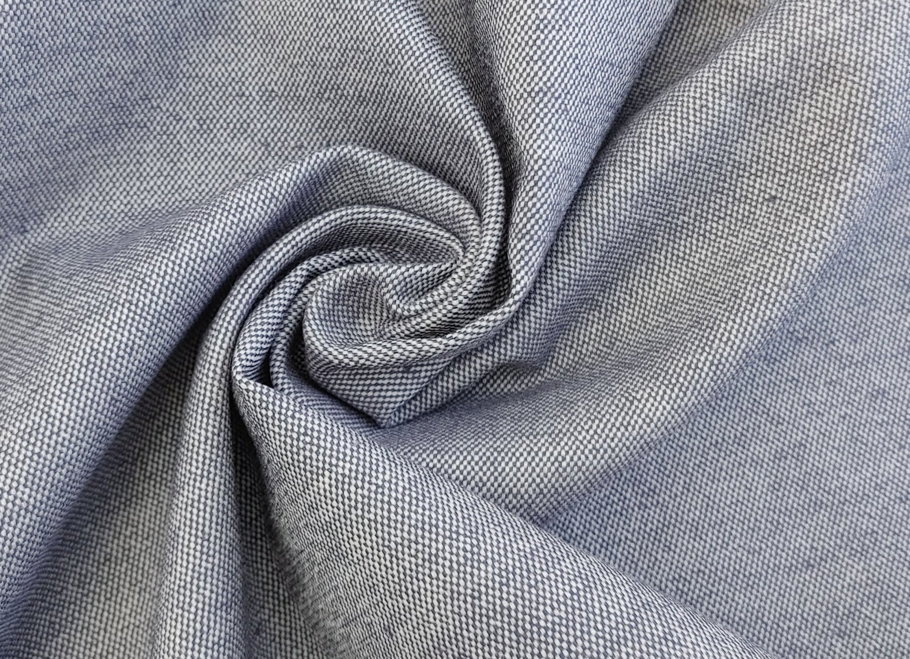 Introducing a heavyweight canvas chambray linen stretch fabric, crafted for durability and flexibility. The matte weaving structure adds a refined touch, while the fabric offers a very nice stretch for enhanced comfort and wearability.