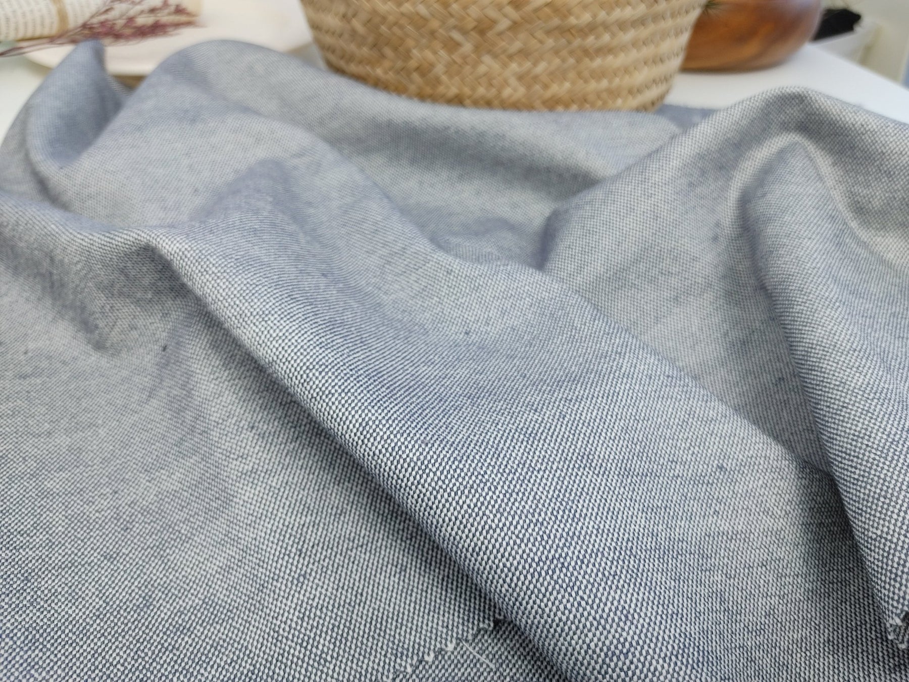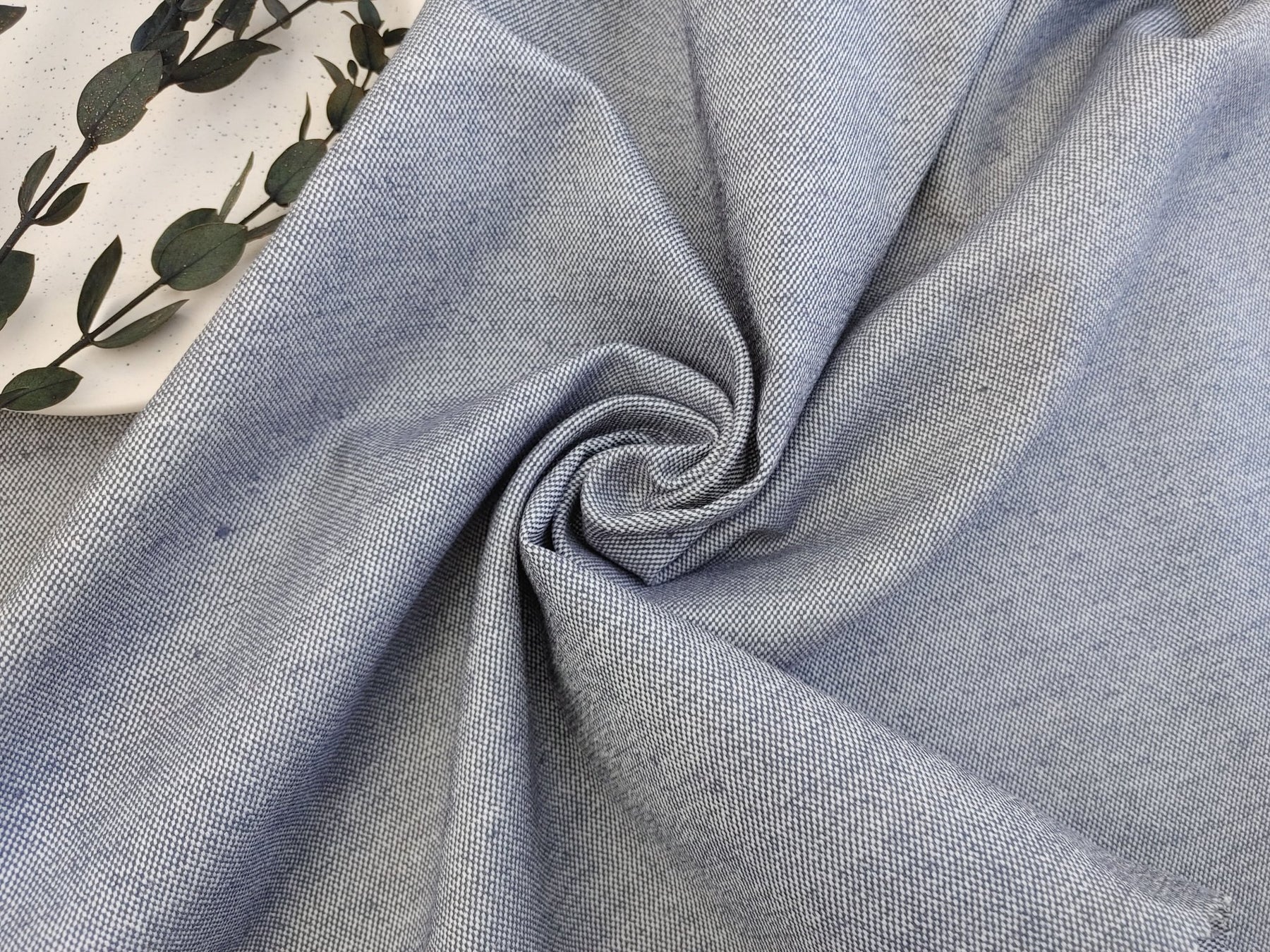 Composed of 3% Linen, 37% Rayon, 57% Cotton, and 3% PU, this fabric strikes a balance between natural and modern fibers. With a substantial weight of 290 g/sqm (8.55 oz per square yard), it is ideal for projects requiring a sturdier feel. The pre-washed treatment ensures a soft handfeel, making it comfortable from the first wear. Notably, the fabric exhibits very good elasticity, providing ease of movement and flexibility. Immerse yourself in the reliability and comfort of this canvas chambray linen stretch fabric, where strength meets stretch for a perfect blend of style and functionality.