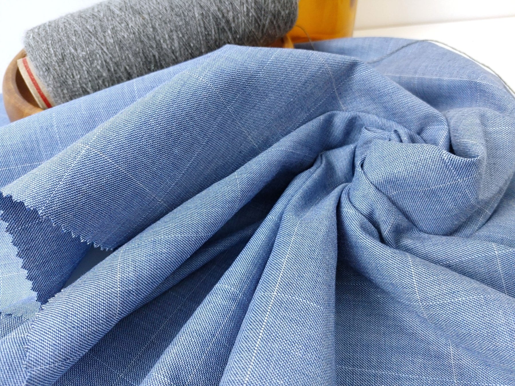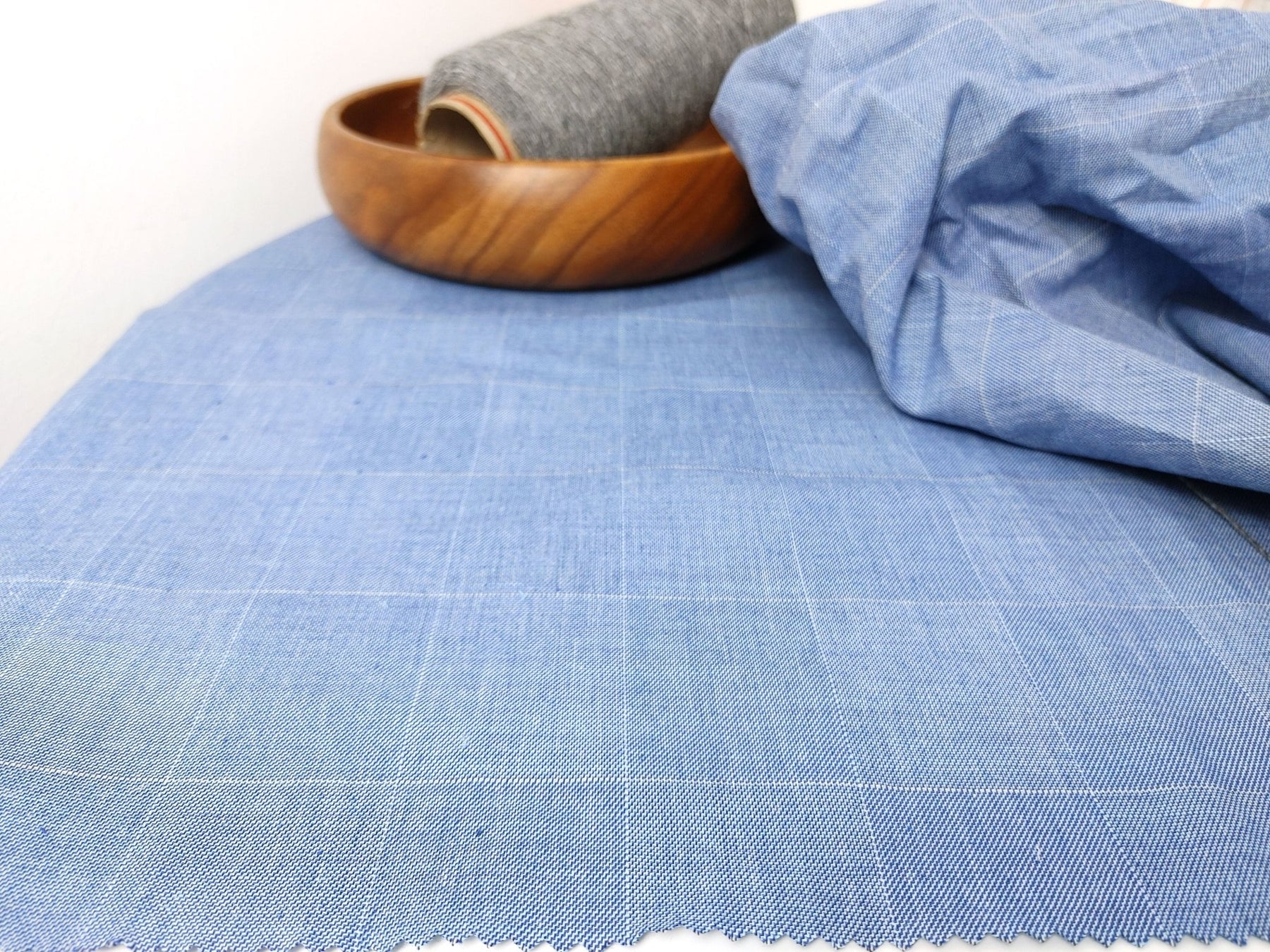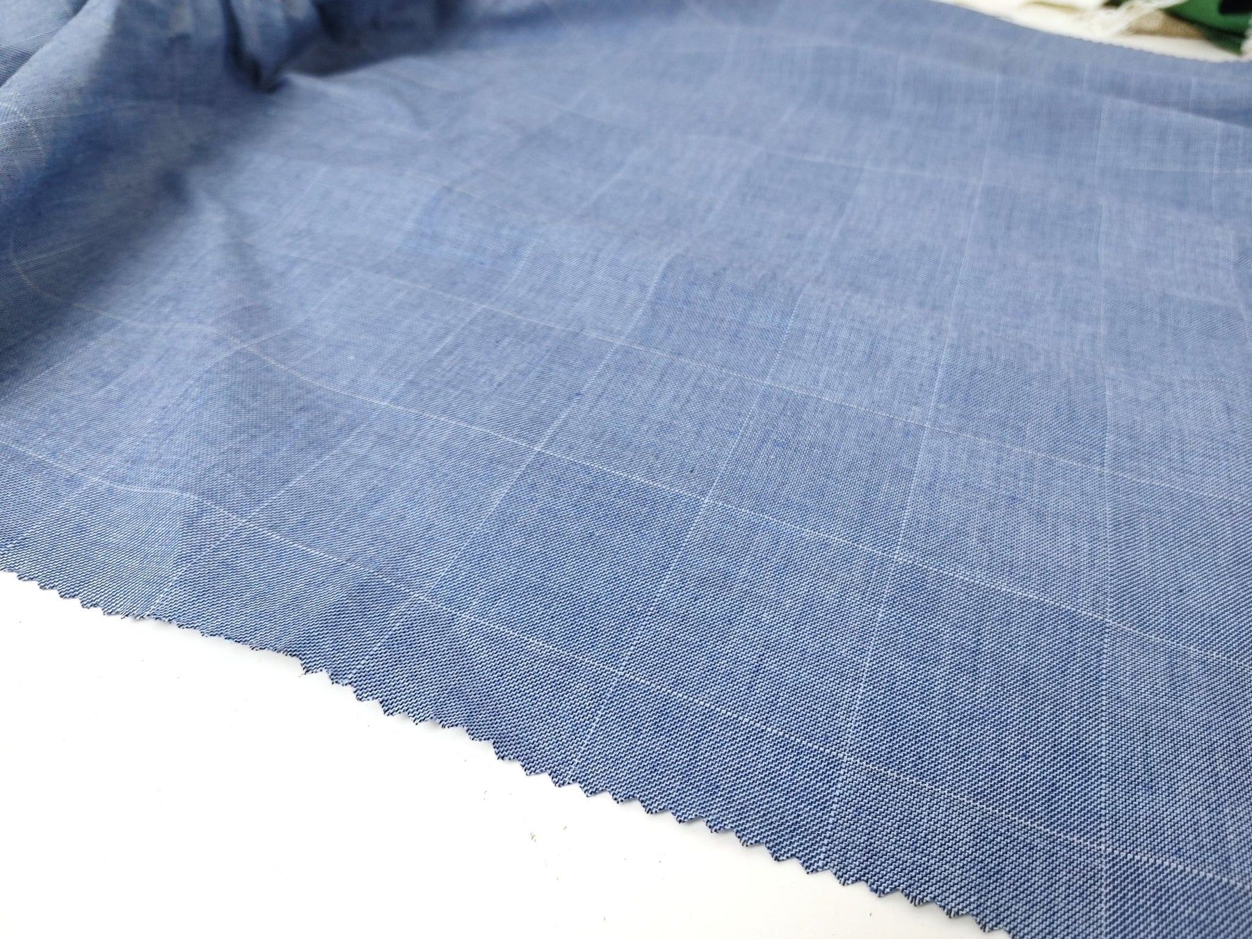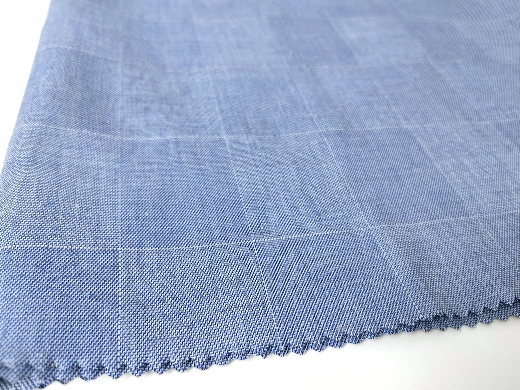 Ramie Cotton Stretch Fabric with Blue Windowpane 3346 - The Linen Lab - Blue