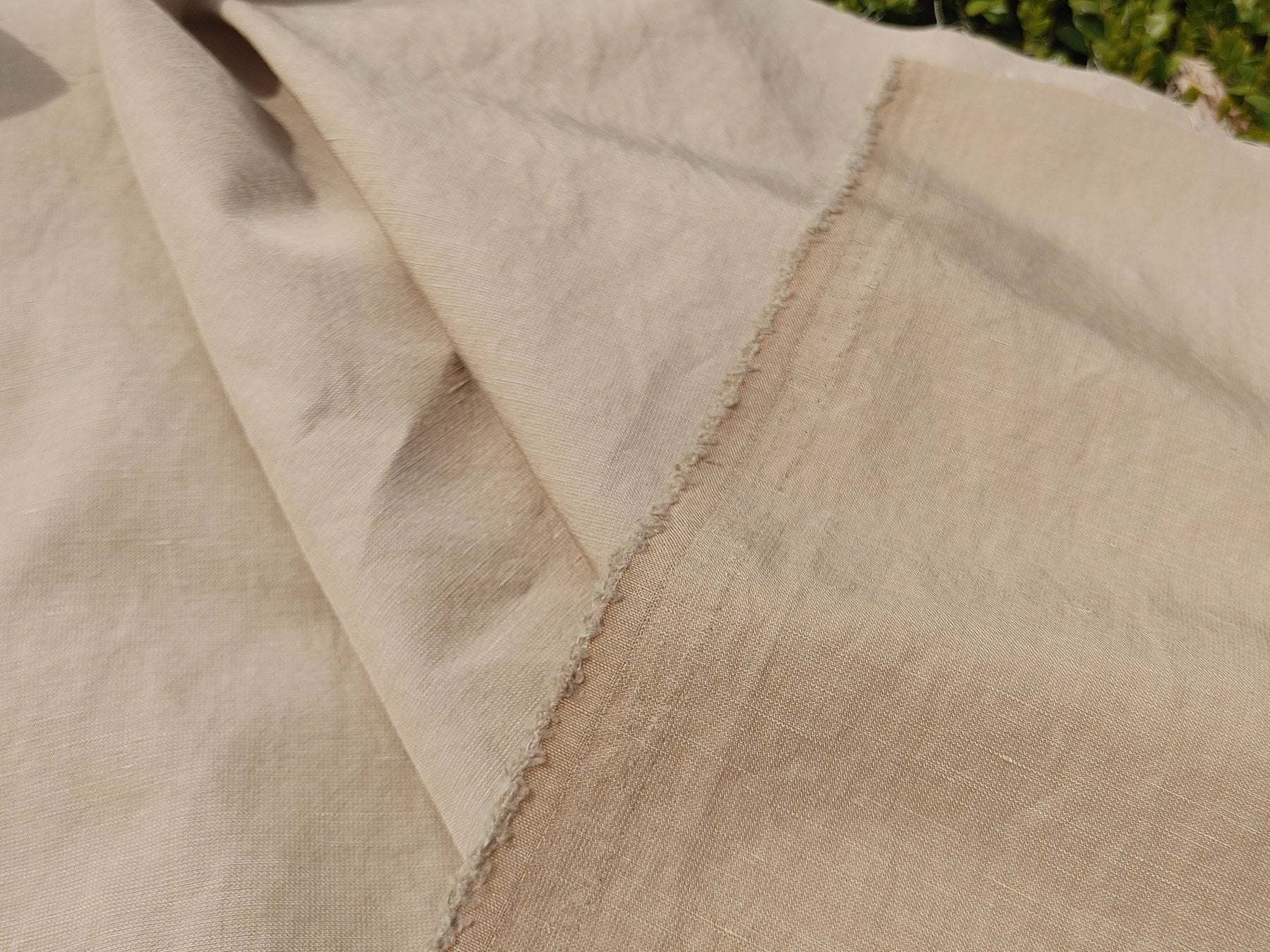 Soft Beige Linen Blend: Dobby Weave with Warp Span Stretch Fabric 7787 - The Linen Lab - Beige