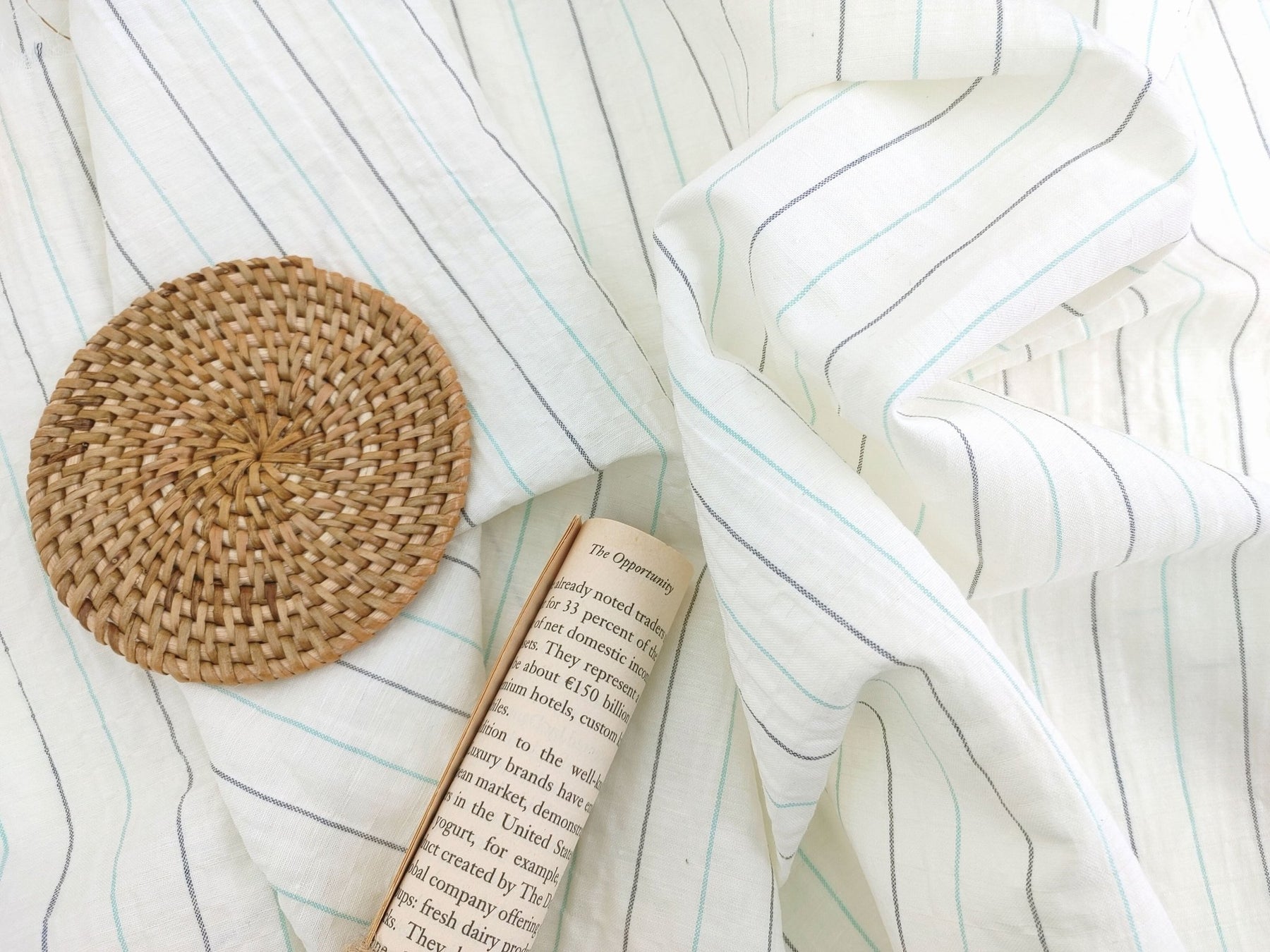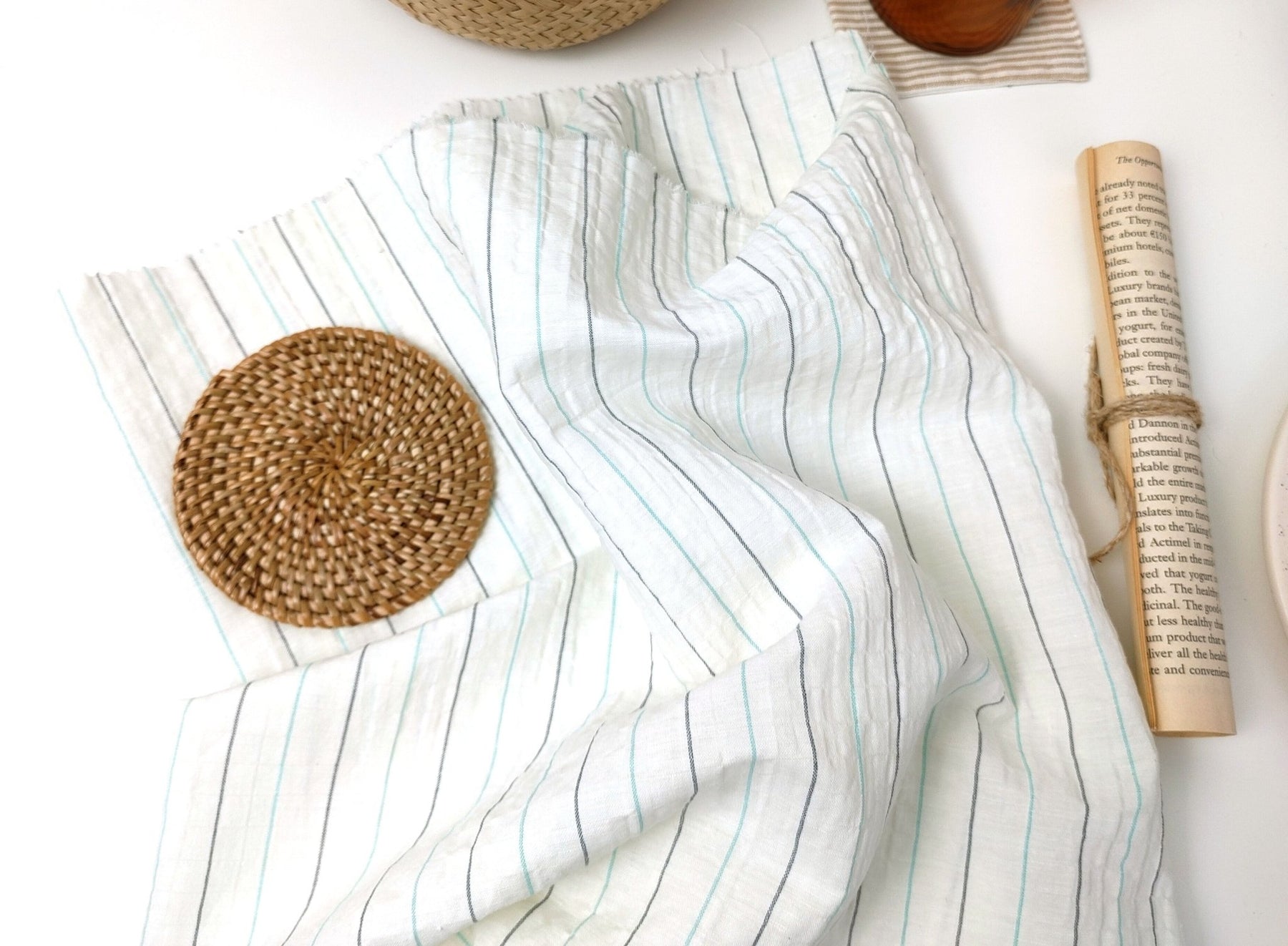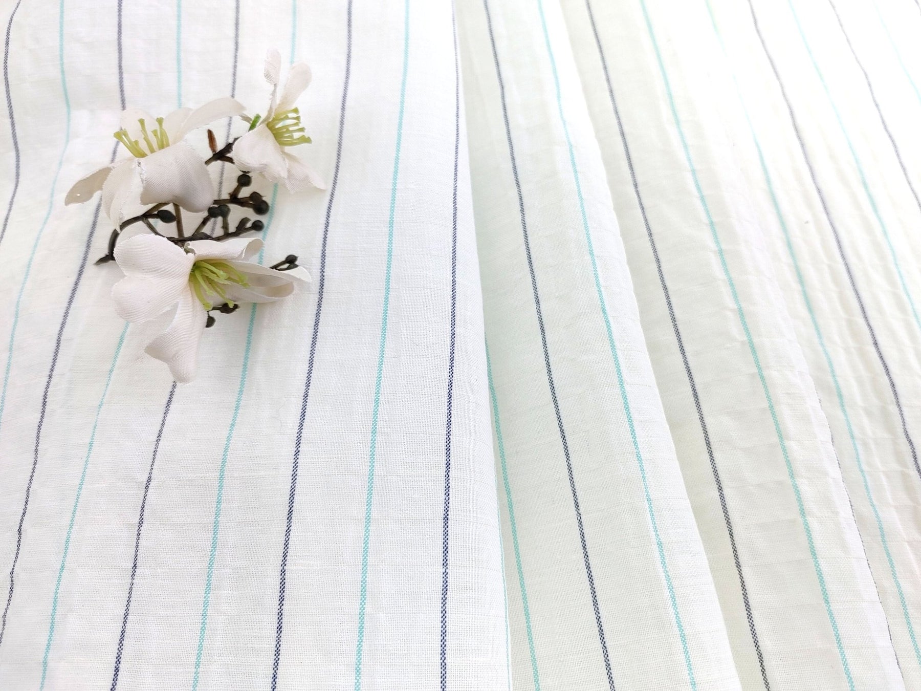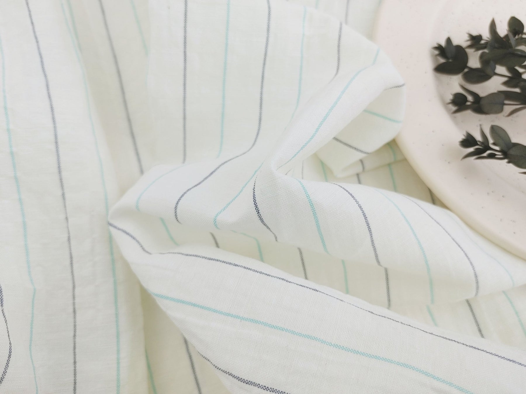 Wrinkled Charm Linen Blend with Striped Elegance Fabric 472 - The Linen Lab - Ivory