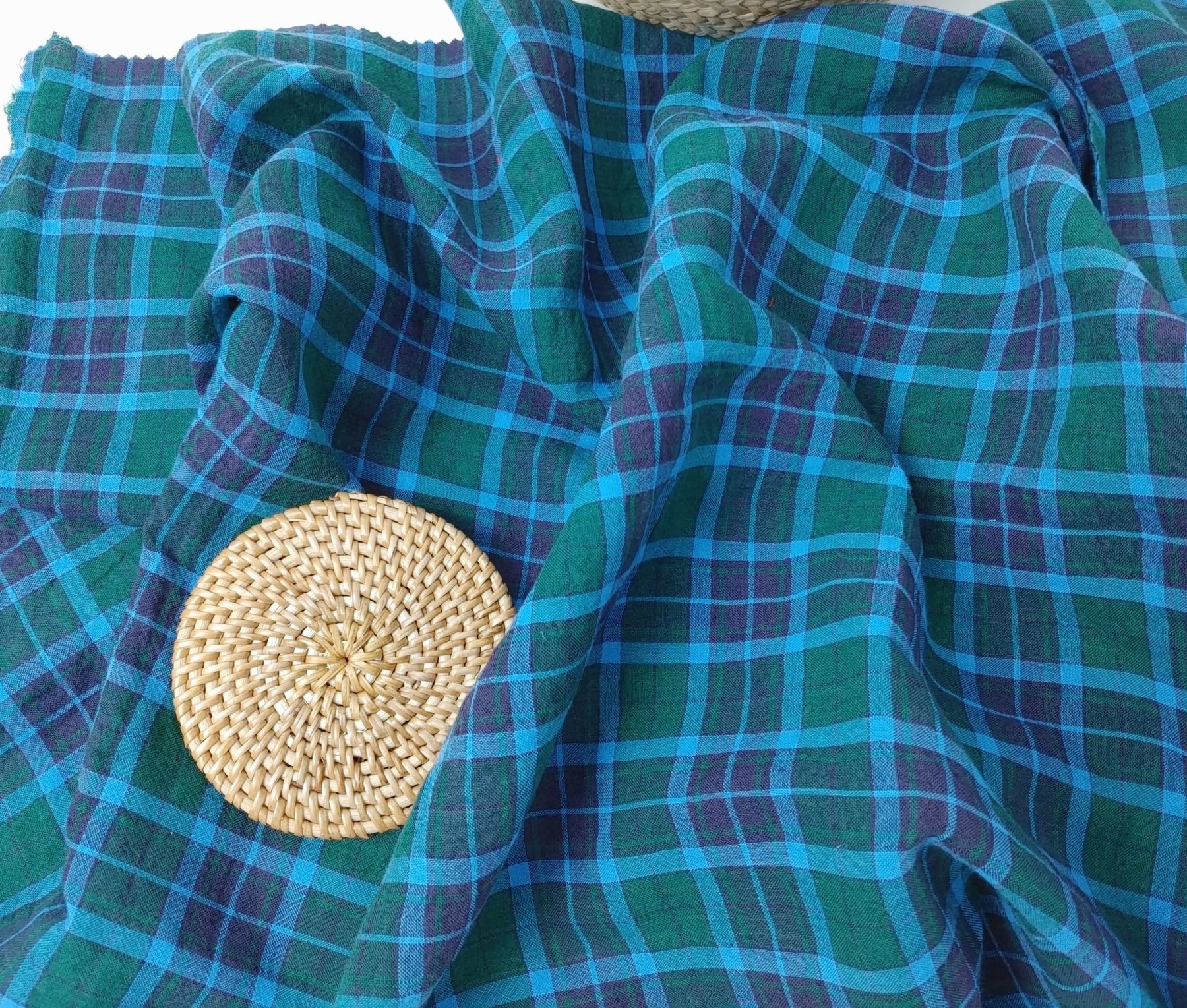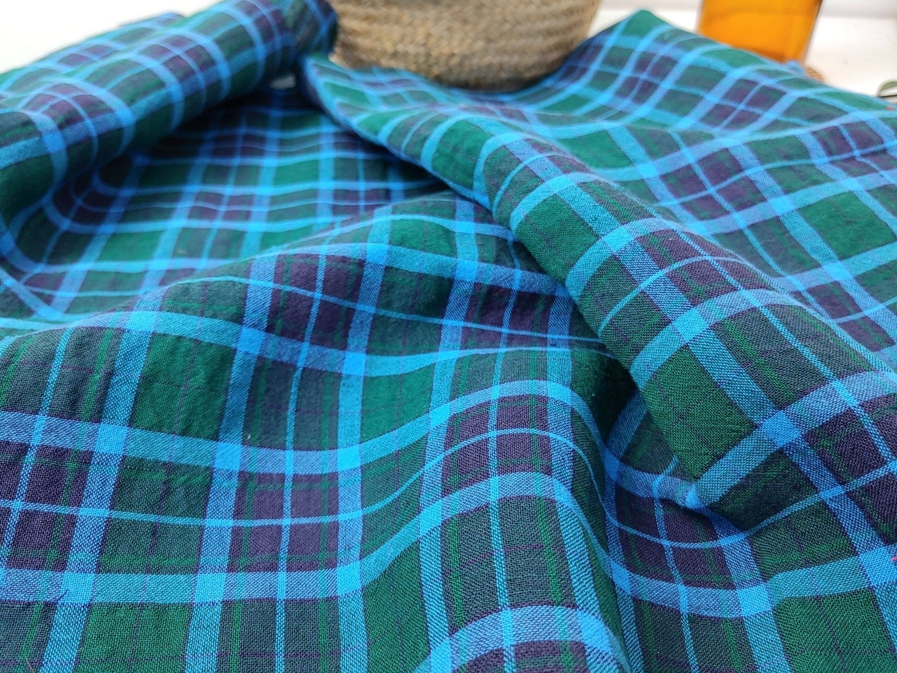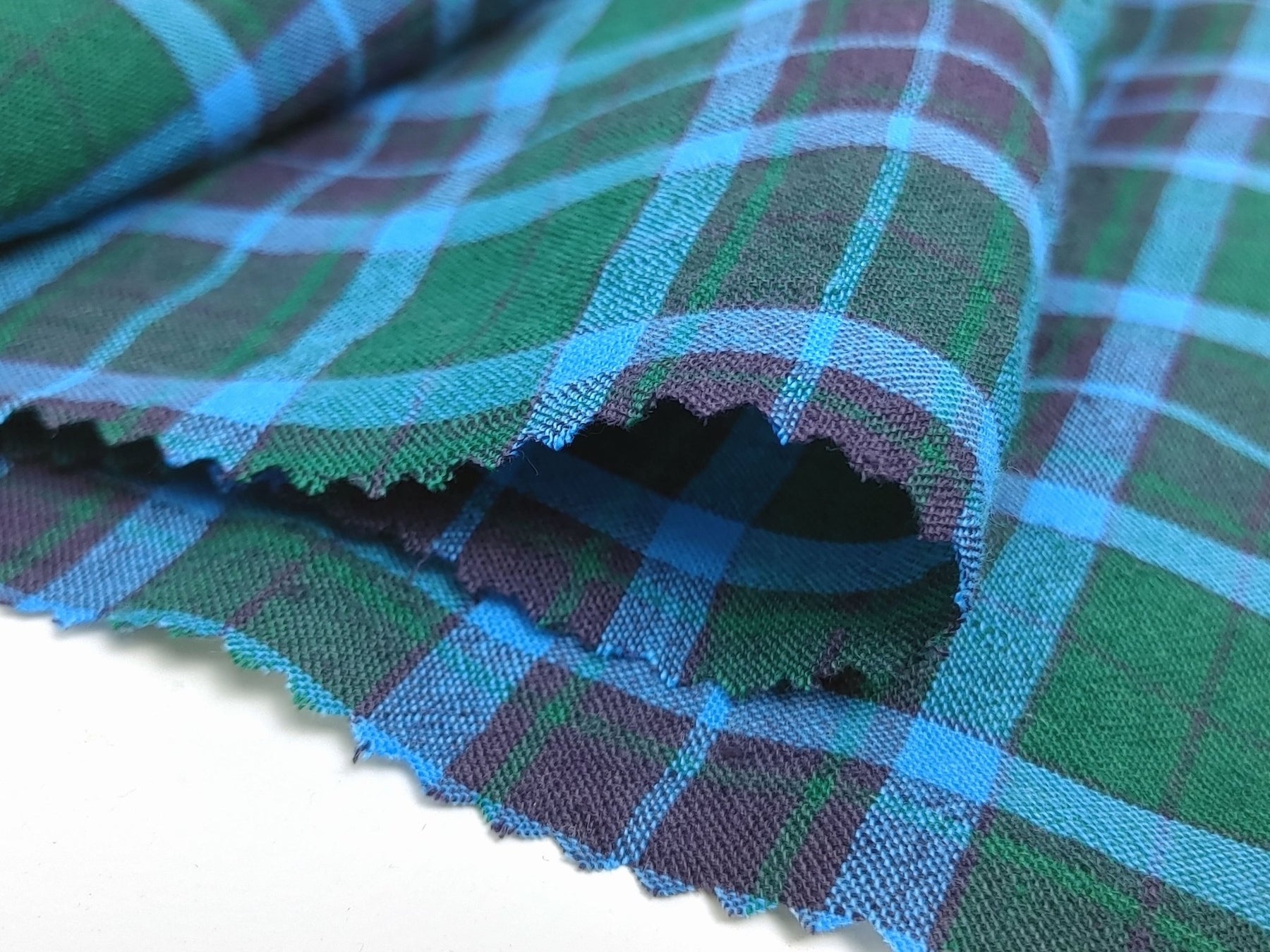 Discover the distinctive charm of our Wrinkled Tartan fabric, where Linen, Cotton, and a hint of Polyurethane (PU) converge to craft a uniquely stylish textile. The 1% PU infusion isn't for stretch but rather to create an appealing wrinkle effect, adding character to this green tartan masterpiece.